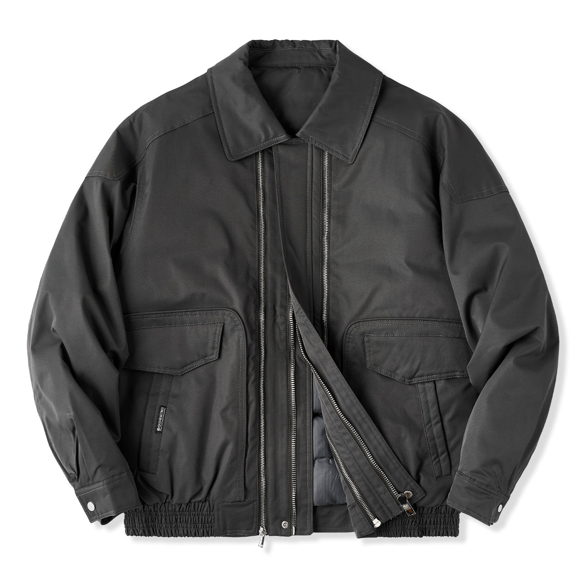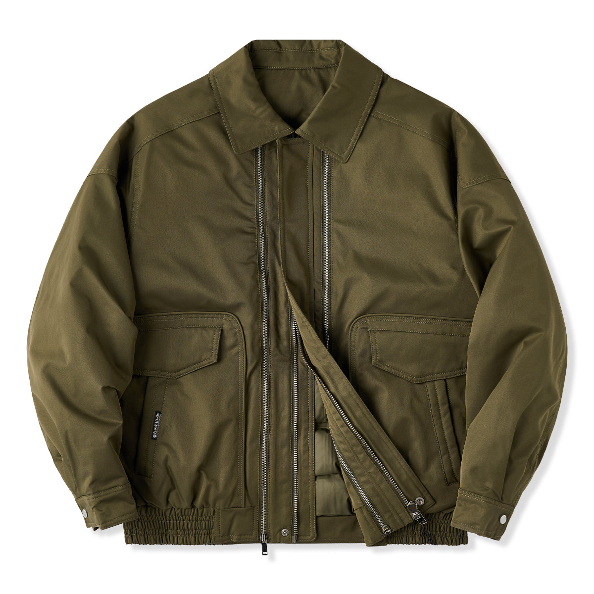 멀티 지퍼로 체온과 스타일에 맞게 조절할 수 있으며, 대형 플랩 포켓과 소매 스냅, 허리 고무 셔링으로 실용성과 편안한 핏을 동시에 갖춘 다운 자켓입니다.