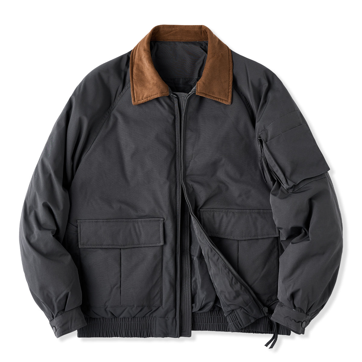 칼라 코듀로이 배색과 시가렛 포켓이 포인트인 다운 재킷으로, 적당한 볼륨감의 다운 충전으로 한겨울에도 따뜻하며 깔끔한 실루엣을 연출합니다.