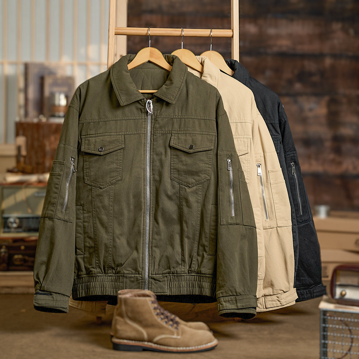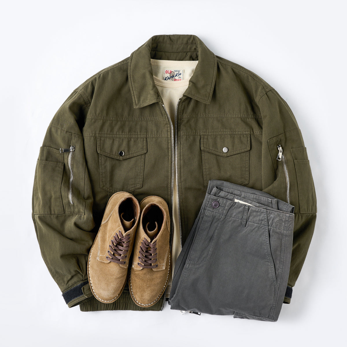 데님과 스니커즈를 매치하면 캐주얼한 스타일이 완성되며, 치노 팬츠와 부츠와 함께하면 밀리터리 감성을 살린 스타일링이 가능합니다.