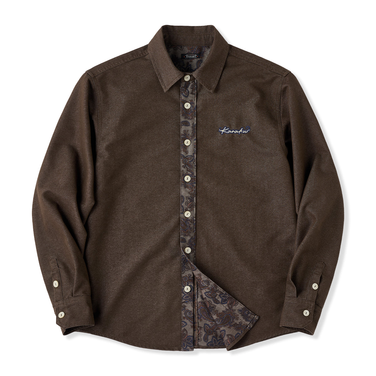 【사전예약】칼라·소매단 코듀로이 배색 페이즐리 패턴 자카드 롱슬리브 셔츠
