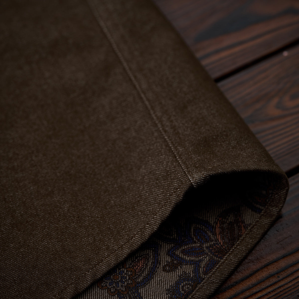 우드 톤 토글 더플 버튼 페이즐리 자카드 데님 셔츠