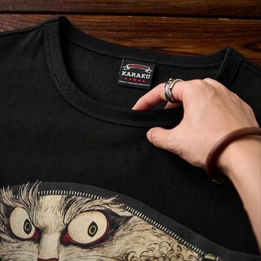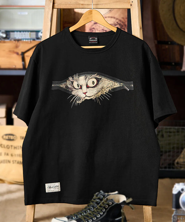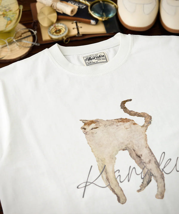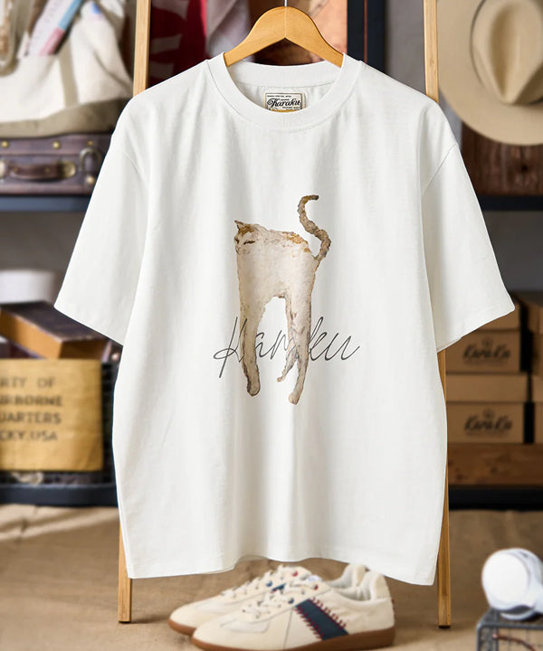 Pierre Bonnard의 1894년 작품 《The White Cat》을 모티브로 한 티셔츠입니다. 단순화된 윤곽과 과장된 실루엣이 돋보이는 흰 고양이 그래픽으로, 몸을 움츠린 채 등을 높이 굽힌 익살스러운 포즈를 담아 생동감 있는 분위기를 완성했습니다.
