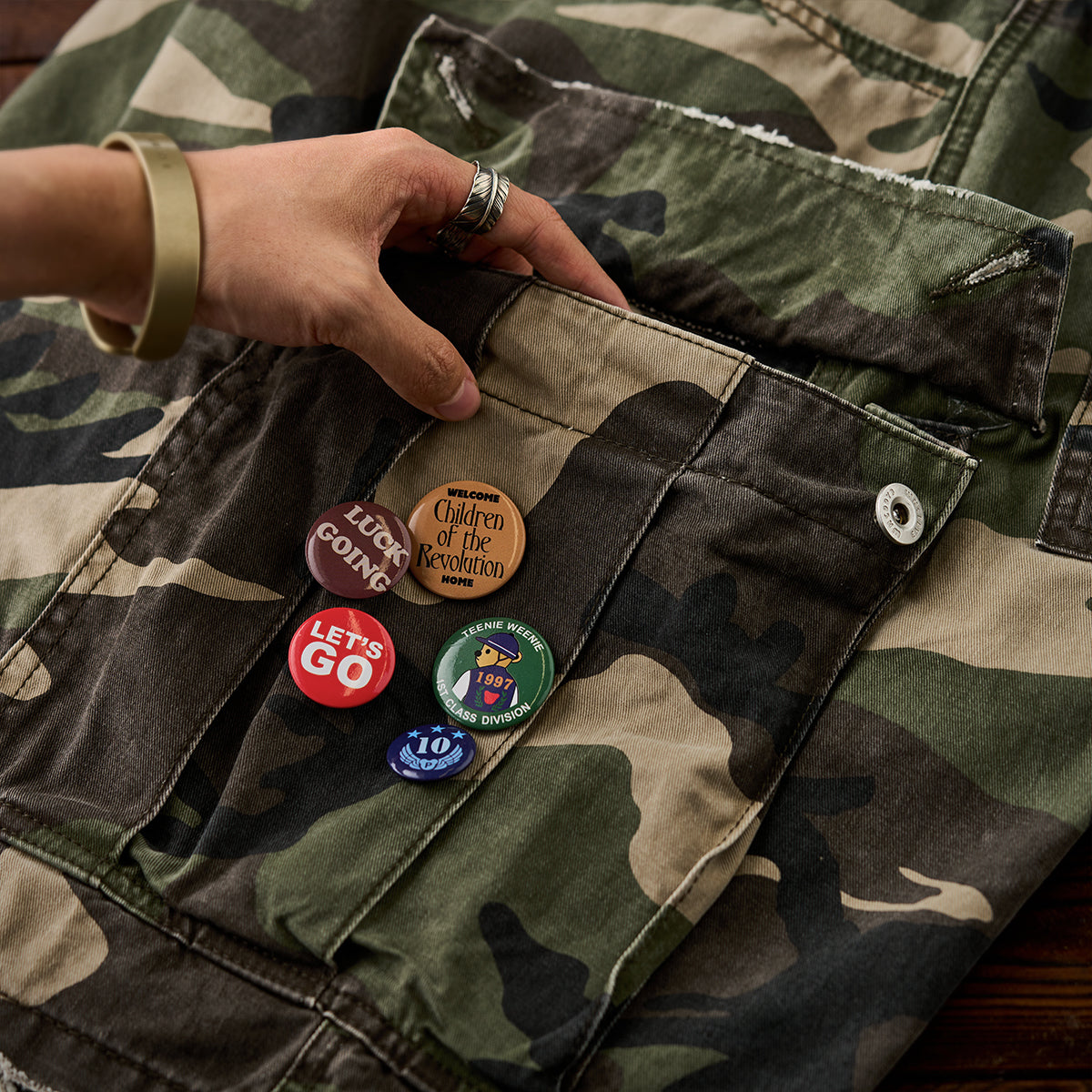 강인한 인상의 카모플라주 패턴에 캐주얼한 배지를 더해 스타일리시하면서도 개성과 재미를 더한 아이템입니다.