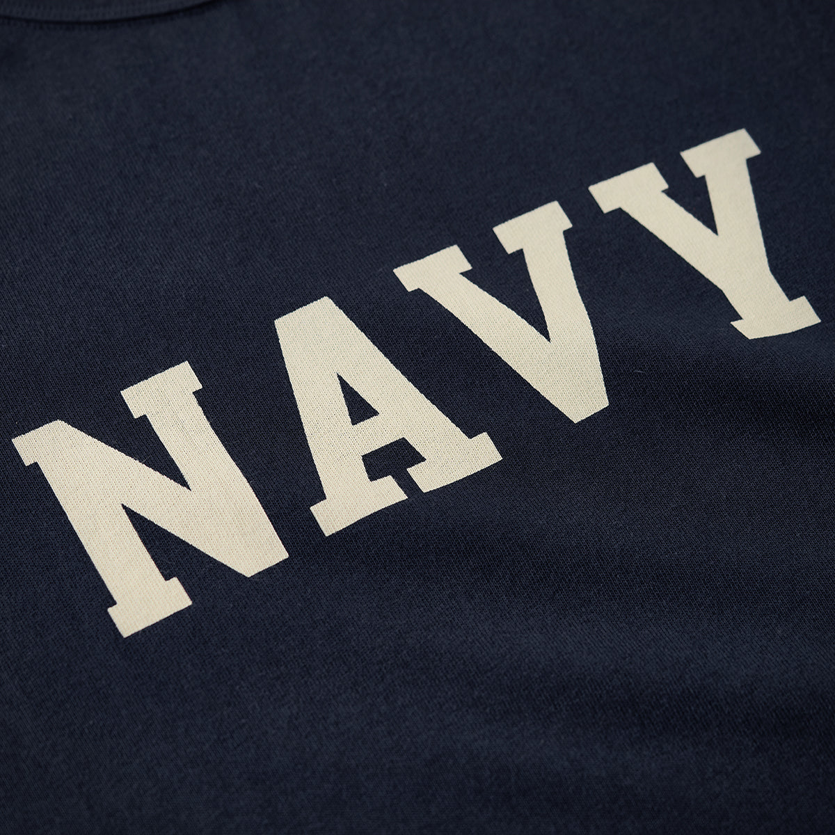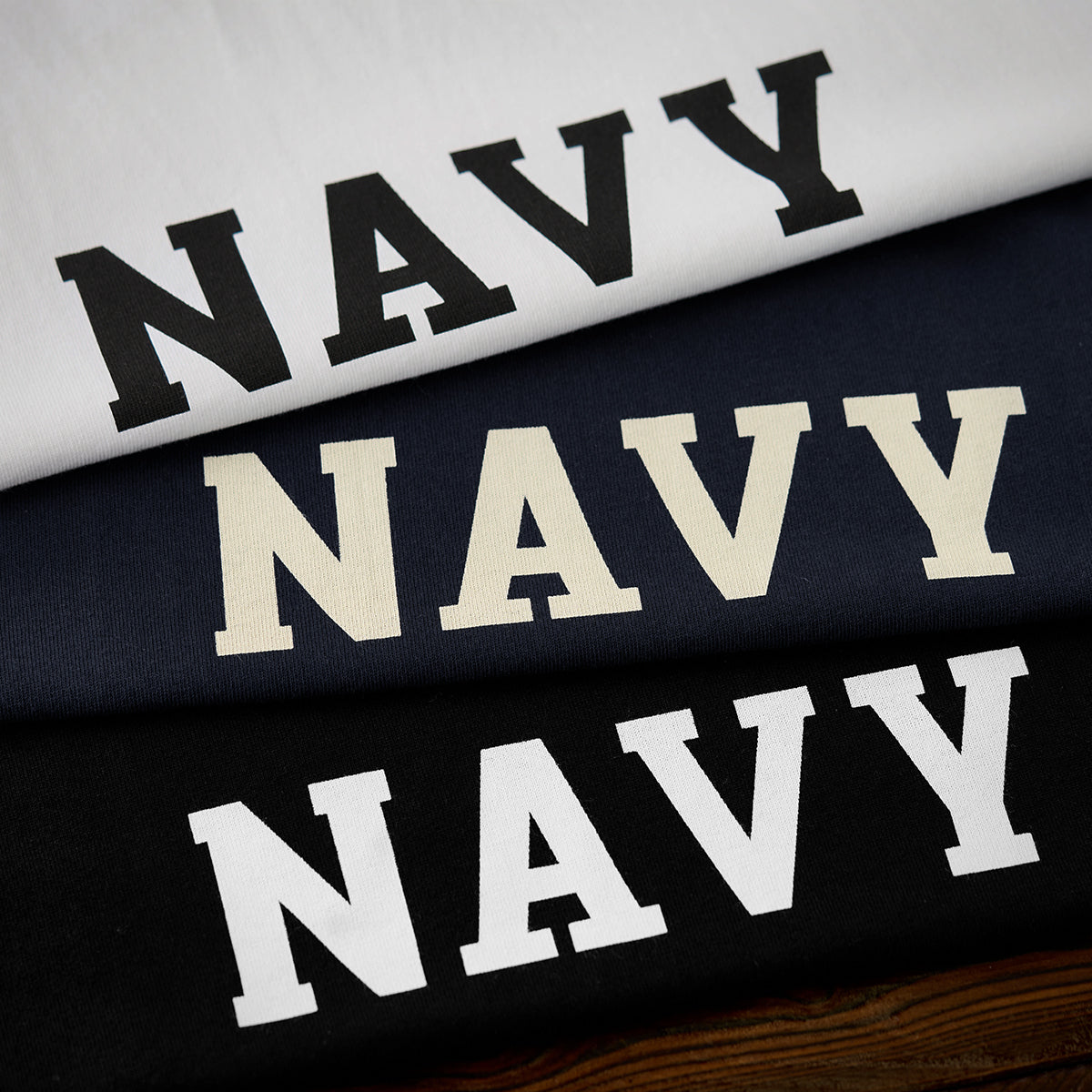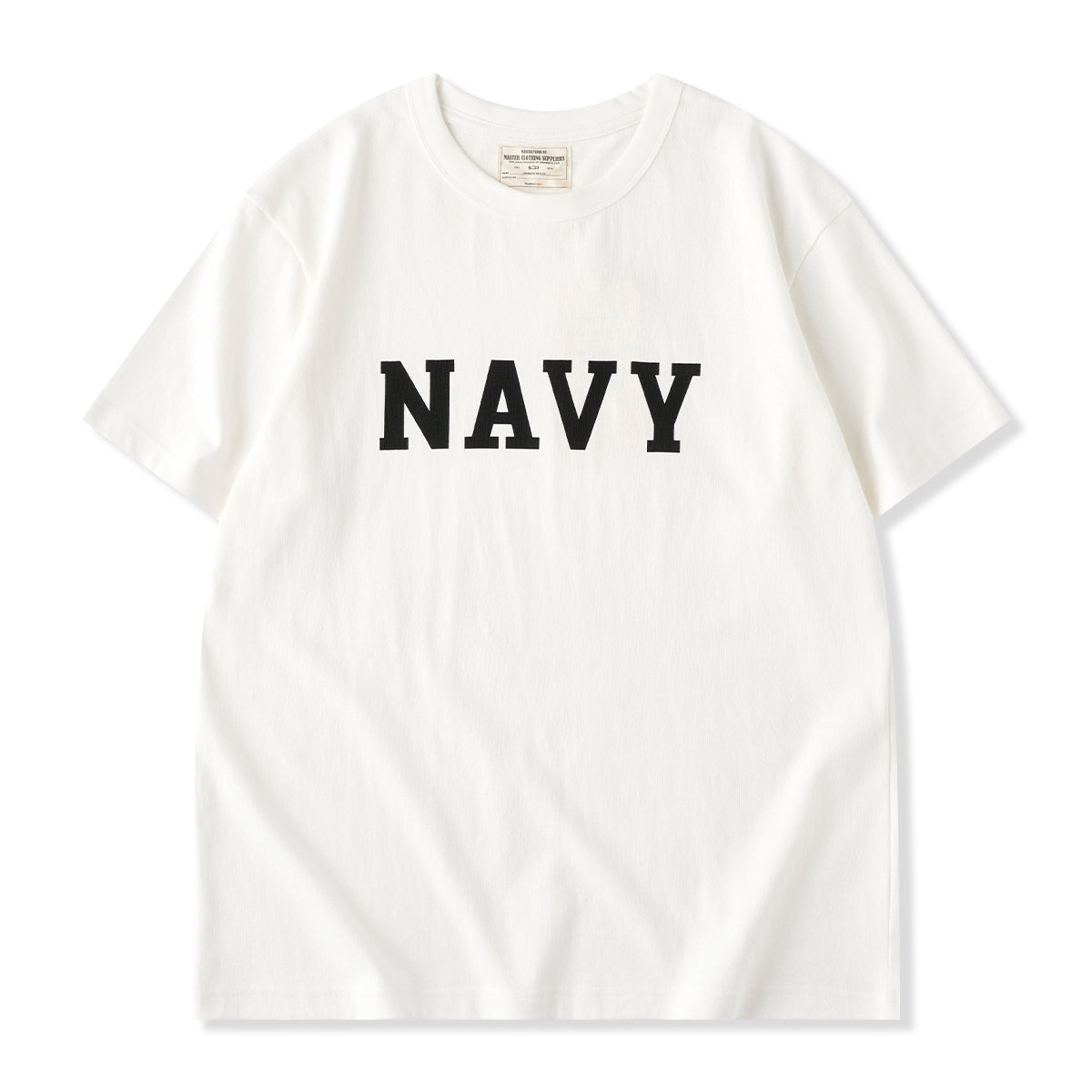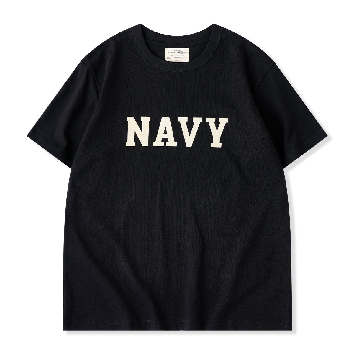 라운드넥과 넓은 봉제선으로 편안함과 내구성을 갖춘 티셔츠로, 가슴 중앙의 ‘NAVY’ 프린트가 심플하면서도 강렬한 포인트를 줍니다.