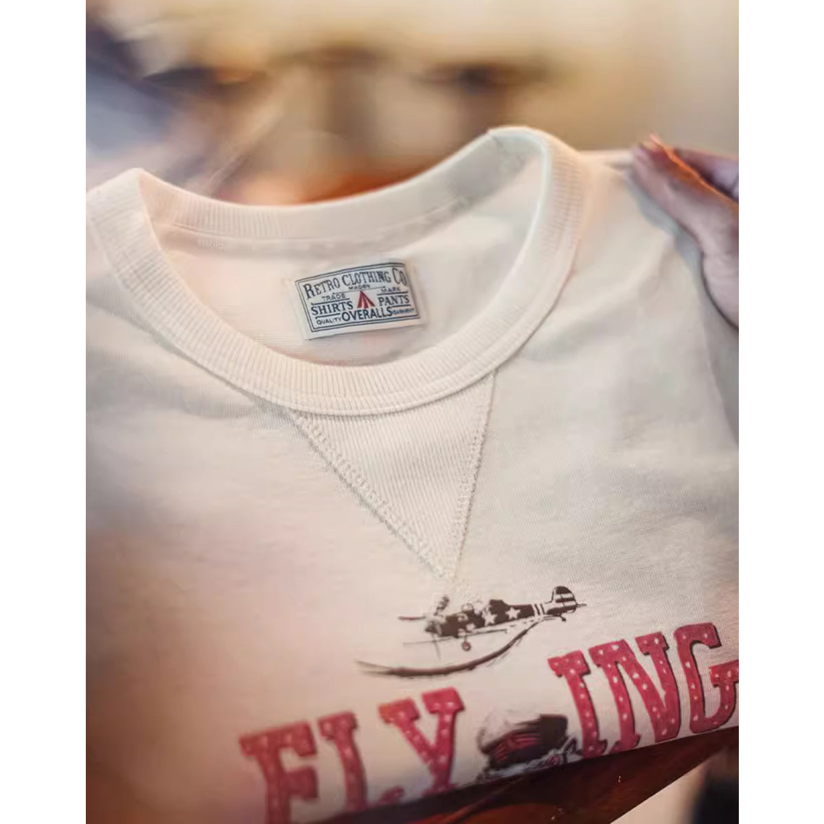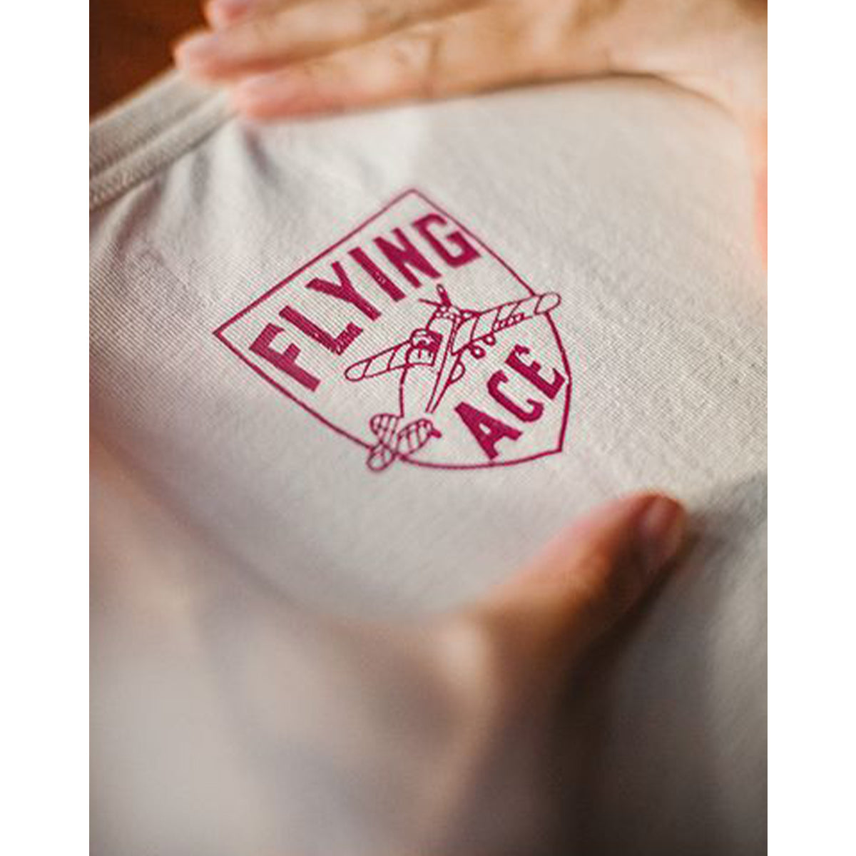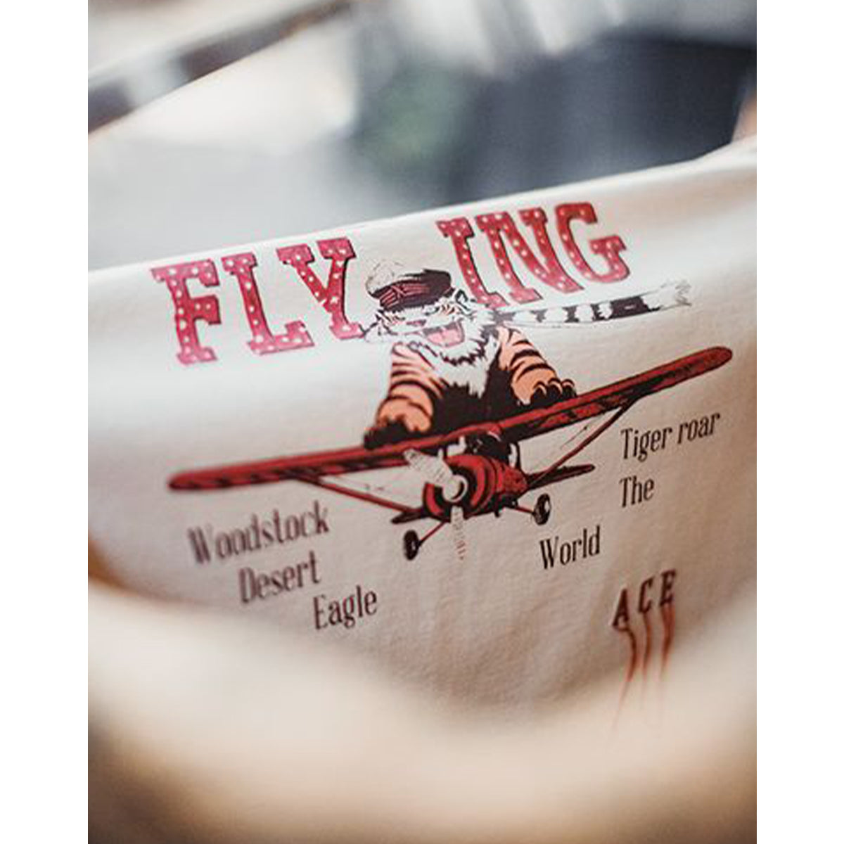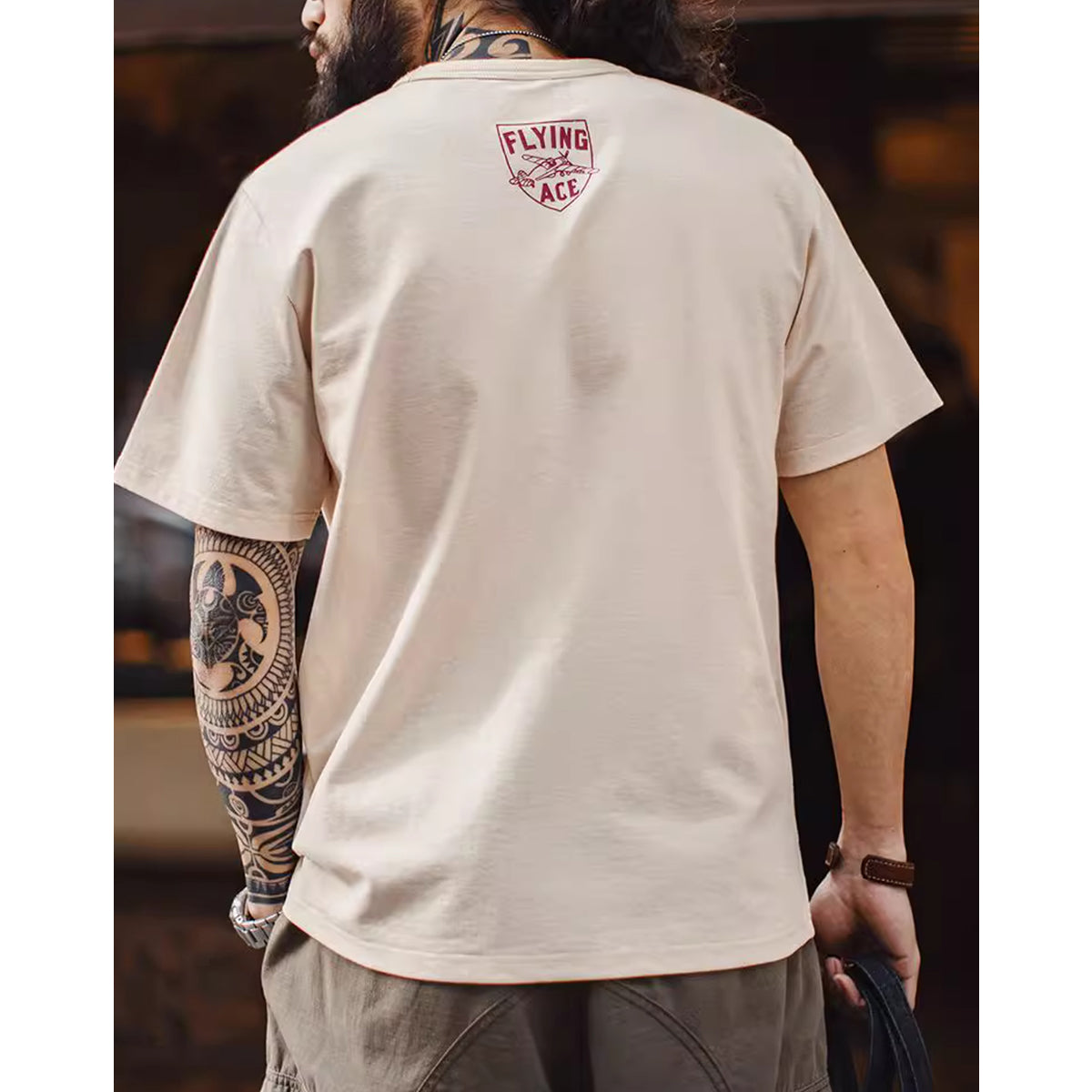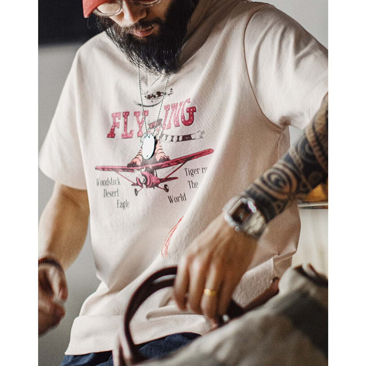 「ACE FLYING TIGER」아메카지 프린트&자수 V넥 반팔 Tee