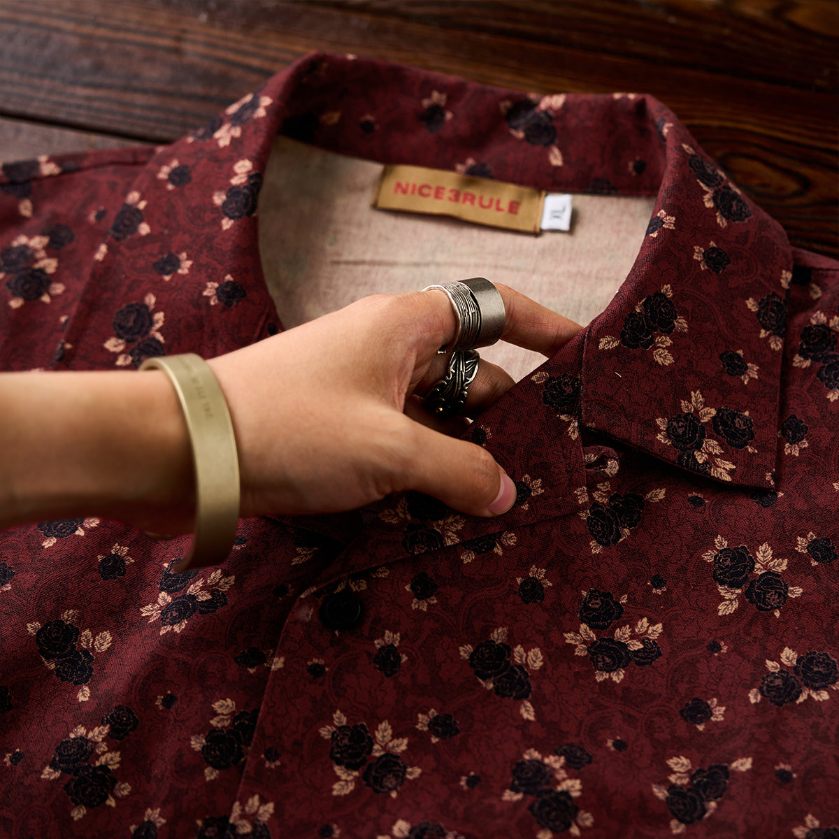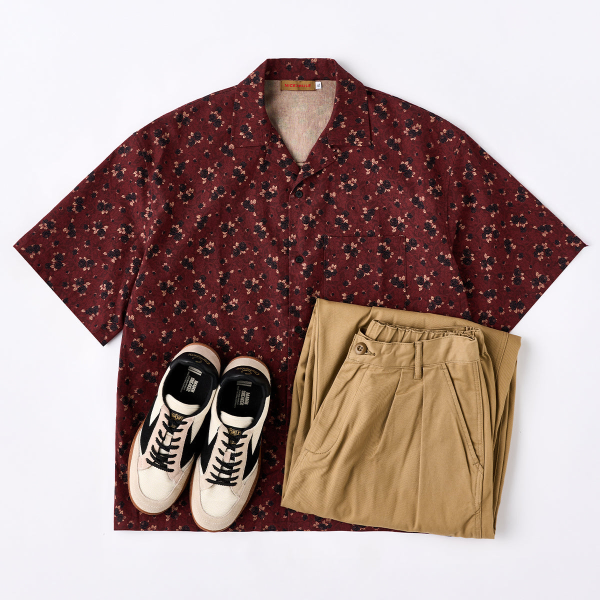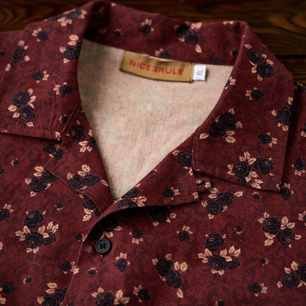 오픈 카라 디자인과 전체 패턴이 조화를 이루어 여름철 멋스러운 코디에 적합합니다.