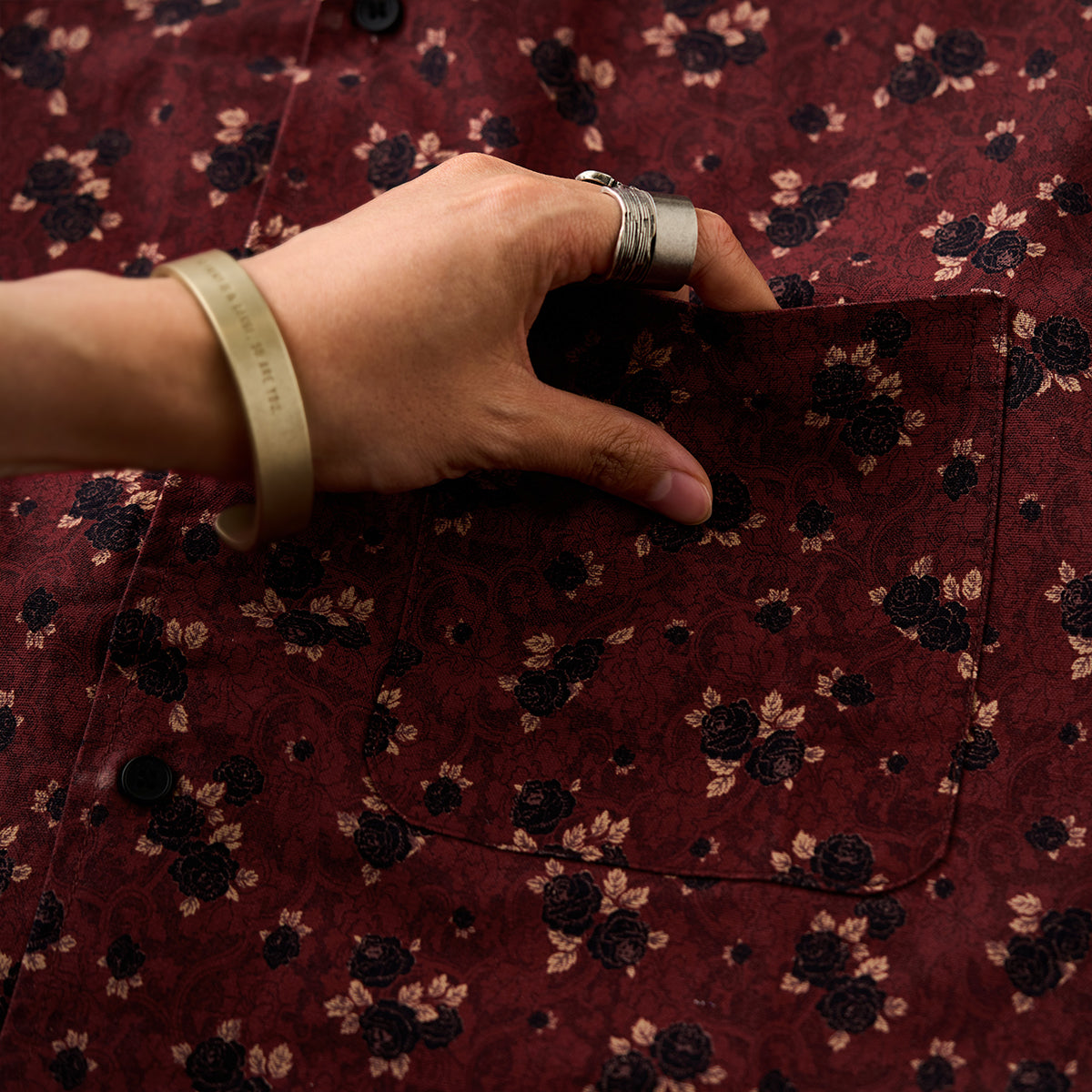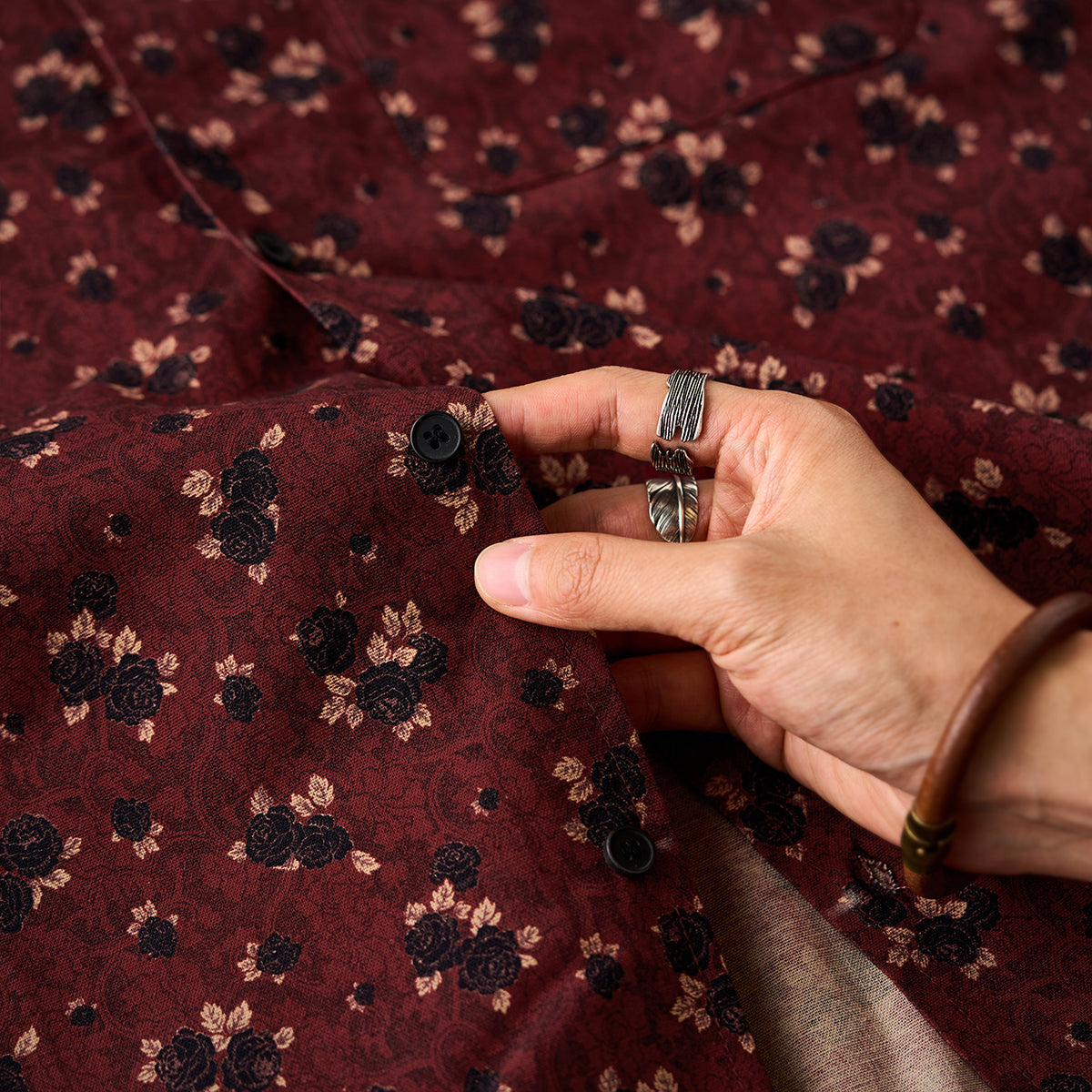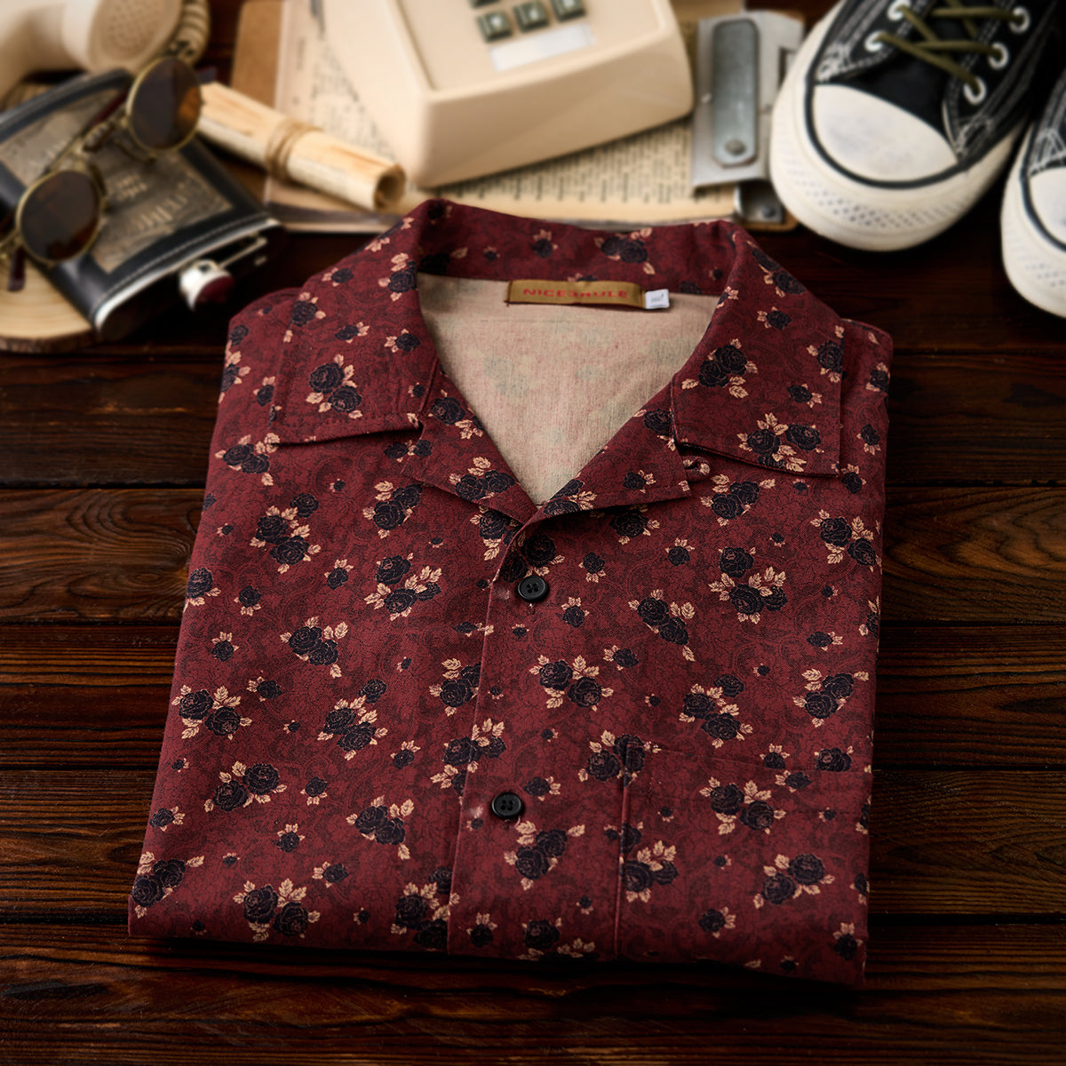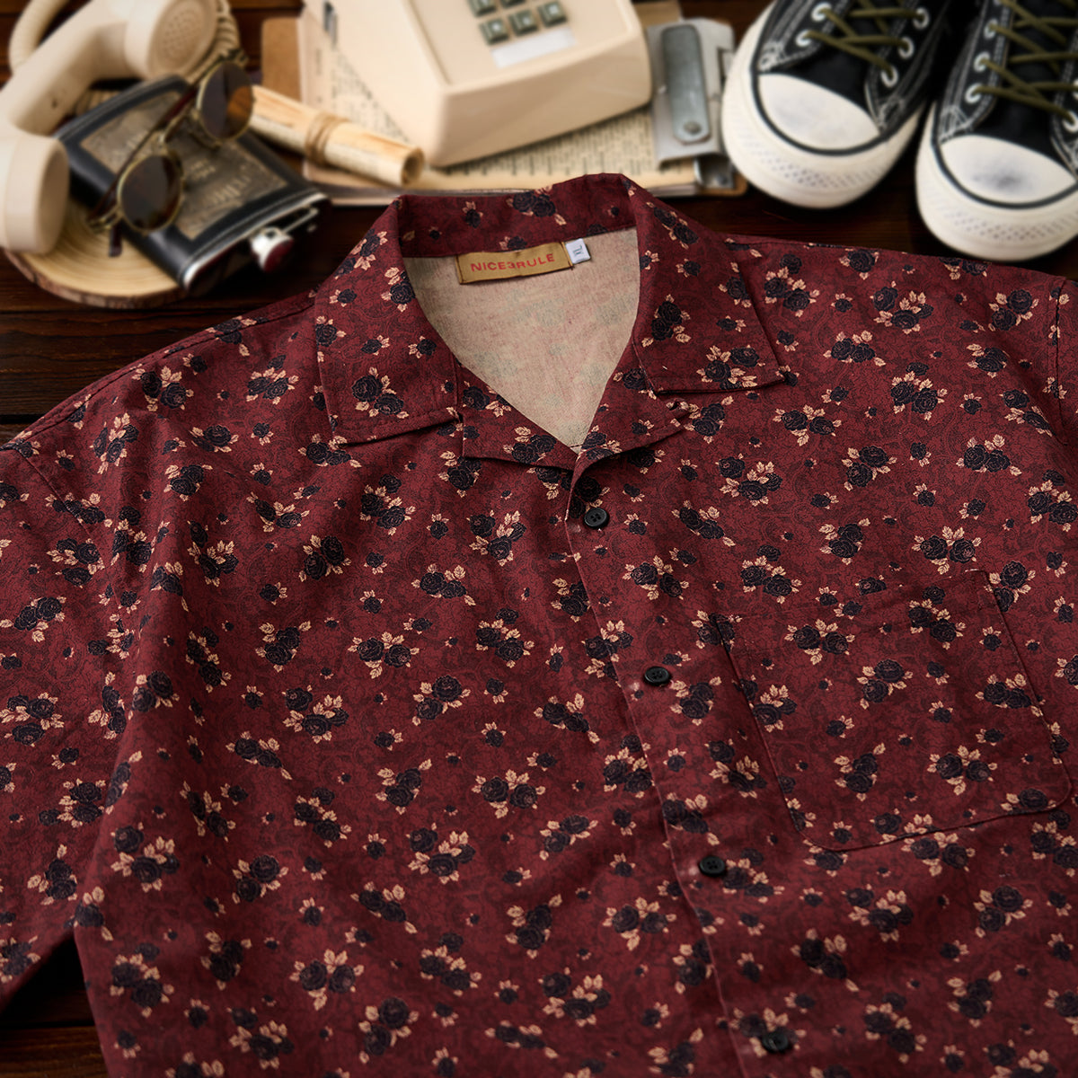 오픈 카라 디자인과 전체 패턴이 조화를 이루어 여름철 멋스러운 코디에 적합합니다.