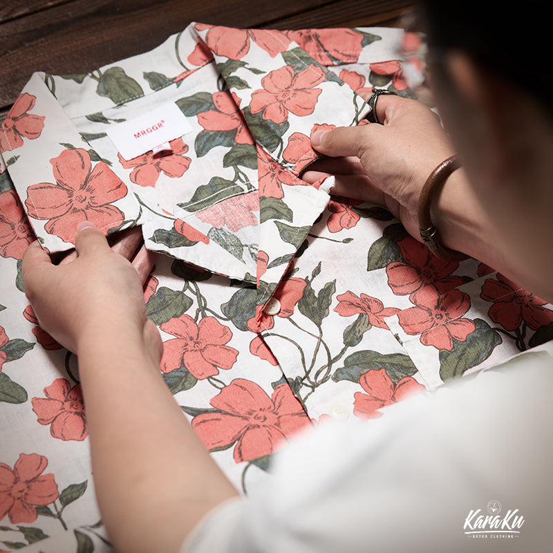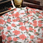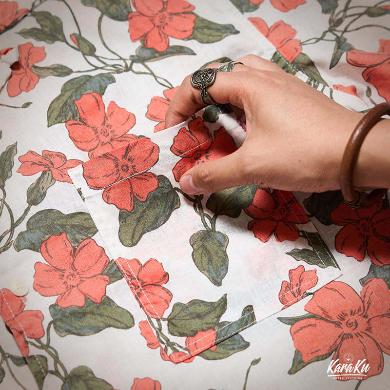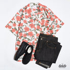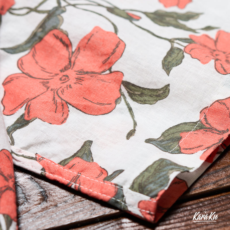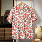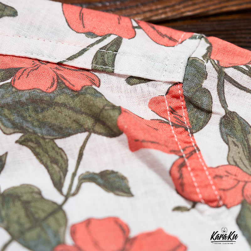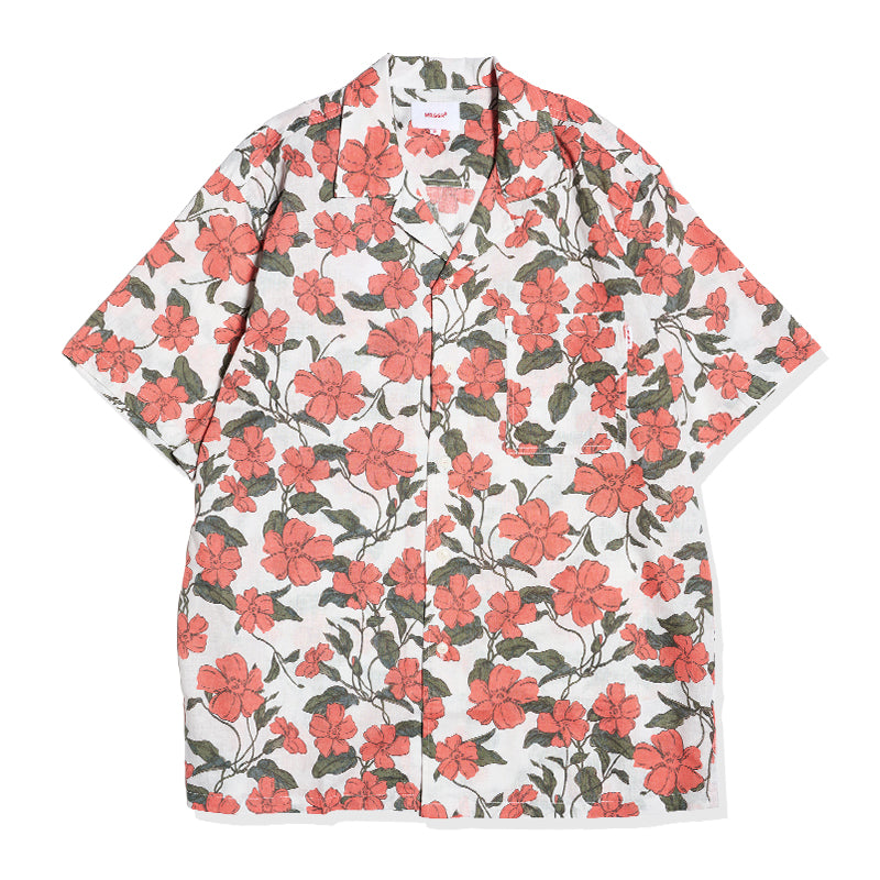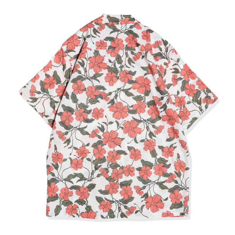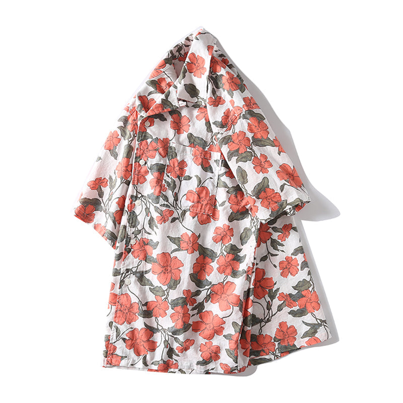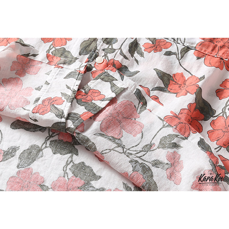 레드 나팔꽃 무늬 면 마 쿠바 셔츠