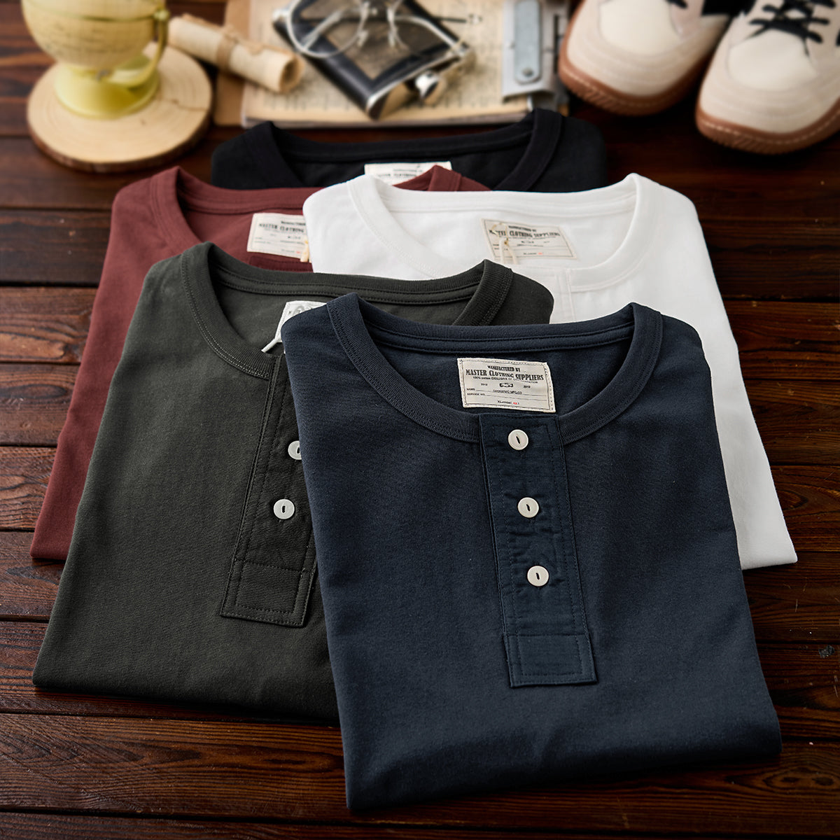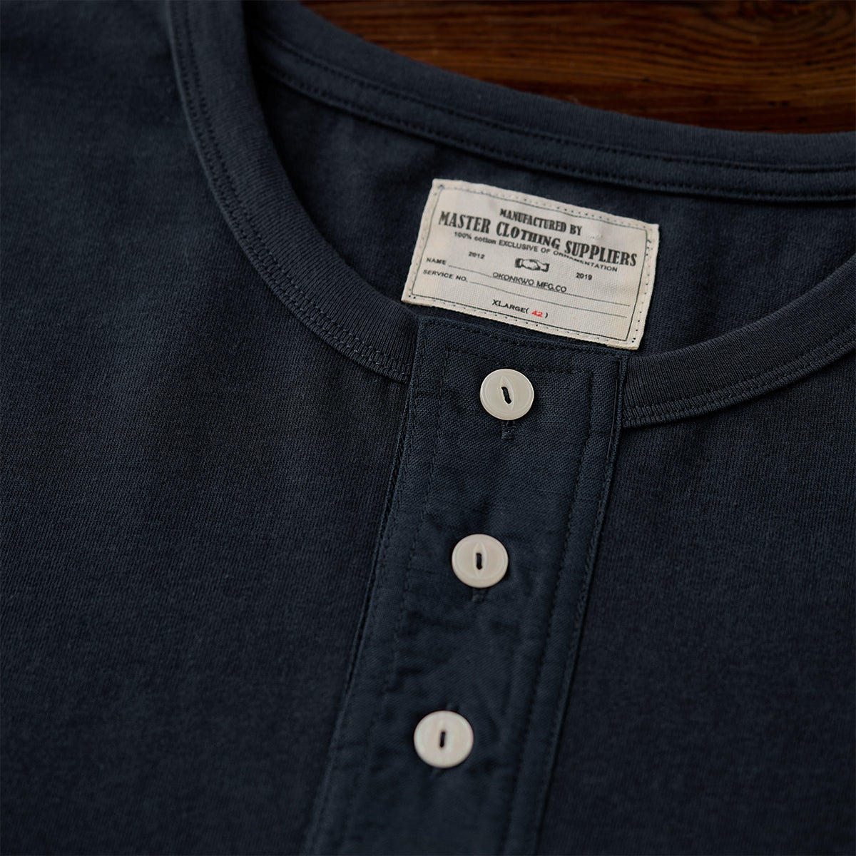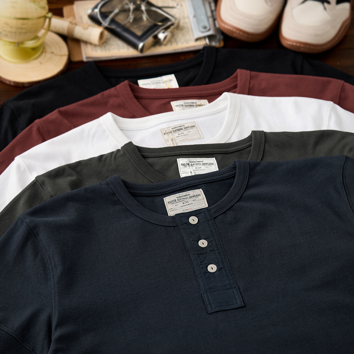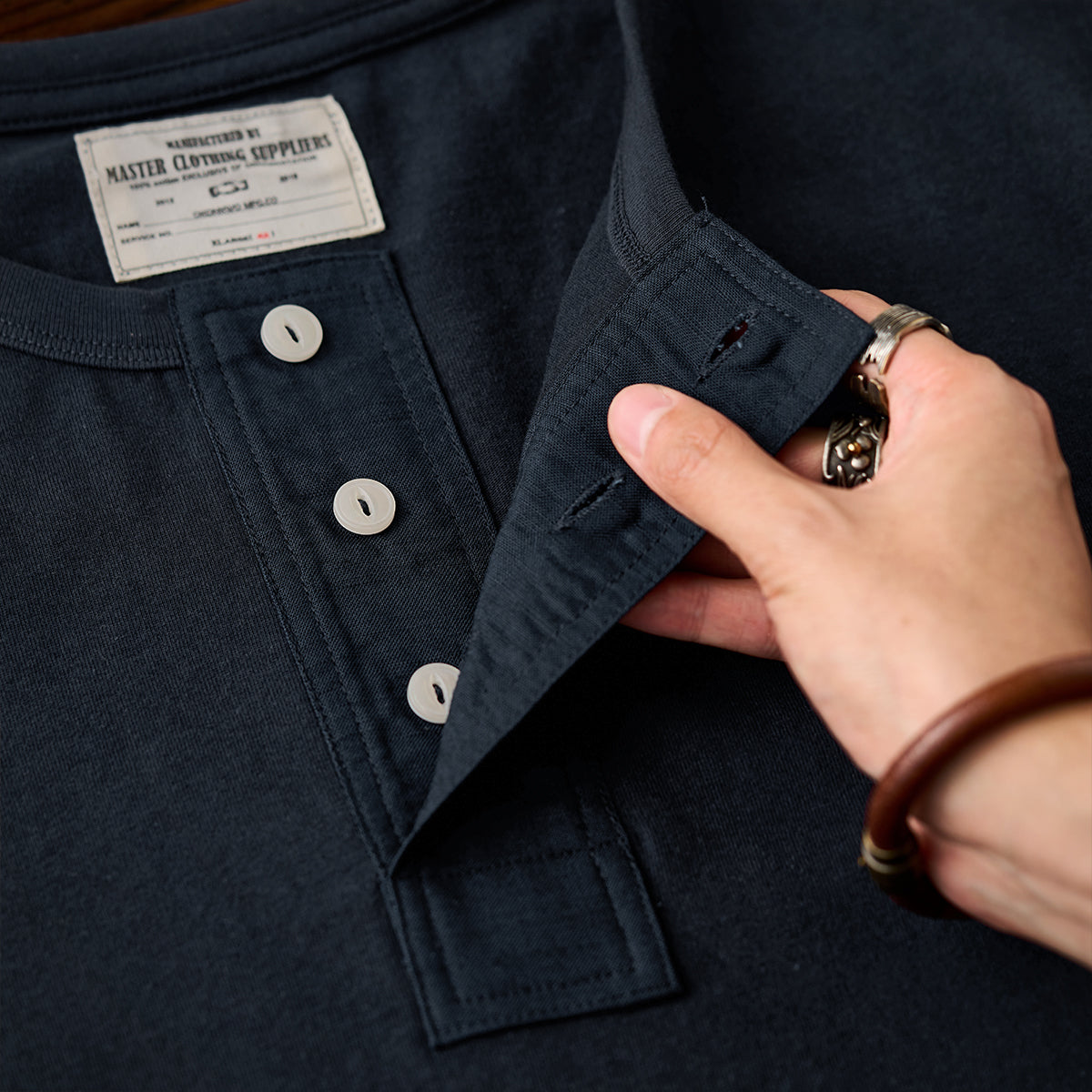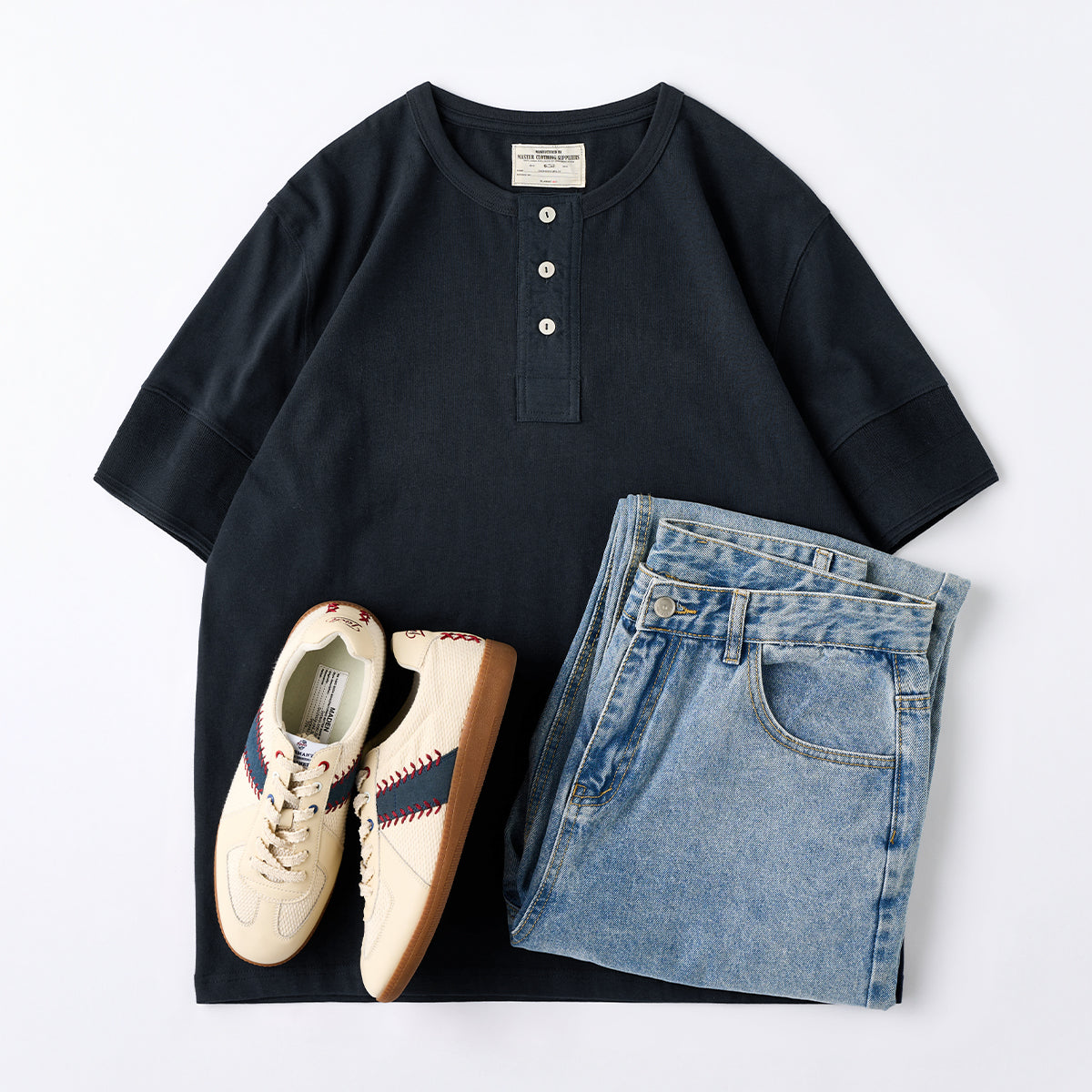 245g 헤비웨이트 코튼으로 제작된 헨리넥 티셔츠로, 견고한 내구성과 고급스러운 질감을 갖춘 어른스러운 아이템입니다.