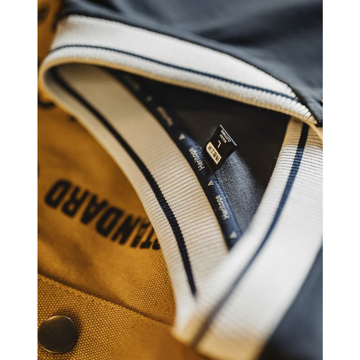 넥라인과 소매 끝에는 라인 디테일의 립(시보리)을 더해 스포티하면서도 클래식한 분위기를 연출합니다.