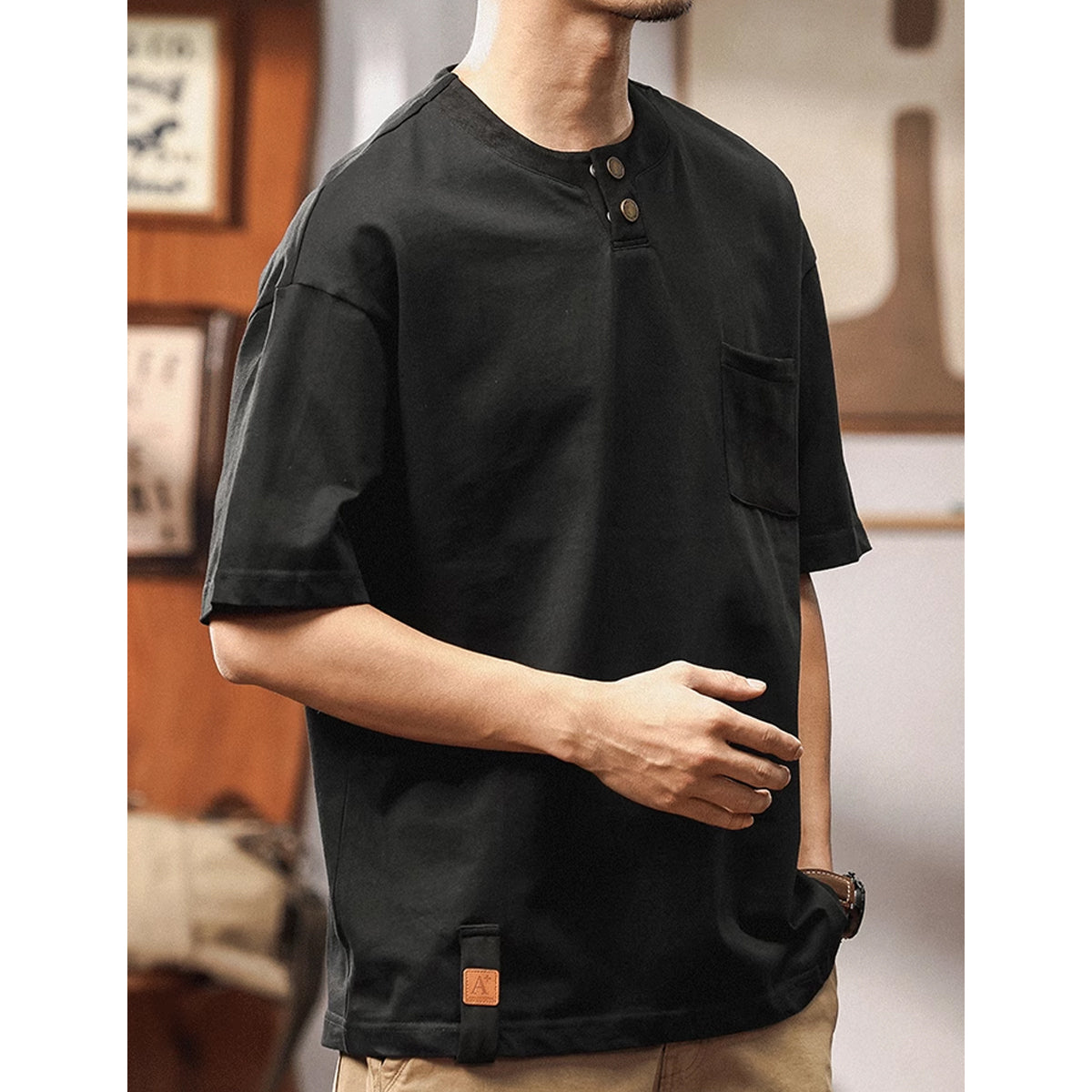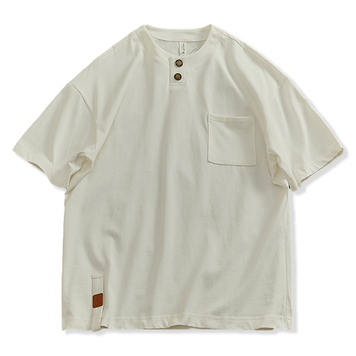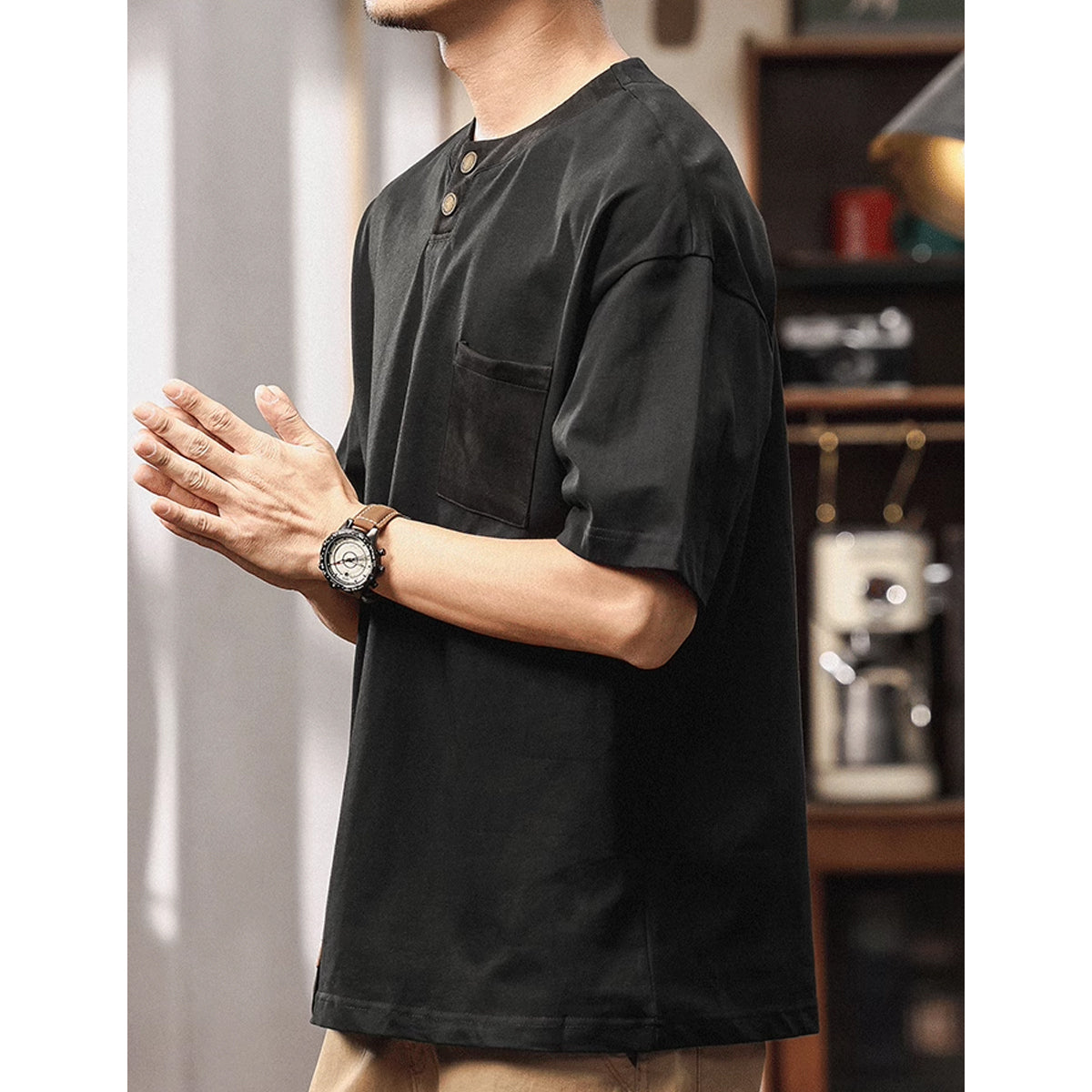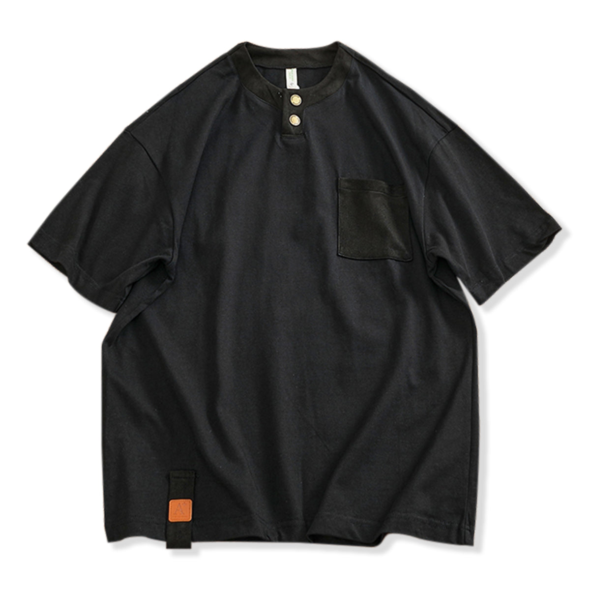 옷깃・포켓 소재콤비 헨리넥 티셔츠