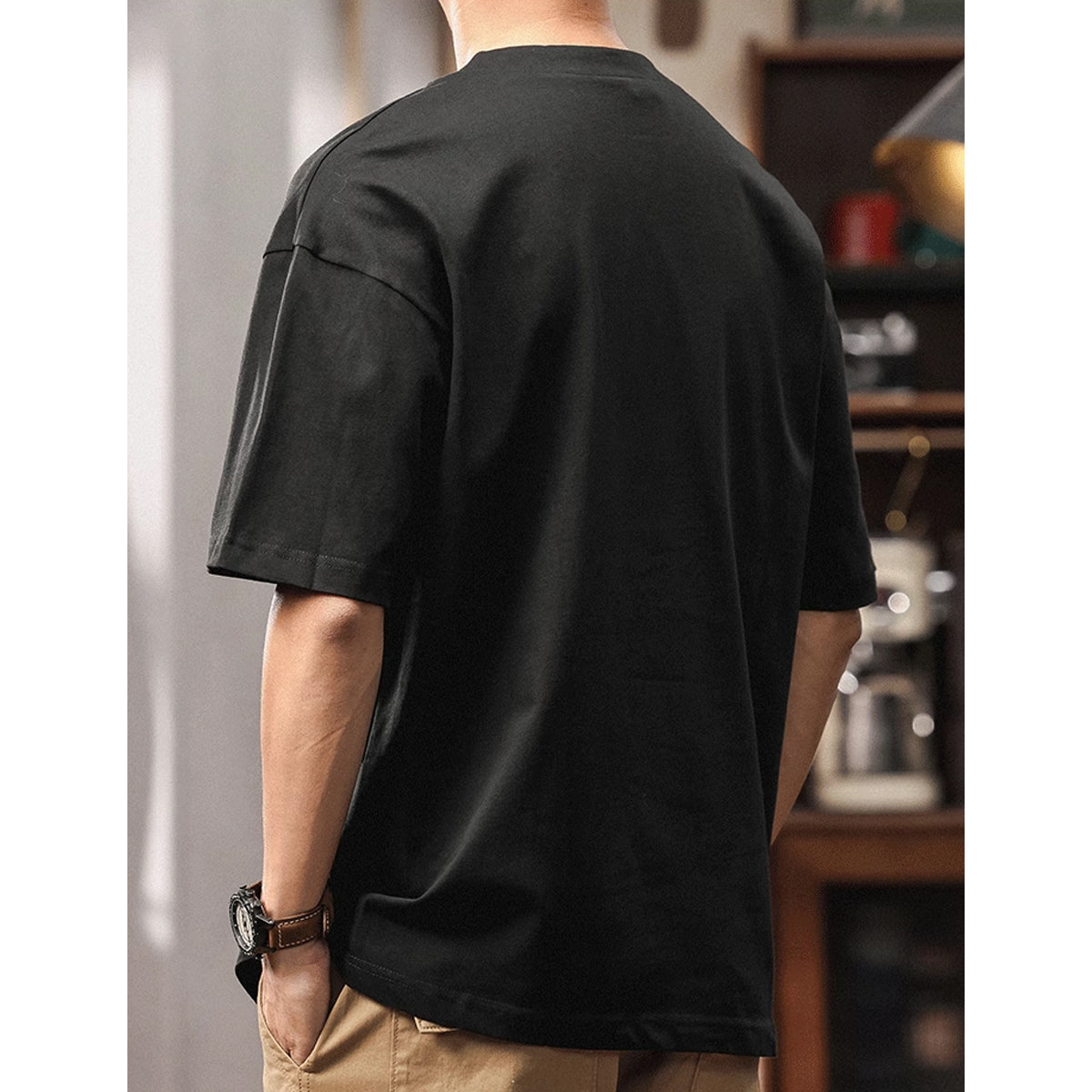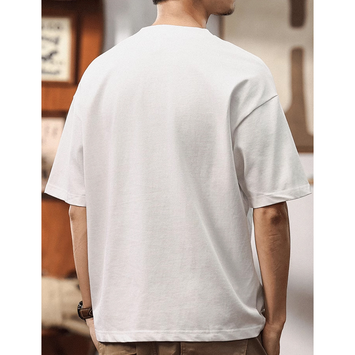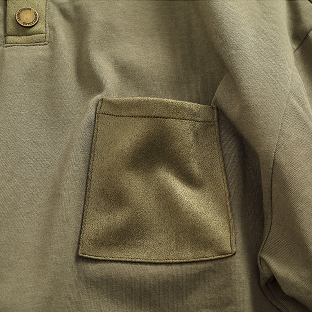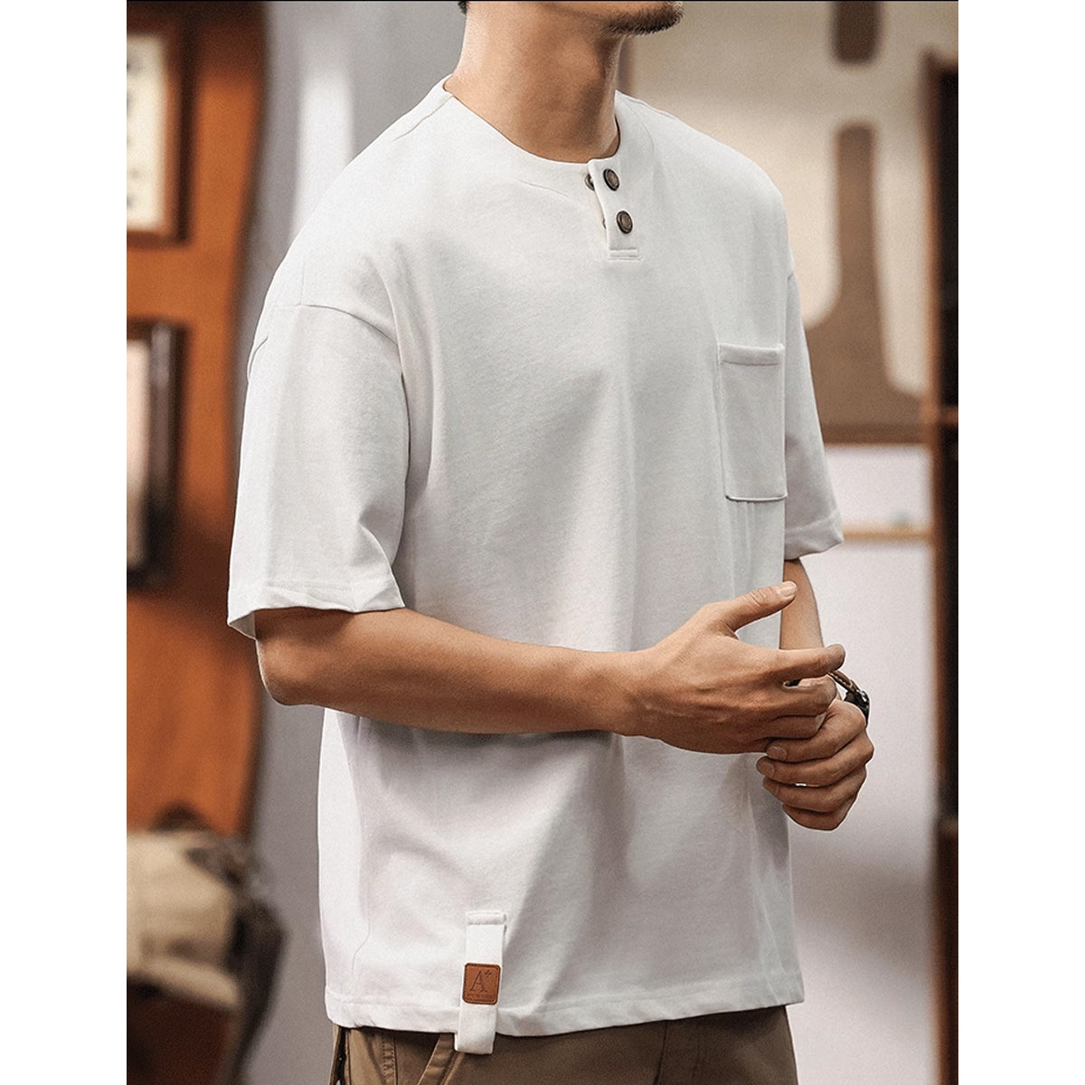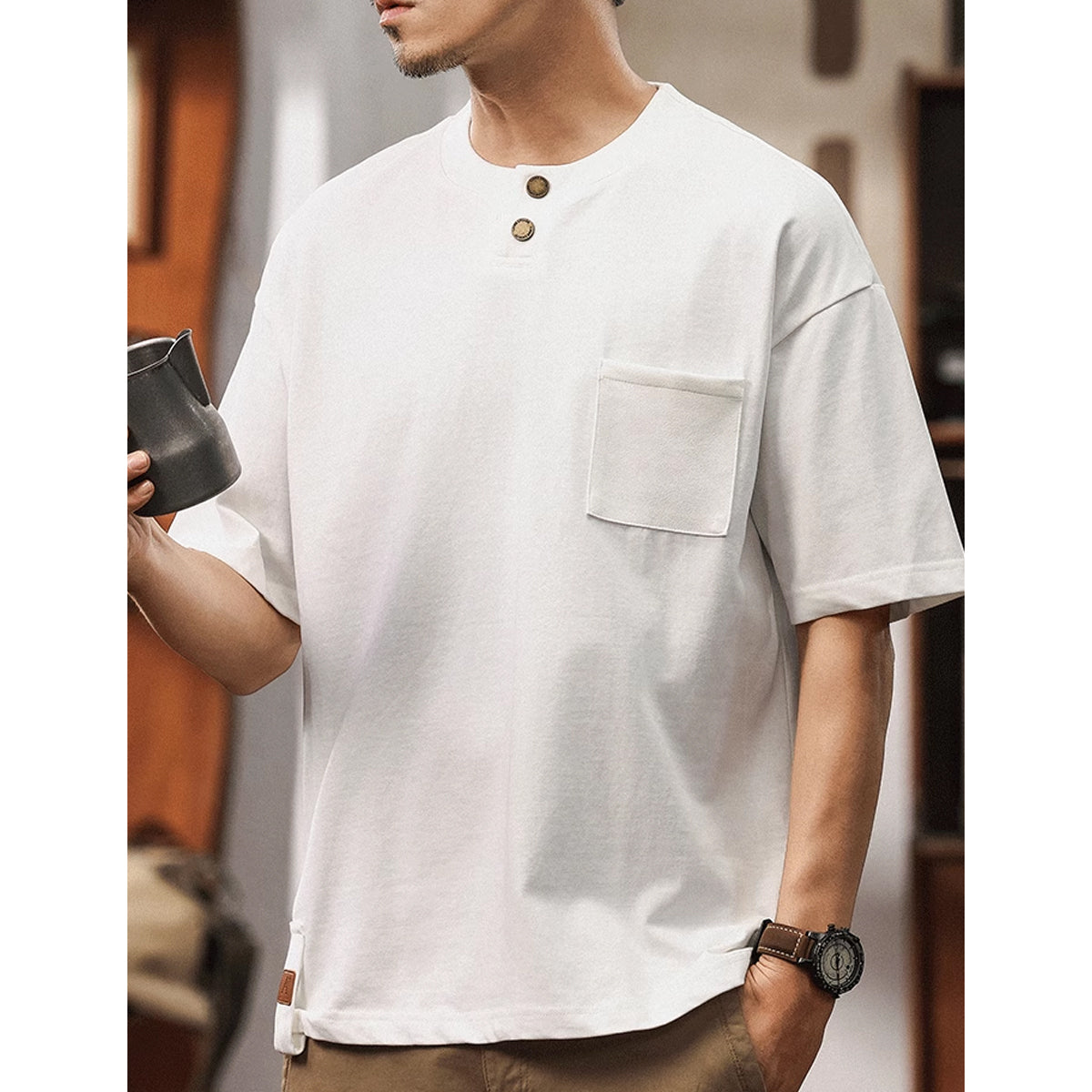 옷깃・포켓 소재콤비 헨리넥 티셔츠