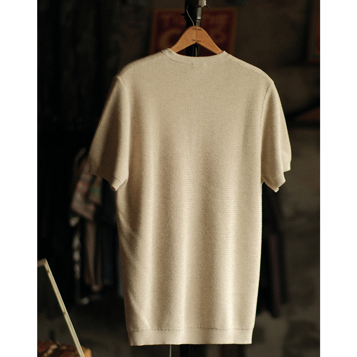 ‘올드 머니 스타일’에서 영감을 받은 니트 자카드 헨리넥 티셔츠입니다. 섬세한 짜임과 포근한 질감이 빈티지 니트를 떠올리게 하는 고급스러운 무드를 연출합니다.