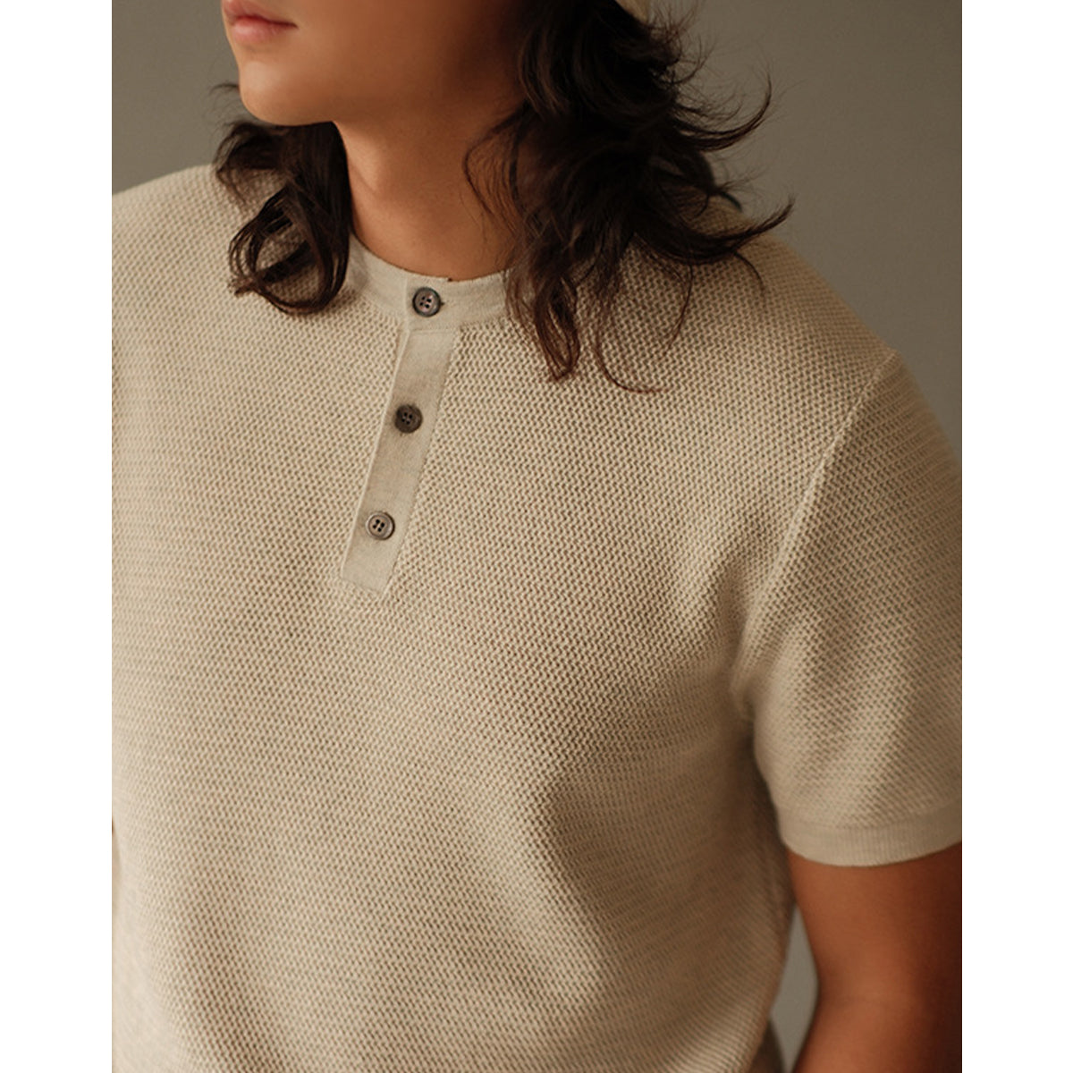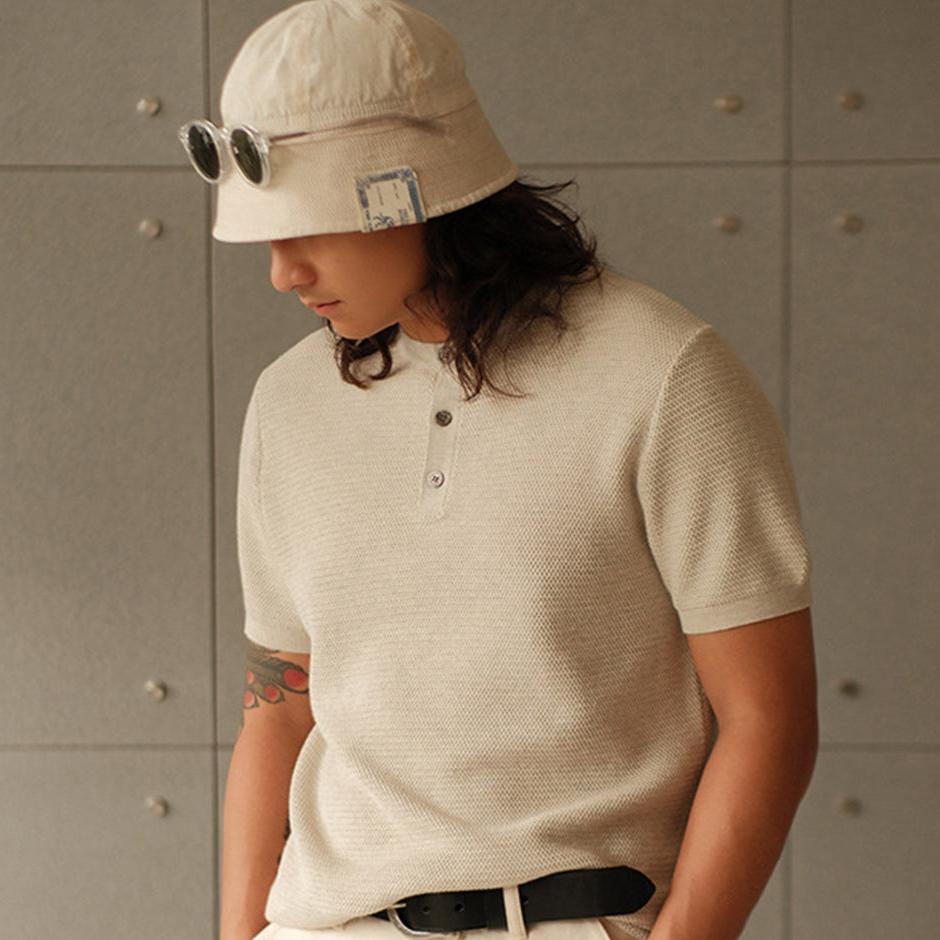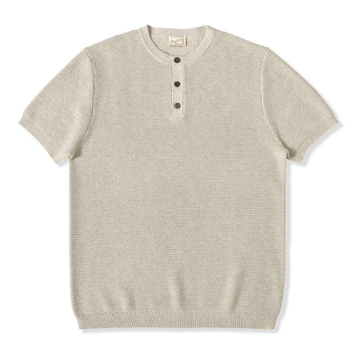 Old Money Style 니트 자카드 짜임 헨리 티셔츠