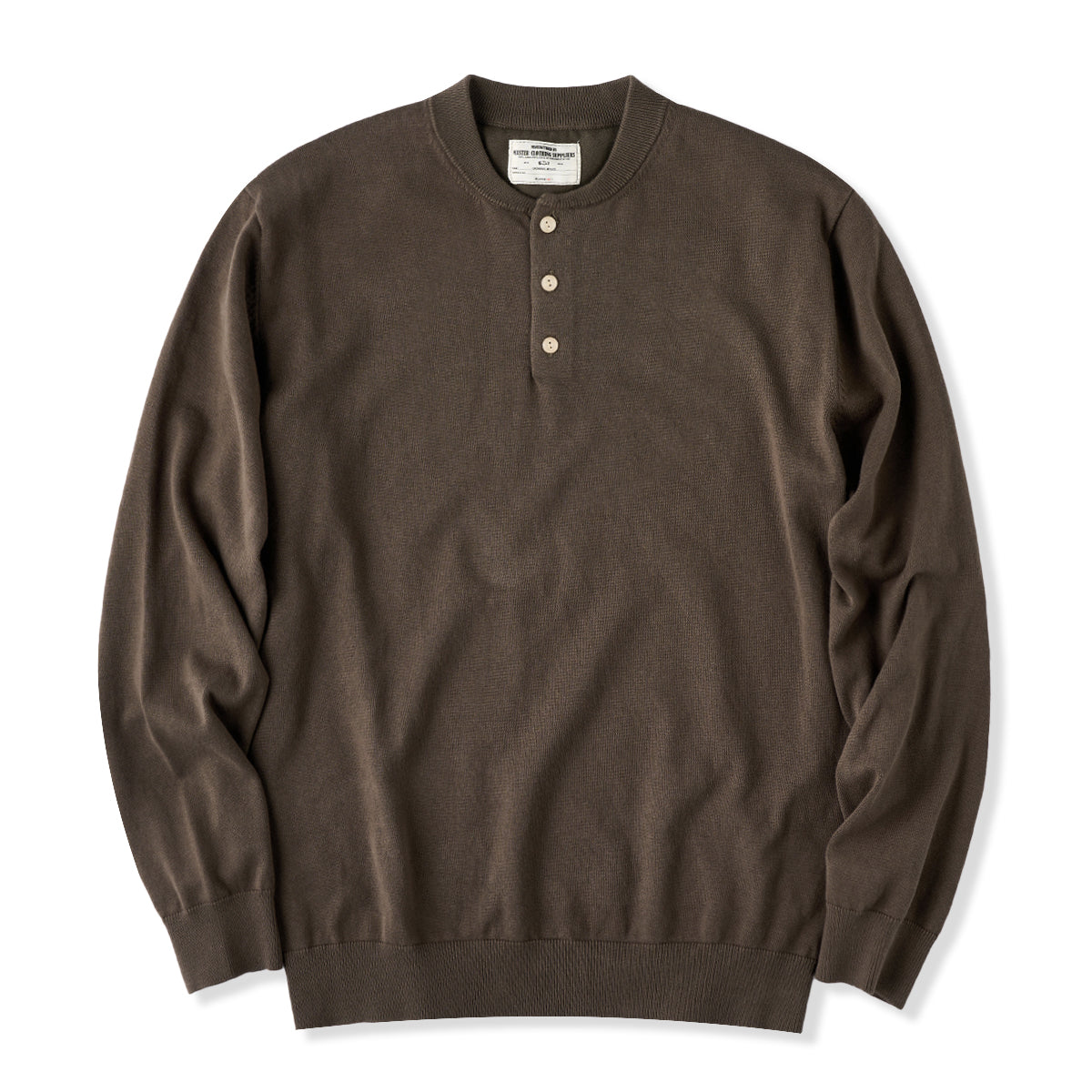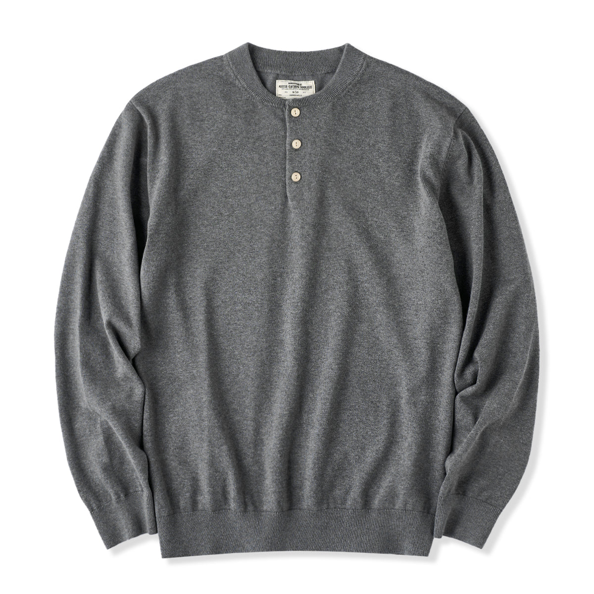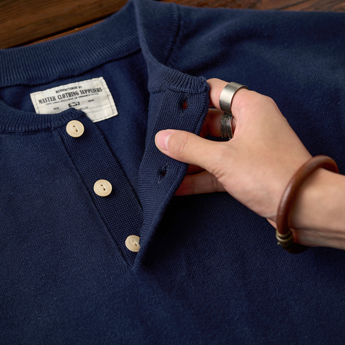 cleanfit 자개단추 코튼 니트 조직 헨리넥 티셔츠