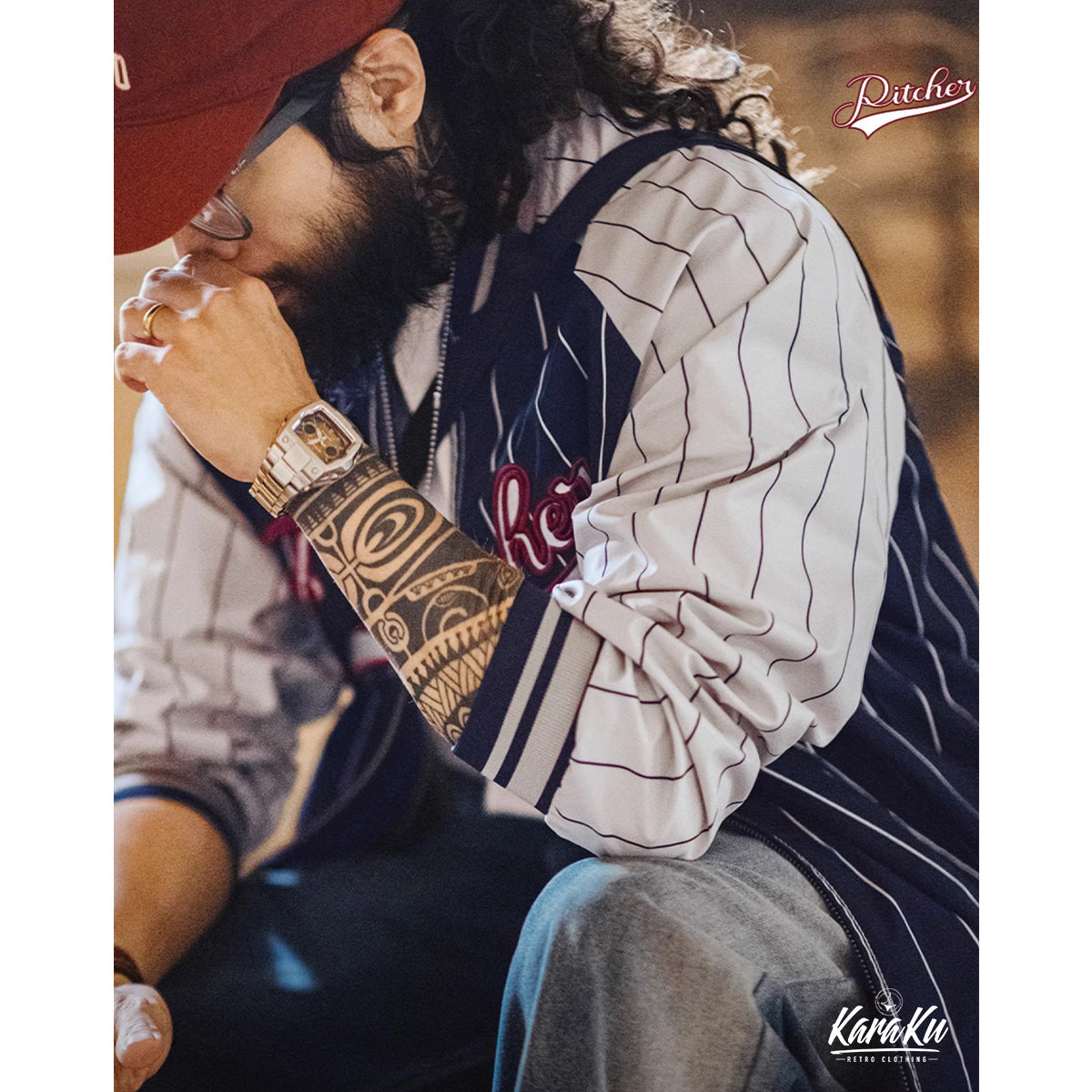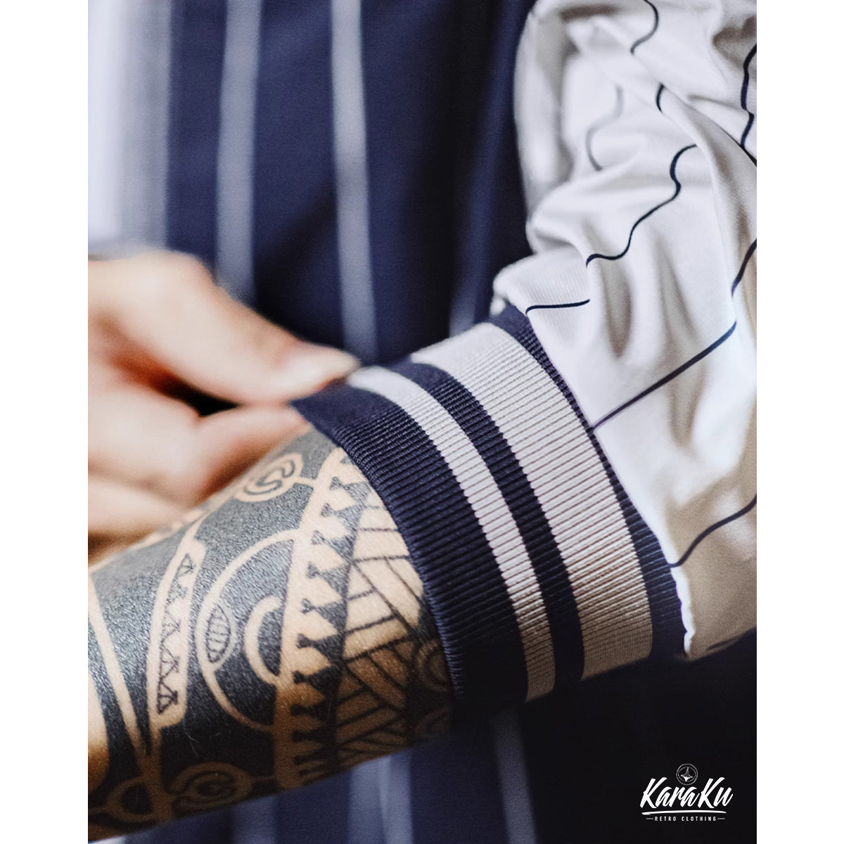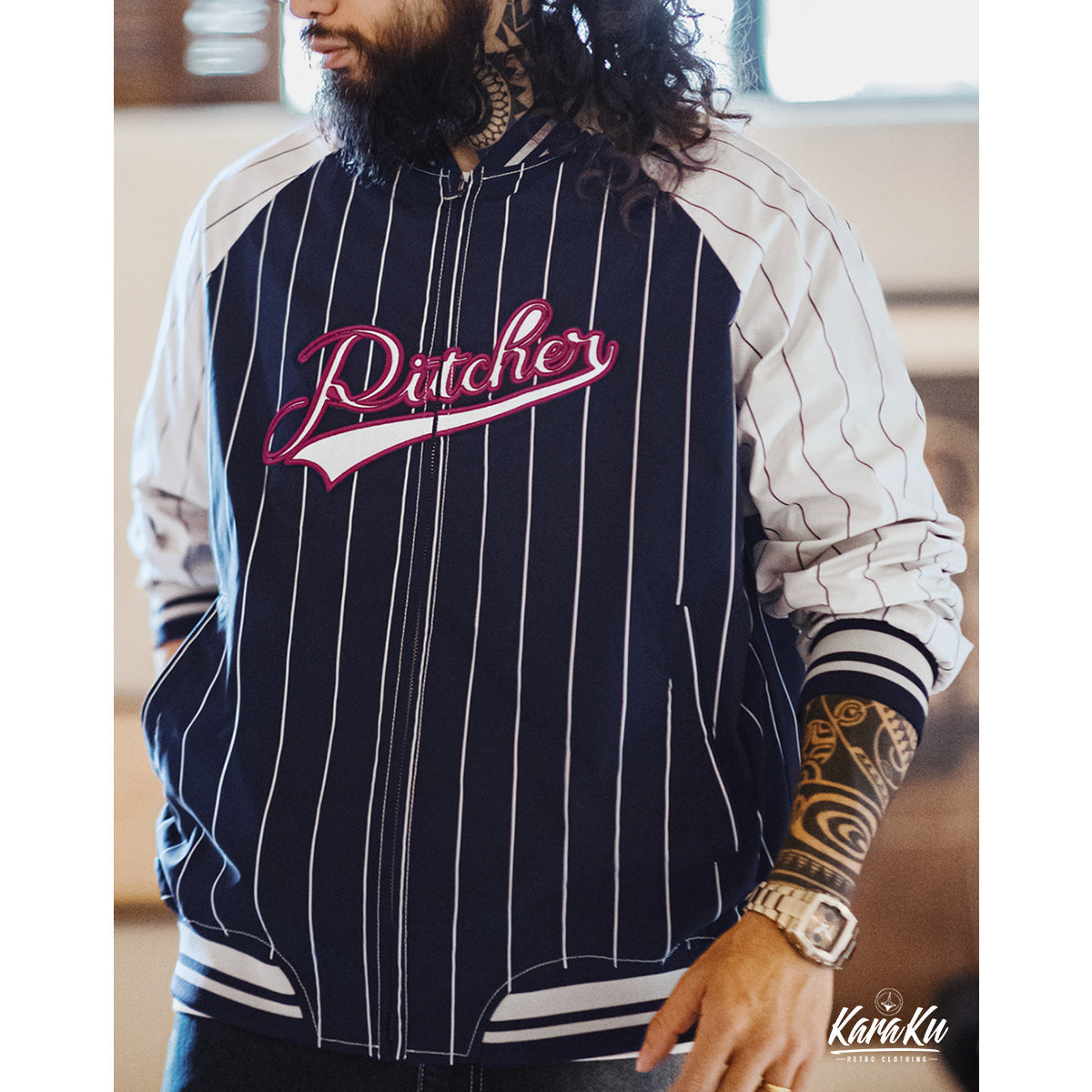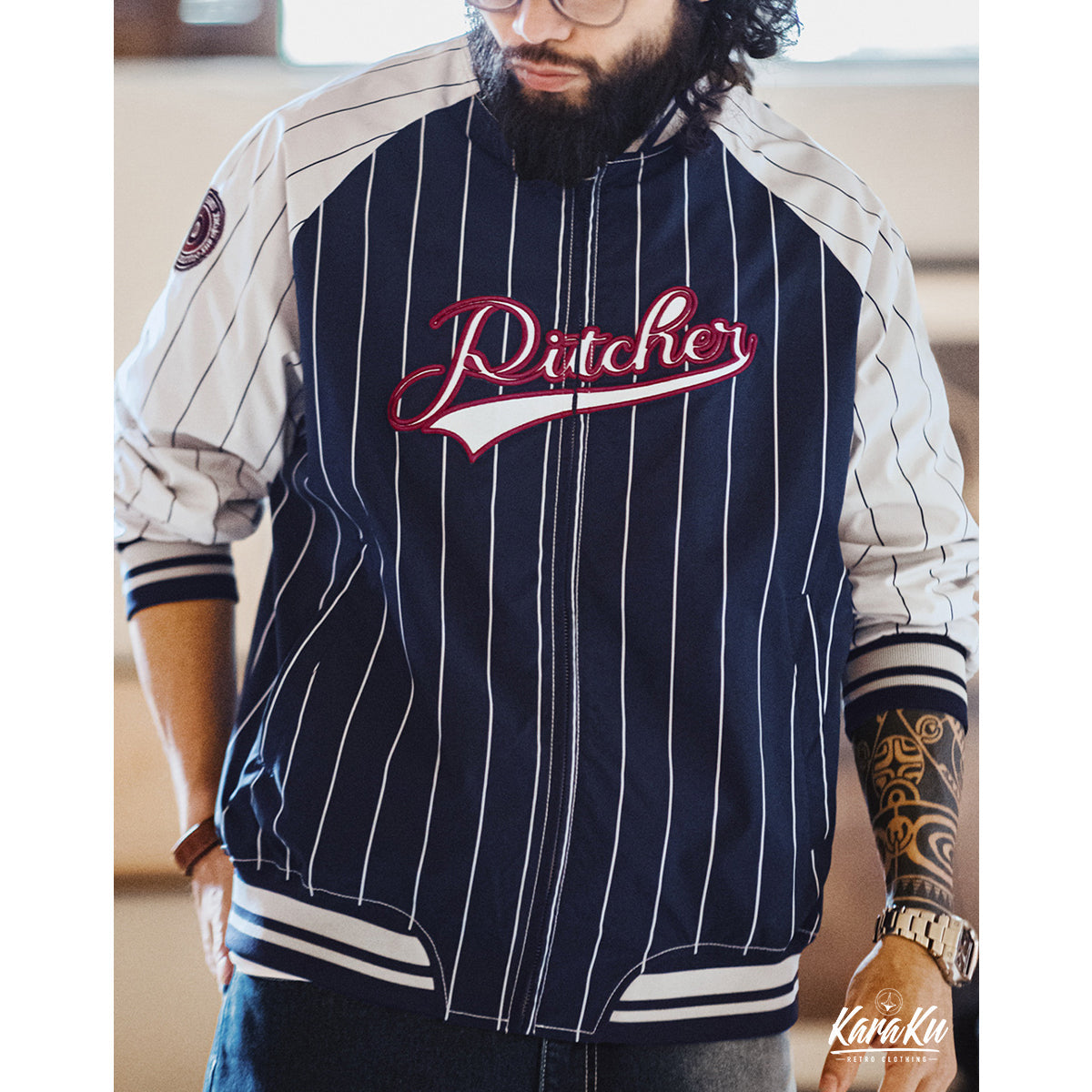 빈티지한 무드에 스포티한 요소를 더한 아우터. 레트로 스트라이프 패턴이 전체적인 포인트가 되며, 컬러 블록 디자인이 한층 더 스타일을 돋보이게 합니다.