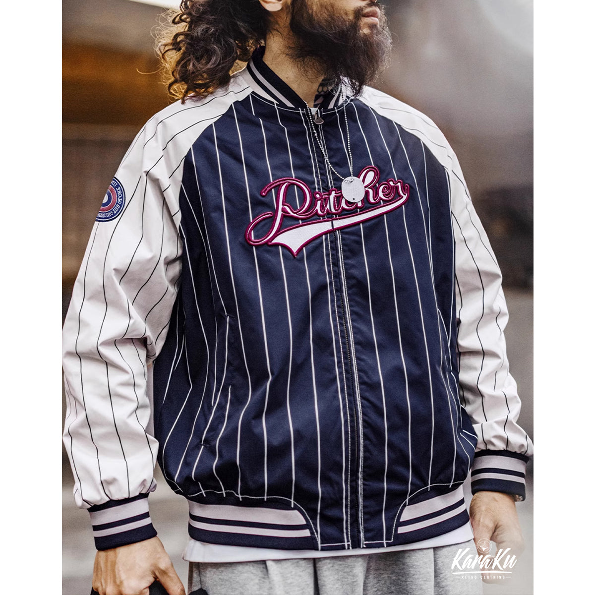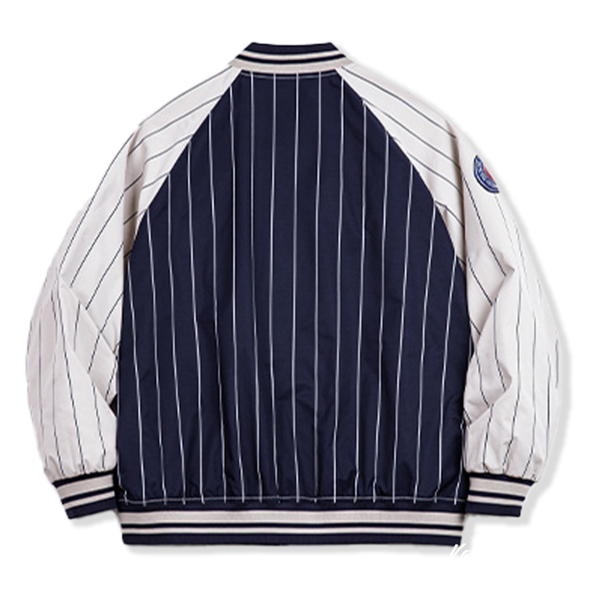 자수 와펜 스트라이프 무늬 컬러 블록 래글런 야구점퍼