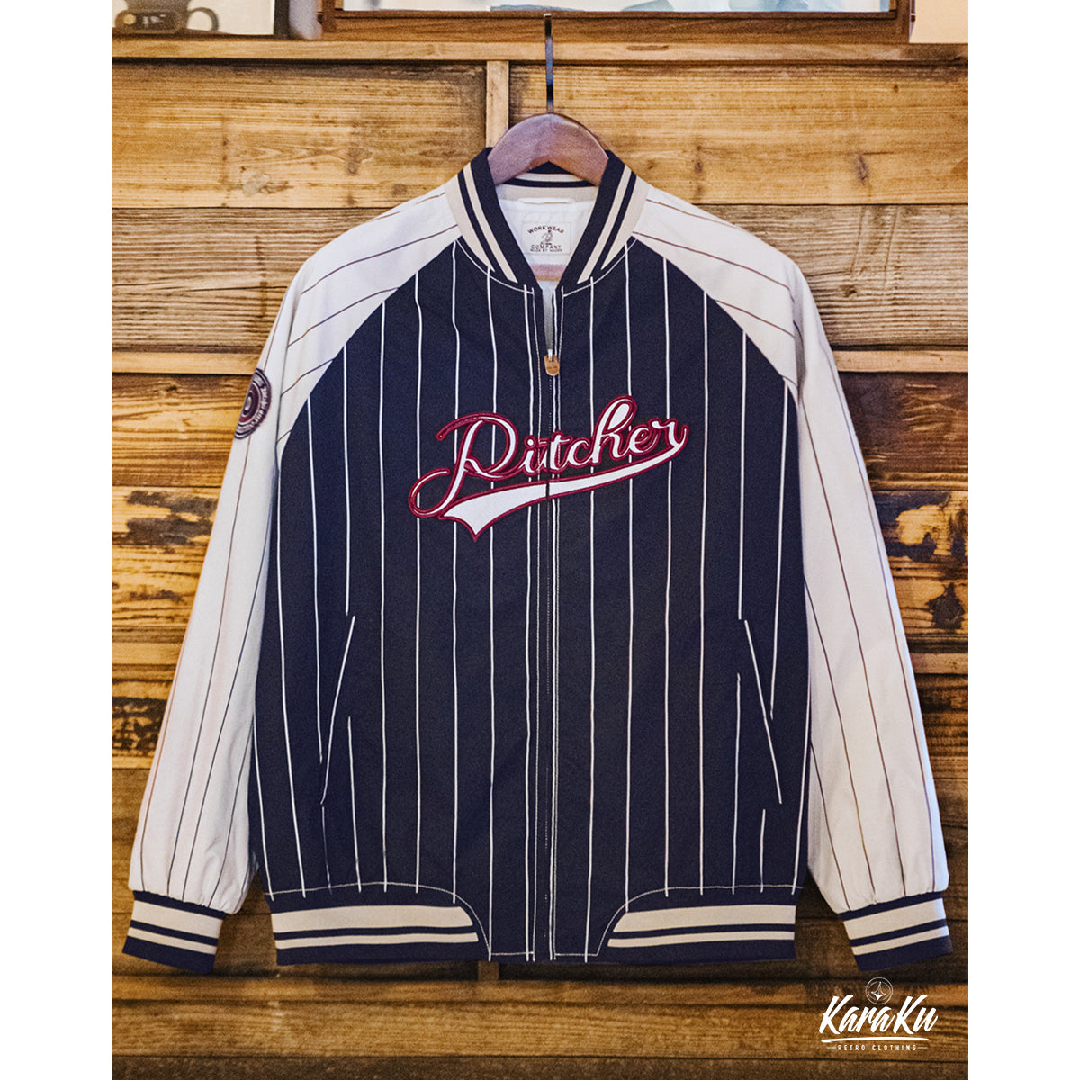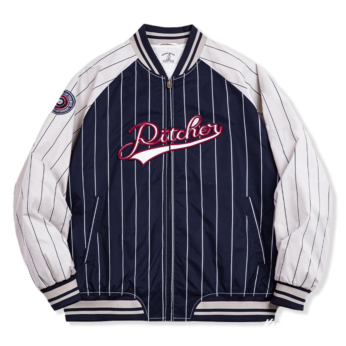 칼라, 소매 끝, 밑단에는 라인 디테일이 들어간 리브를 적용해 클래식한 스타디움 재킷 느낌을 강조했습니다. 가슴과 소매 부분에는 자수 패치를 더해 세심한 디테일을 완성했습니다.
