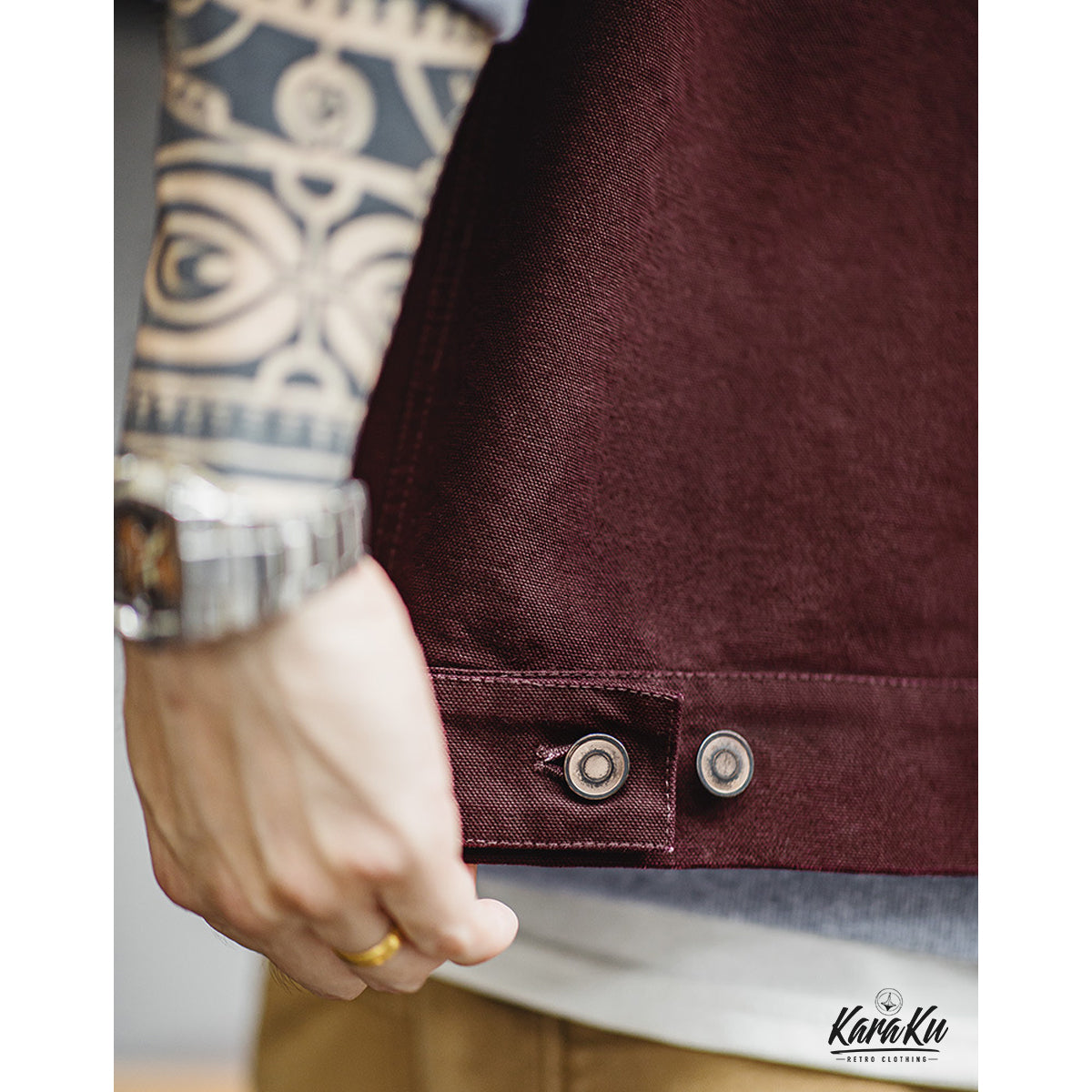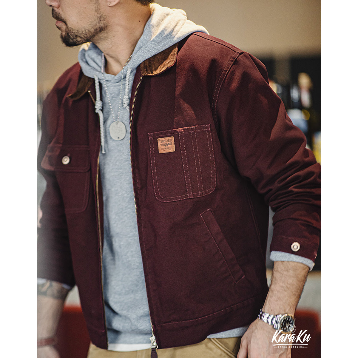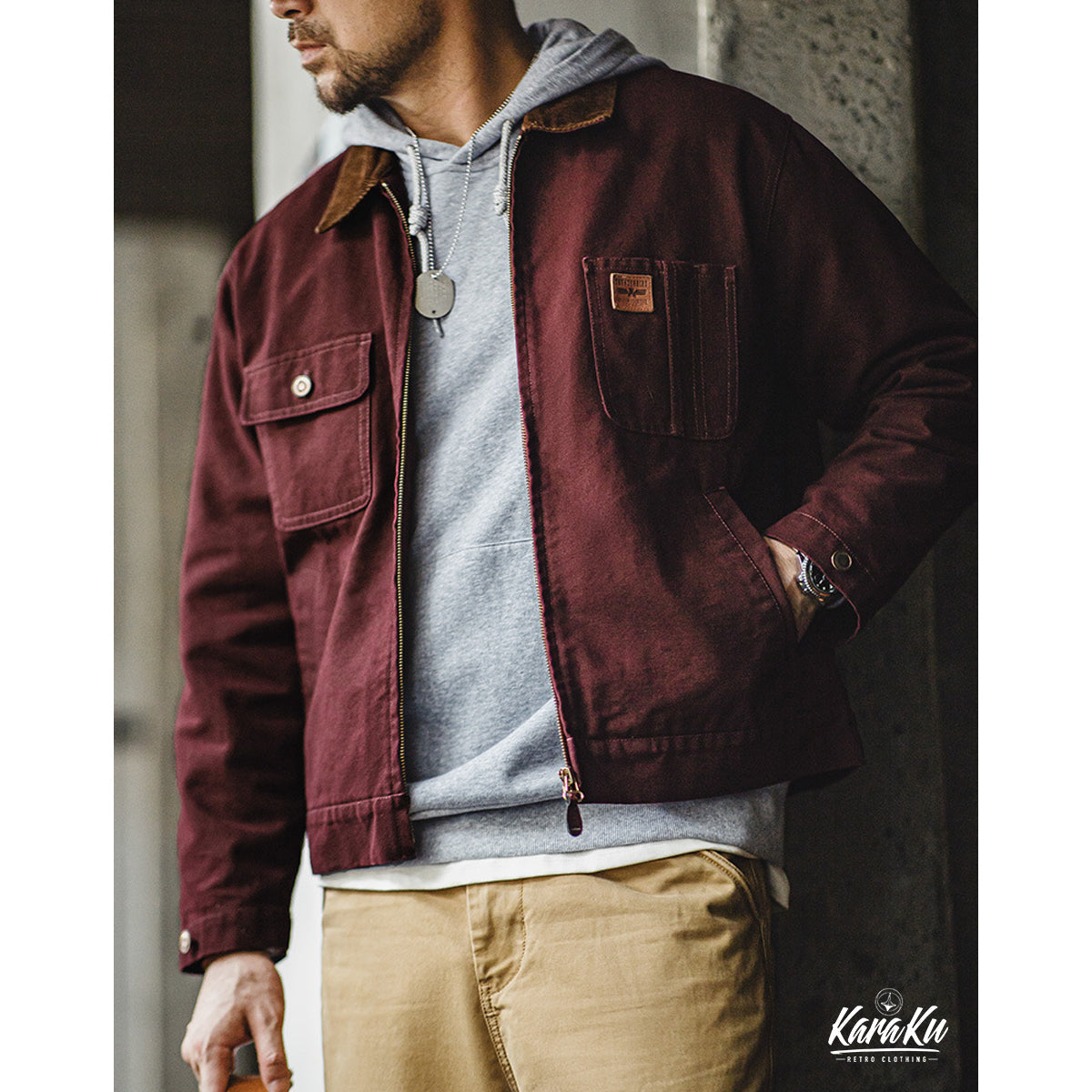 디트로이트 스타일의 자켓으로, 지퍼와 포켓이 있어 실용적이며, 와인 레드와 아미 그린 색상으로 제공됩니다. 견고한 코튼 캔버스 소재로 액티브한 라이프 스타일에 잘 어울립니다.
