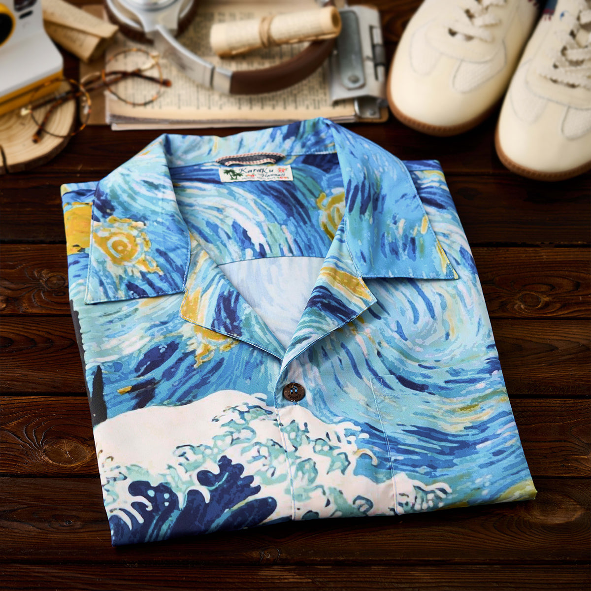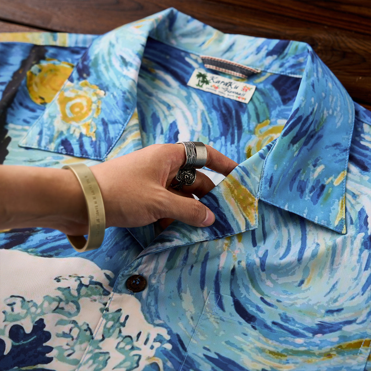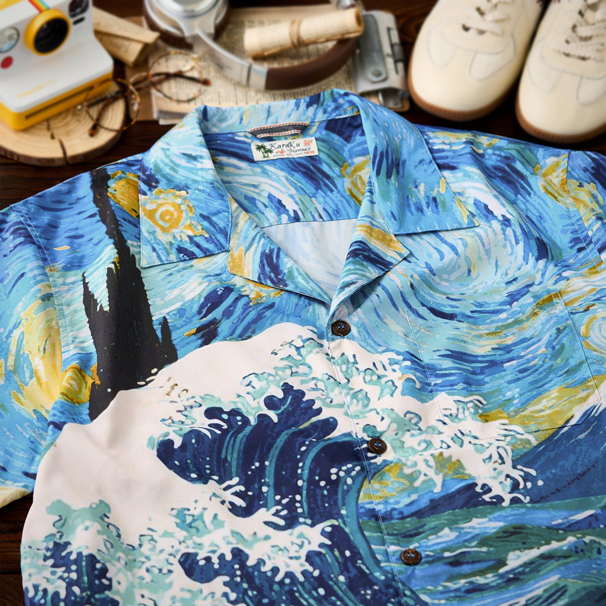 하와이안 셔츠는 셔츠의 한 종류로 알로하 셔츠(Aloha shirt)라고도 불리며 하와이와 같은 바다 배경에 어울리는 화려한 셔츠를 말합니다. 일반적으로 하와이안 셔츠는 꽃문양이나 야자수 등 식물 문양으로 디자인하지만 KaraKu는 하와이안 셔츠를 좀 더 다양한 문양을 선택하여 디자인하였습니다.
