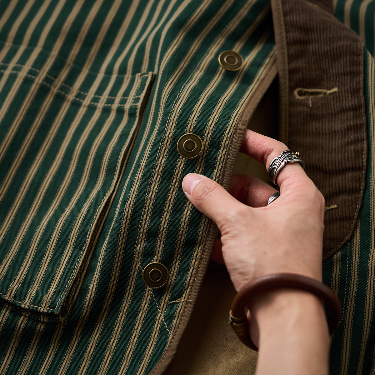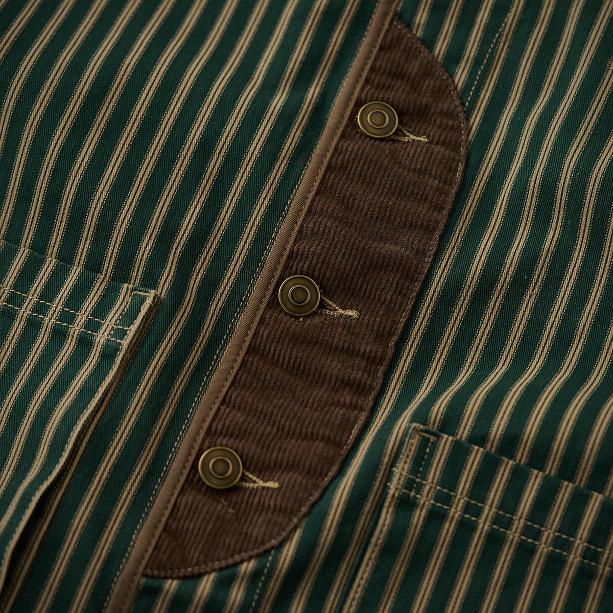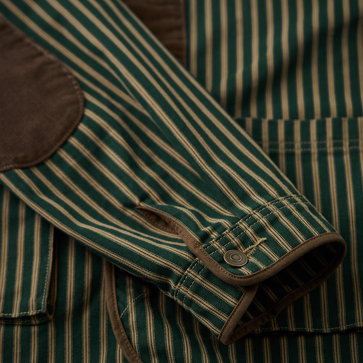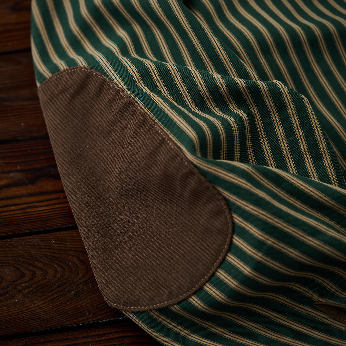 【사전예약】코듀로이 배색 & 팔꿈치 패치 스트라이프 노카라 자켓