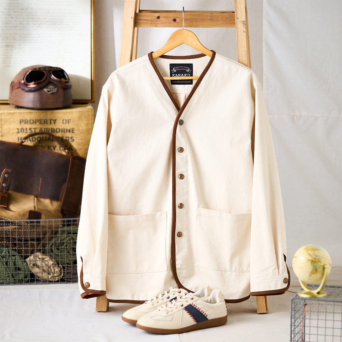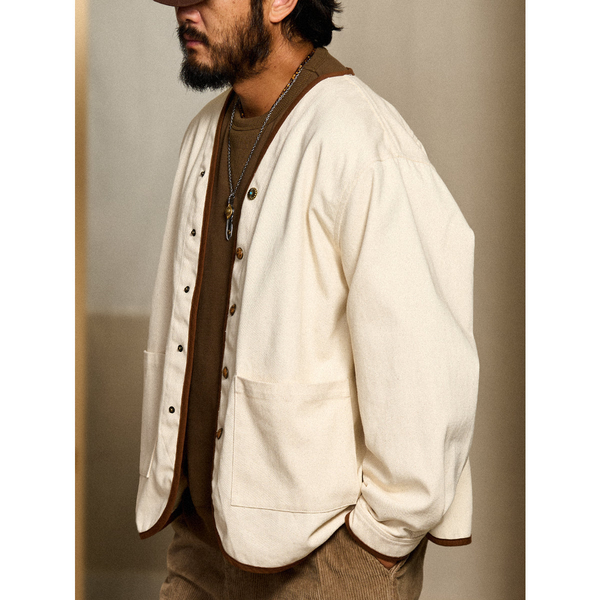 데님이나 치노 팬츠와 잘 어울리며, 레더 부츠나 스니커즈를 매치하면 캐주얼하면서도 조화로운 스타일을 연출할 수 있습니다. 이너로 화이트나 그레이 톤 티셔츠를 레이어드하면 전체적으로 가볍고 산뜻한 분위기를 연출할 수 있습니다.