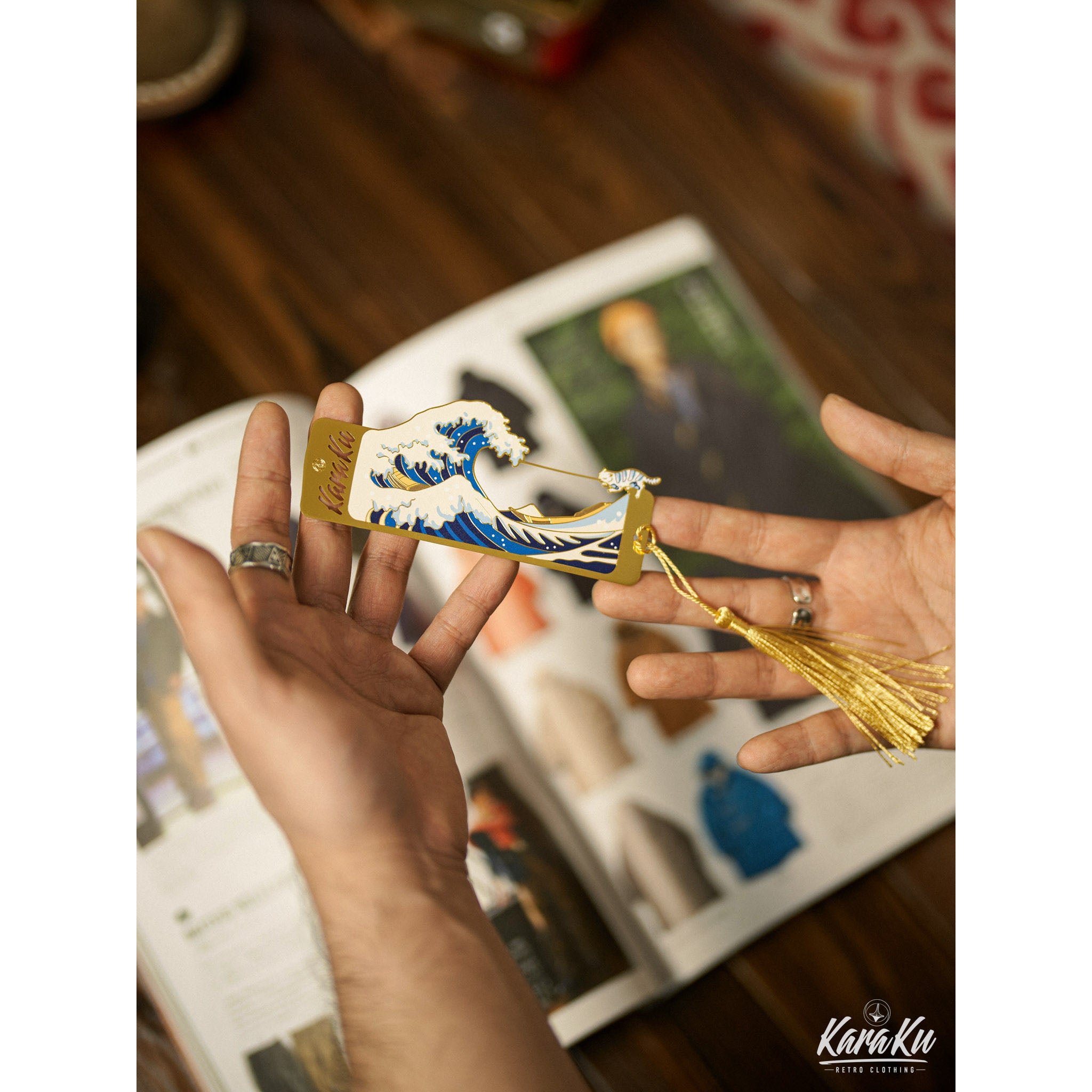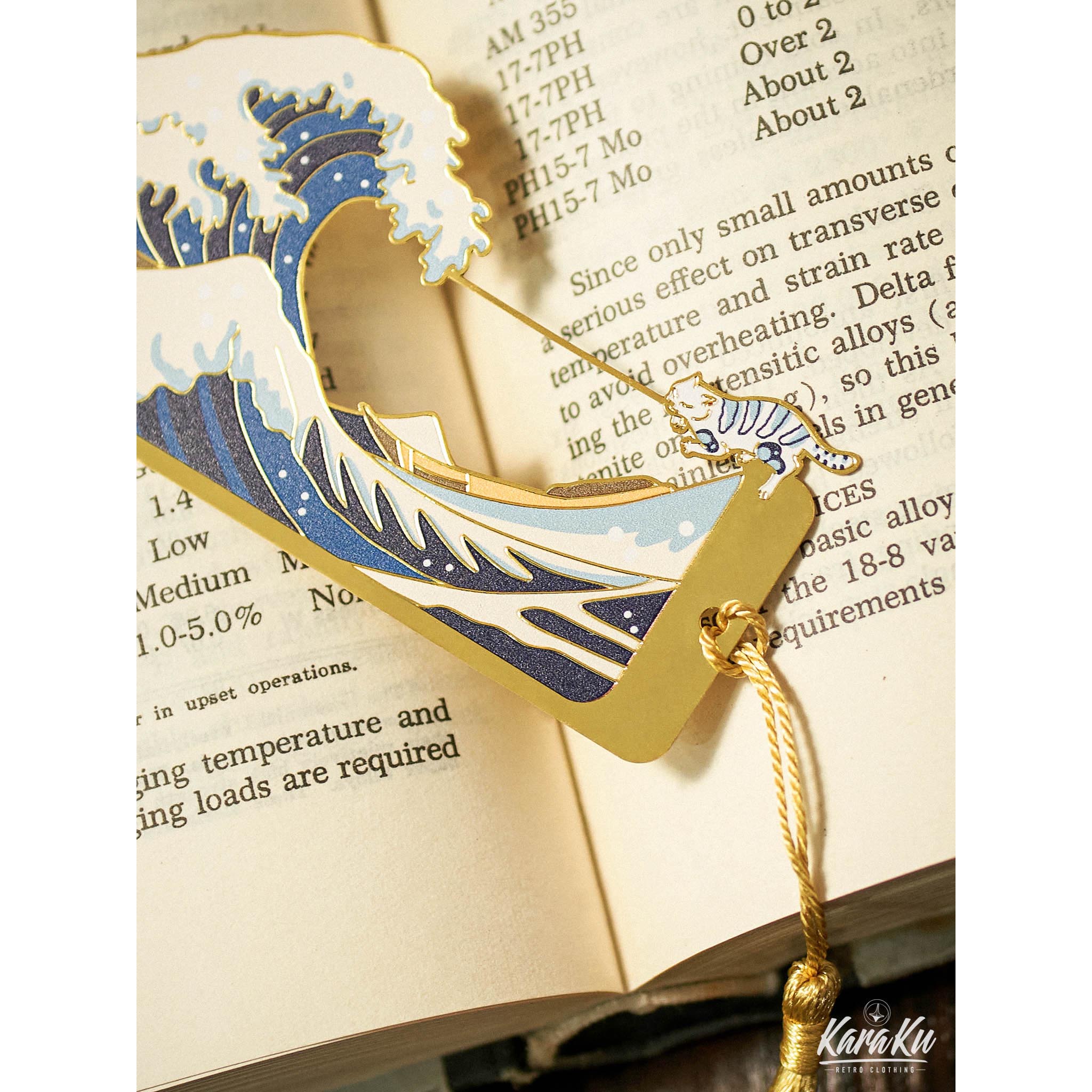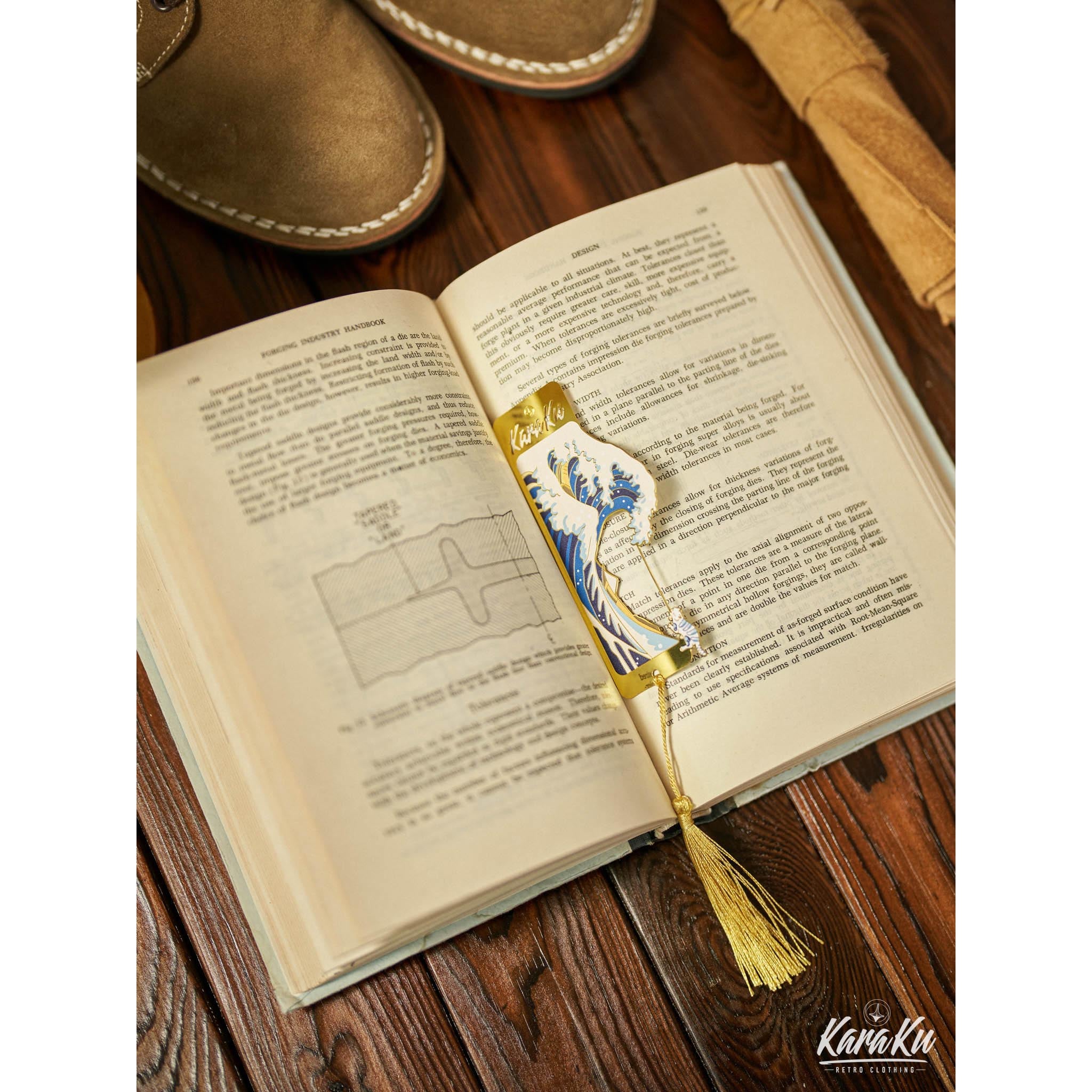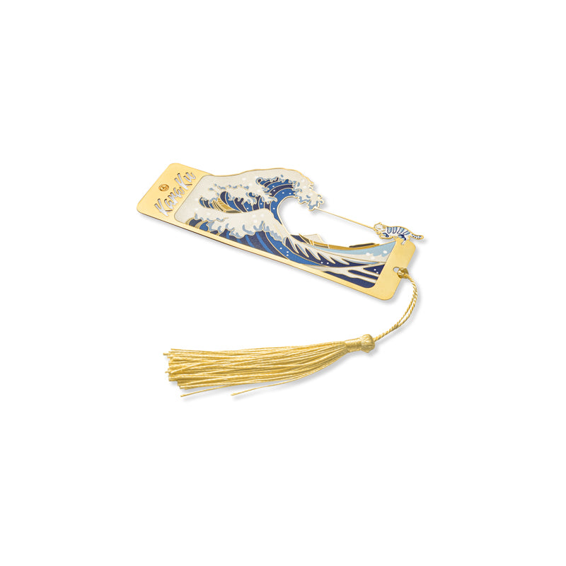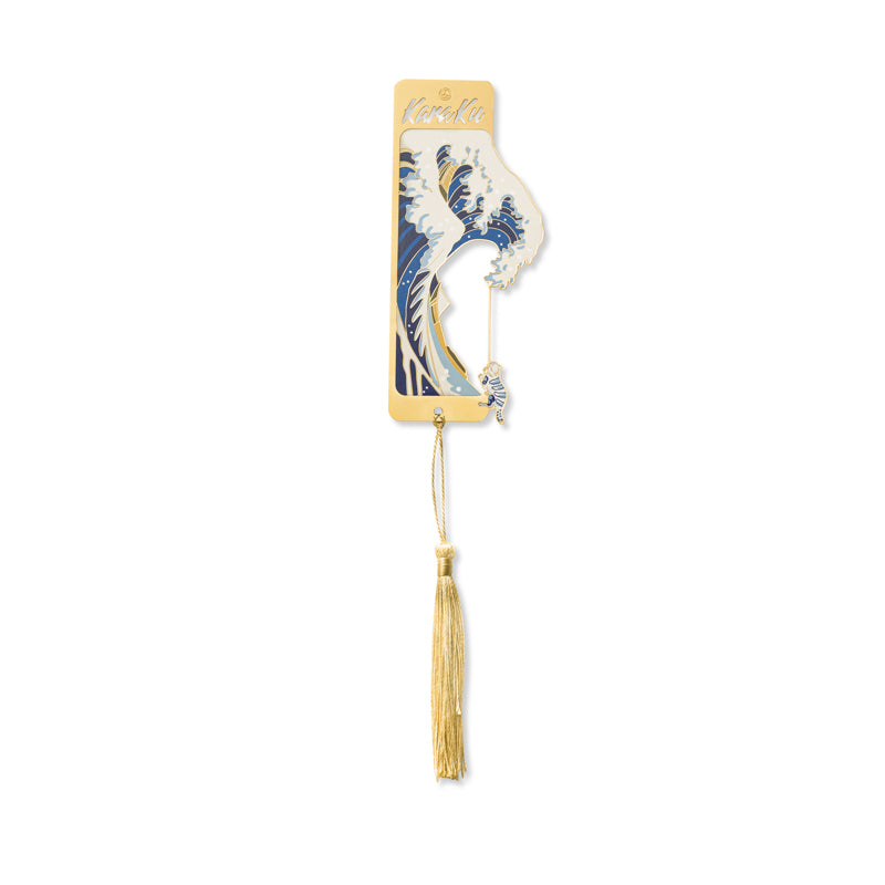 Karaku 로고「가나가와 오키나미와 파도타는 고양이」금속 북마커