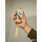 장식성이 높은 악센트 컬러의 끈이 달려 있어