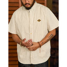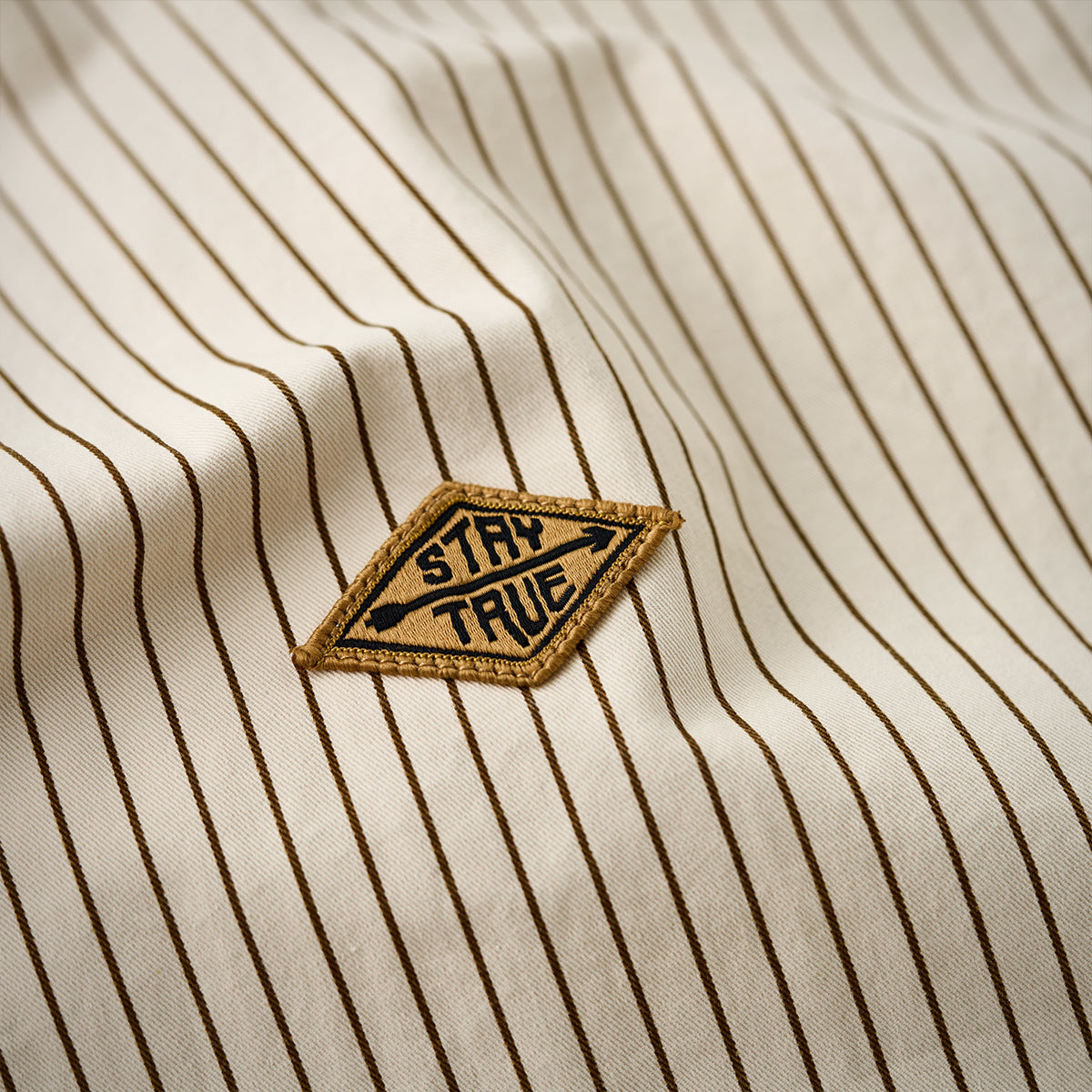 왼쪽 가슴에 ‘stay true’ 자수 배지가 포인트로 들어가 있으며, 레트로한 베이스볼 무드가 더해져 스트리트와 빈티지 감성이 조화를 이룹니다.