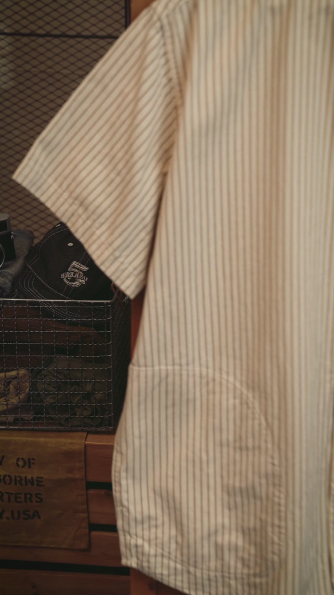 전체 스트라이프 패턴과 적당한 오버 실루엣으로 다양한 스타일링에 어울리며 멋스러운 분위기를 완성합니다.