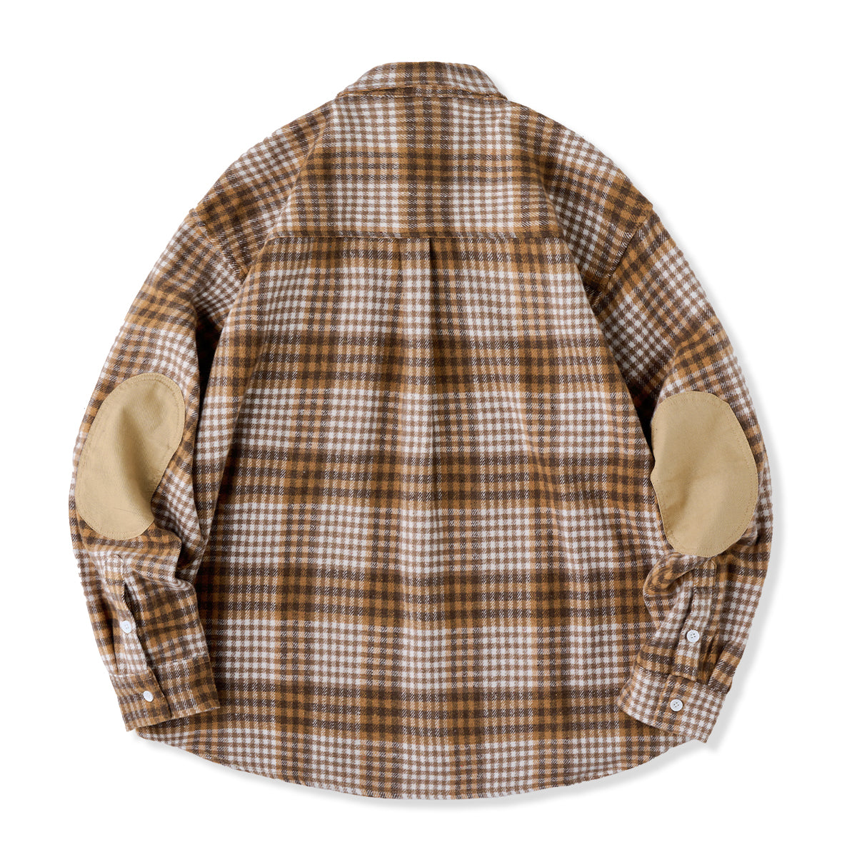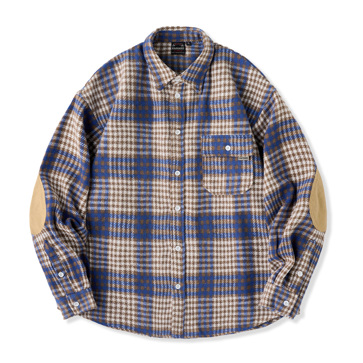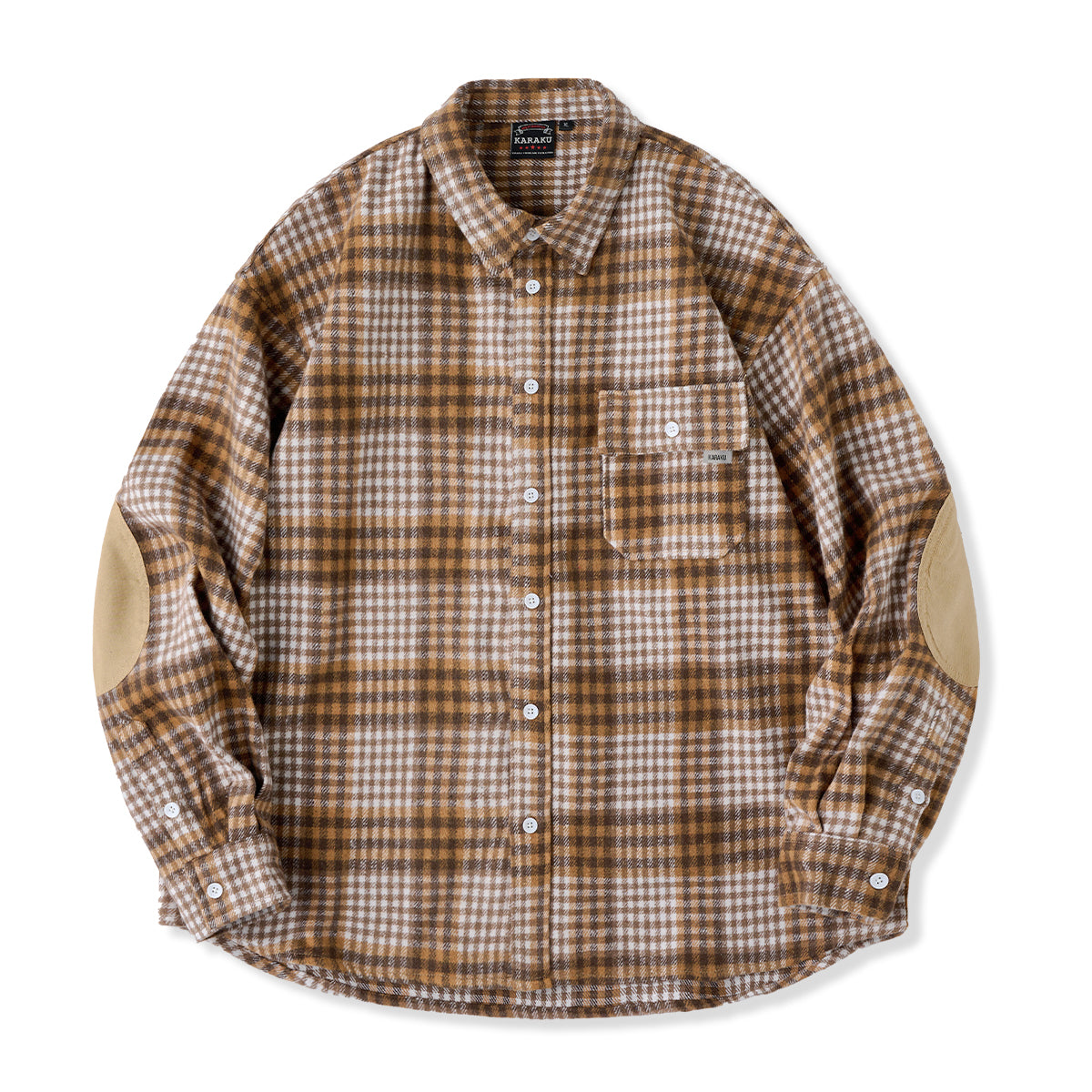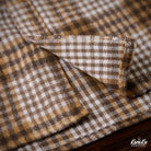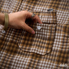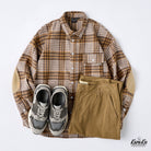 체크무늬는 편안한 착용감과 익숙해질수록 오래 사용할 수 있는 점이 특징입니다. 왼쪽 가슴에는 실용적인 포켓이 있어 소품 수납에 용이하며, 팔꿈치 부분에는 추가 보강 패치가 적용되어 내구성을 높이는 동시에 디자인 포인트가 됩니다. 또한, 밑단은 완만한 곡선을 그린 커브 헴 사양으로, 스트레이트 헴보다 여유로운 실루엣을 제공해 겹쳐 입어도 편안한 움직임이 가능합니다.