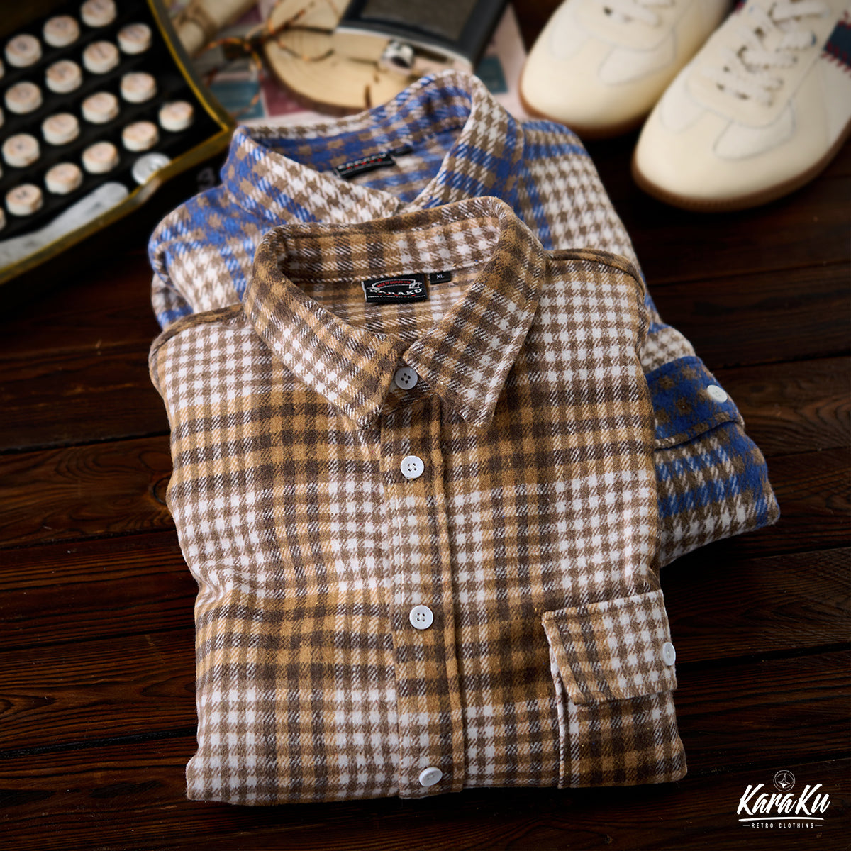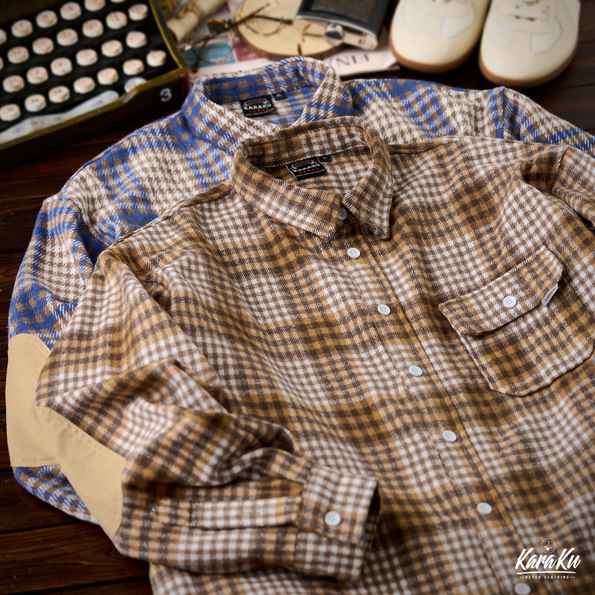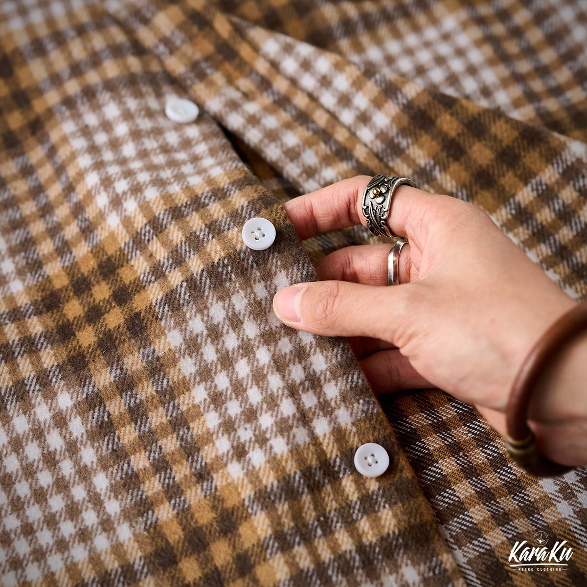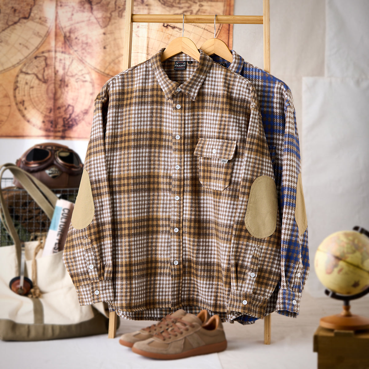 체크무늬는 편안한 착용감과 익숙해질수록 오래 사용할 수 있는 점이 특징입니다. 왼쪽 가슴에는 실용적인 포켓이 있어 소품 수납에 용이하며, 팔꿈치 부분에는 추가 보강 패치가 적용되어 내구성을 높이는 동시에 디자인 포인트가 됩니다. 또한, 밑단은 완만한 곡선을 그린 커브 헴 사양으로, 스트레이트 헴보다 여유로운 실루엣을 제공해 겹쳐 입어도 편안한 움직임이 가능합니다.