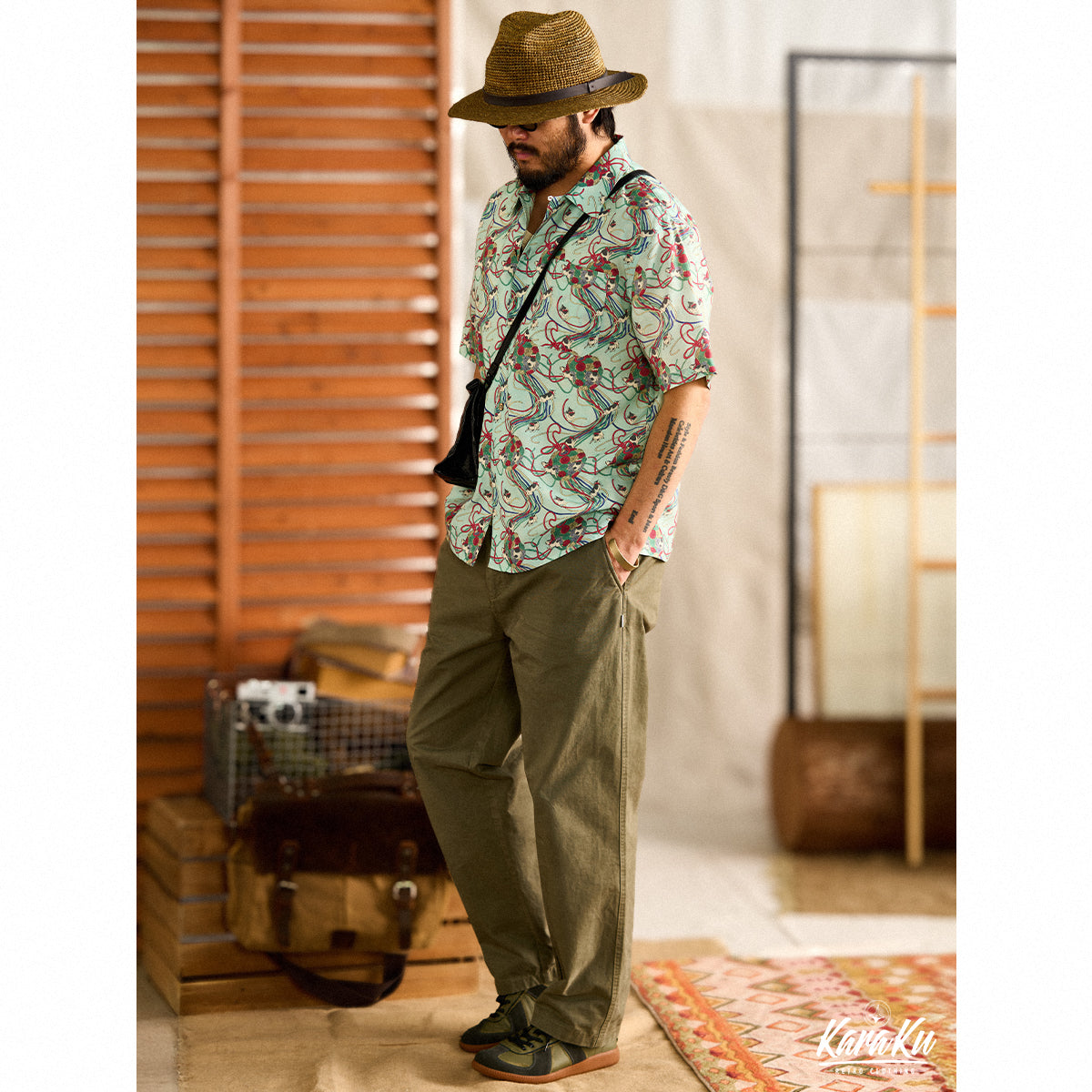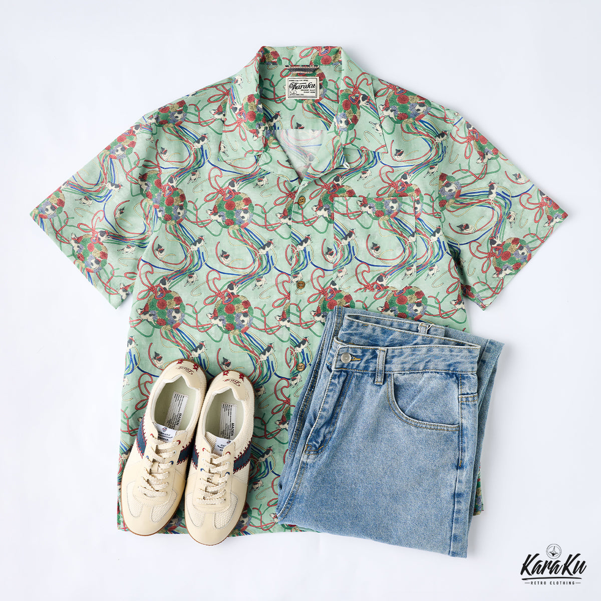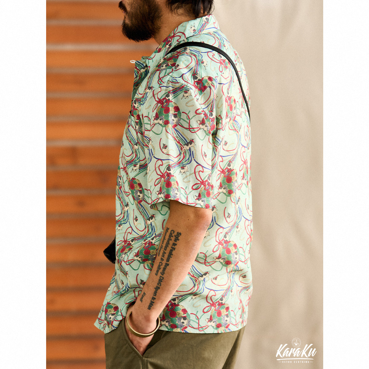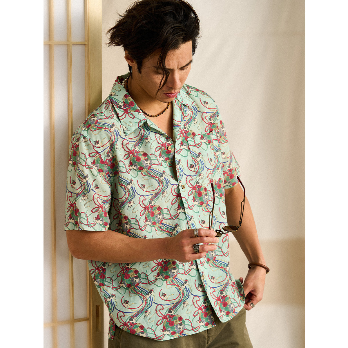 메이지 시대의 그림을 모티브로 하여, 우키요에 특유의 감성을 담아낸 아로하 셔츠입니다. 전통적인 일본의 아름다움을 현대적인 스타일로 재해석했습니다.
