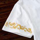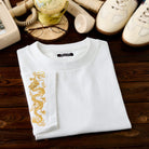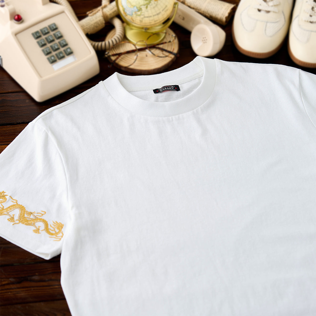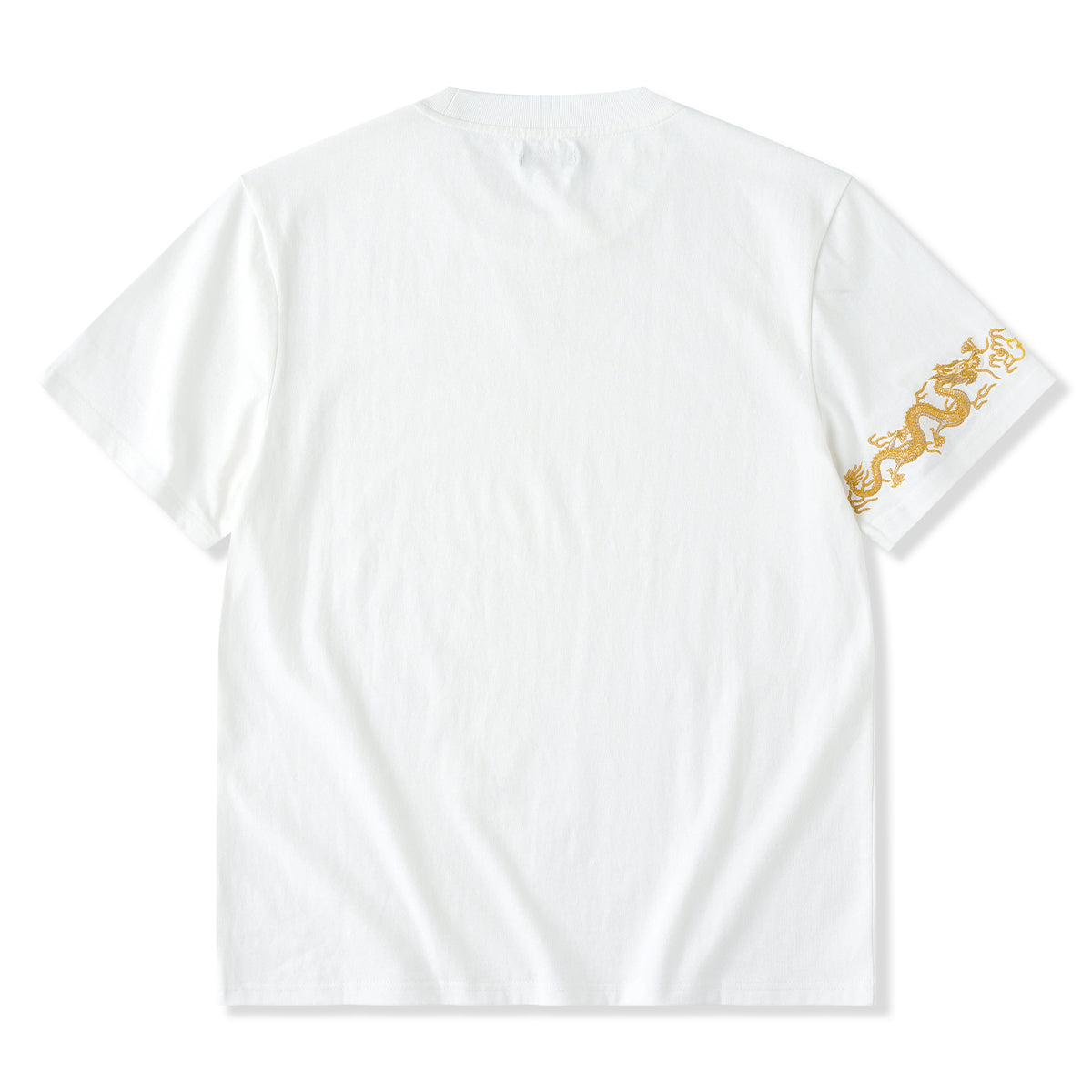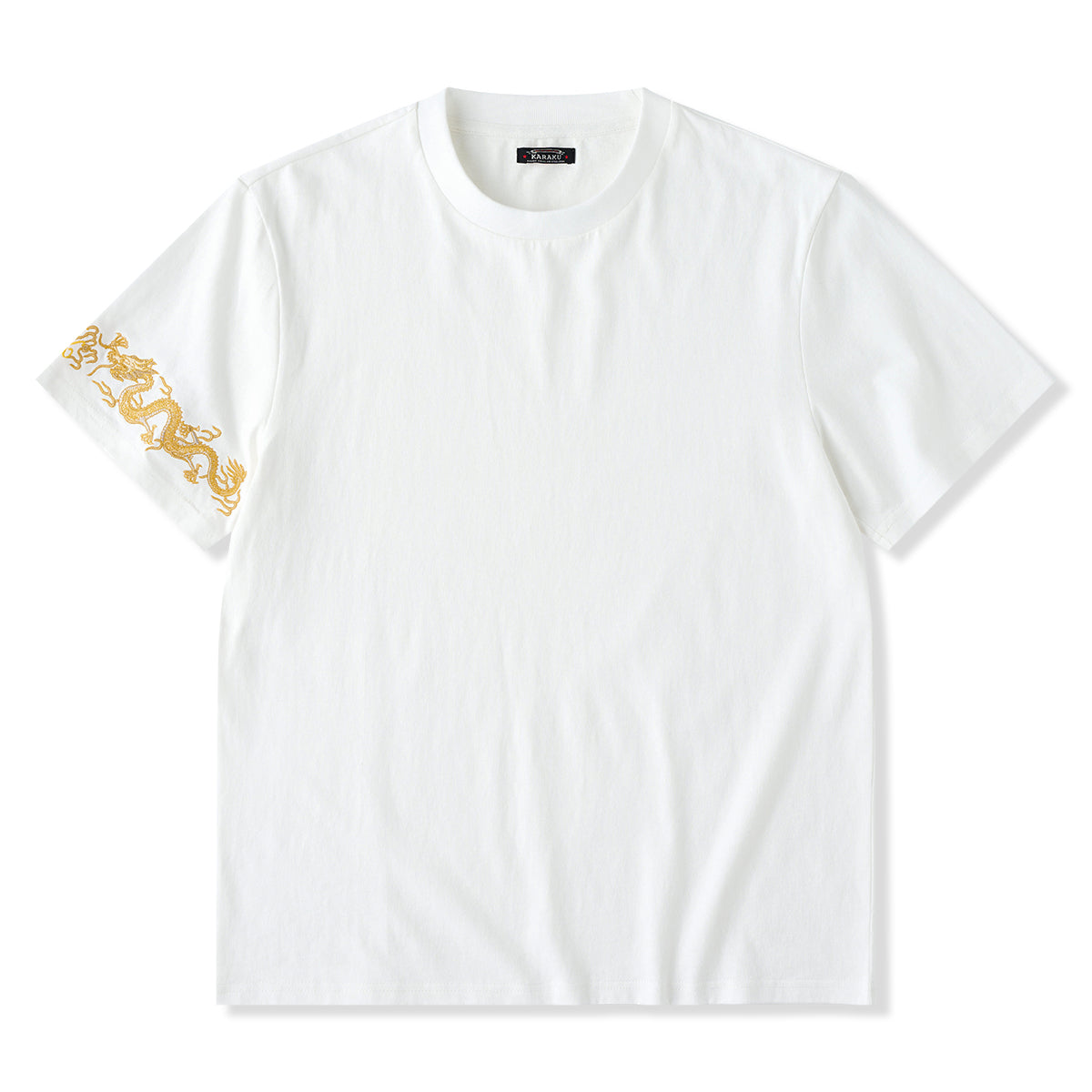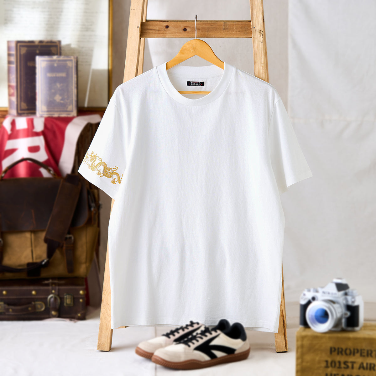 소매・쌍룡 자수 미니멀리즘 코튼 티셔츠