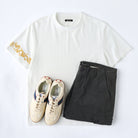 소매를 감싼 쌍룡 자수가 돋보이는 미니멀 레귤러 핏 티셔츠로, 동적 모티프와 정적 디자인의 균형이 조화를 이루며 남녀 모두 세련되게 착용할 수 있습니다.