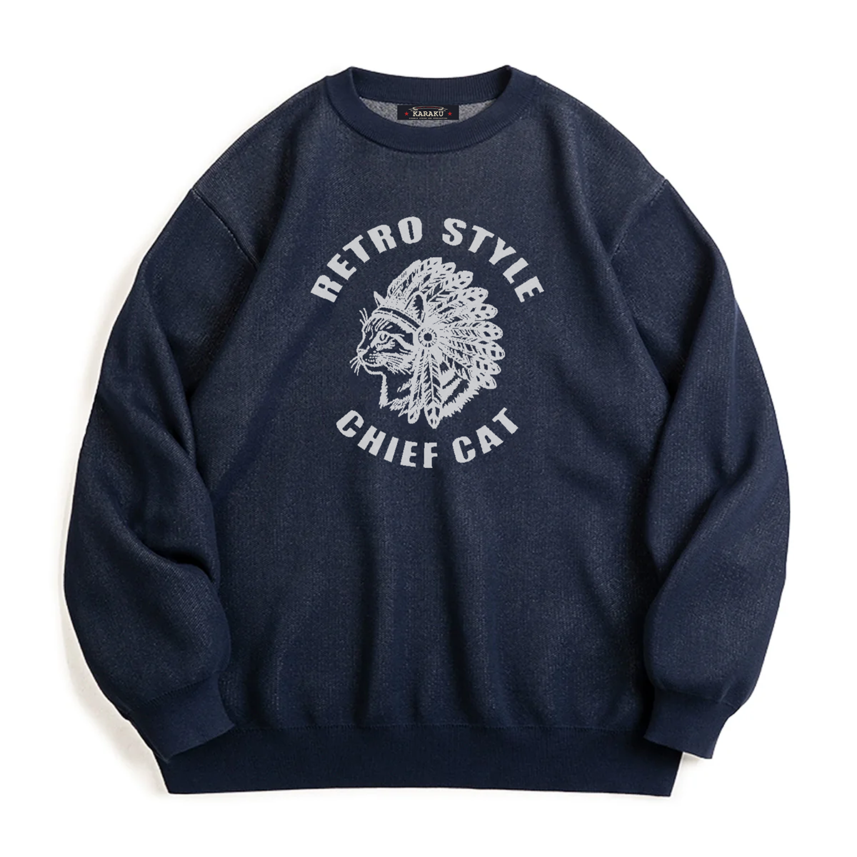 【사전예약】인디언 스타일「고양이 추장」자카드 짜임 니트 풀오버