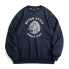 앞면에는 고양이 그래픽과 인디언 추장을 연상시키는 깃털 장식을 더해 전통적인 요소를 친근하게 표현했으며, ‘RETRO STYLE’과 ‘CHIEF CAT’ 문구를 곡선으로 배치해 균형감과 빈티지 무드를 담은 트렌디한 디자인입니다.