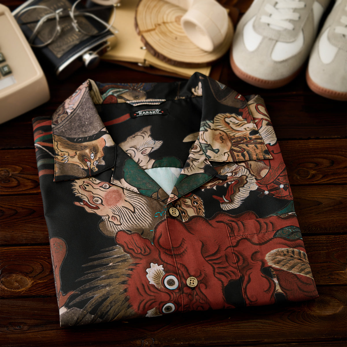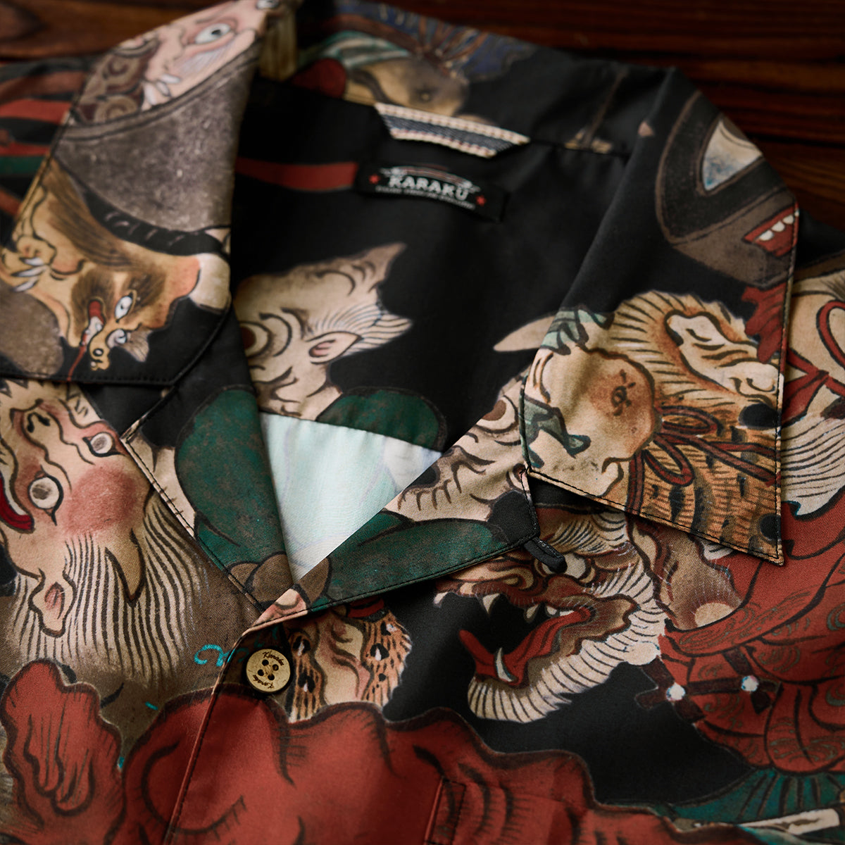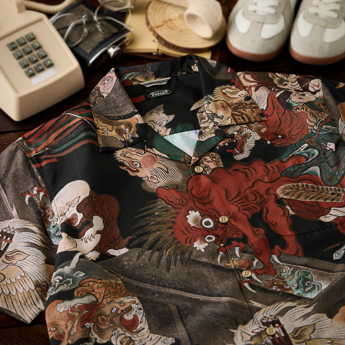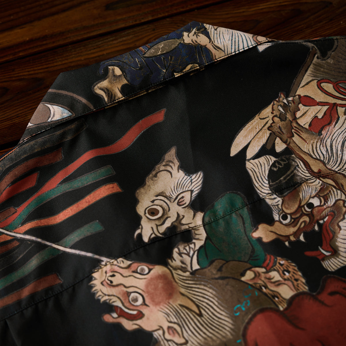 室町(무로마치)시대「요괴에마키」우키요에 무늬 오픈칼라 셔츠