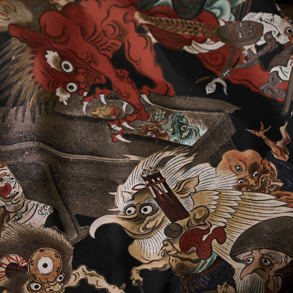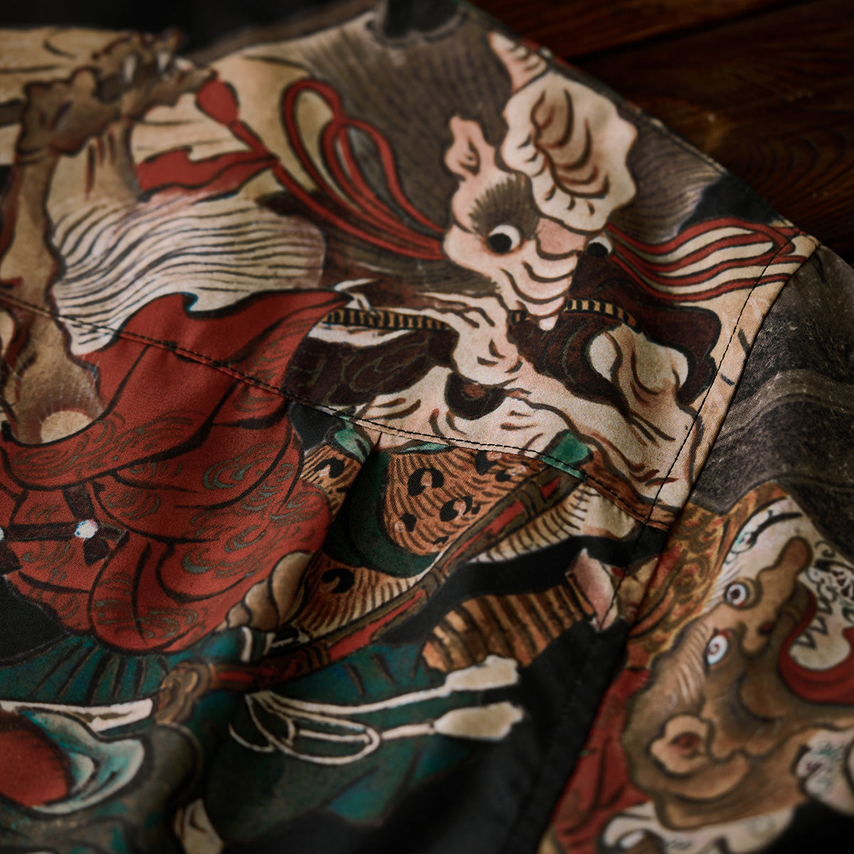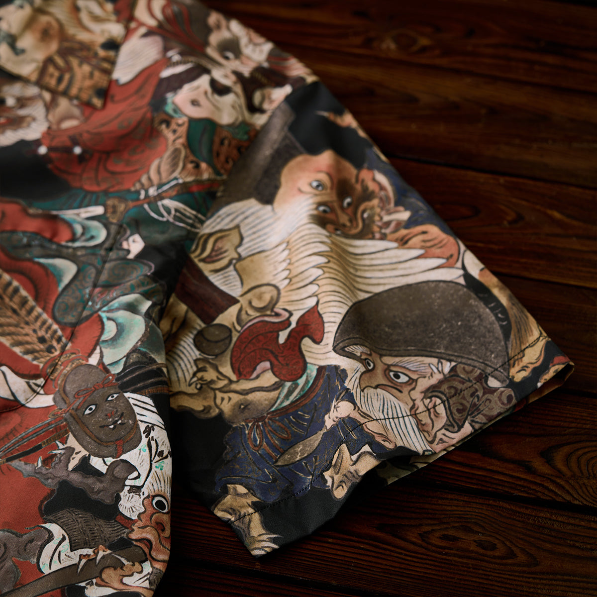 室町(무로마치)시대「요괴에마키」우키요에 무늬 오픈칼라 셔츠
