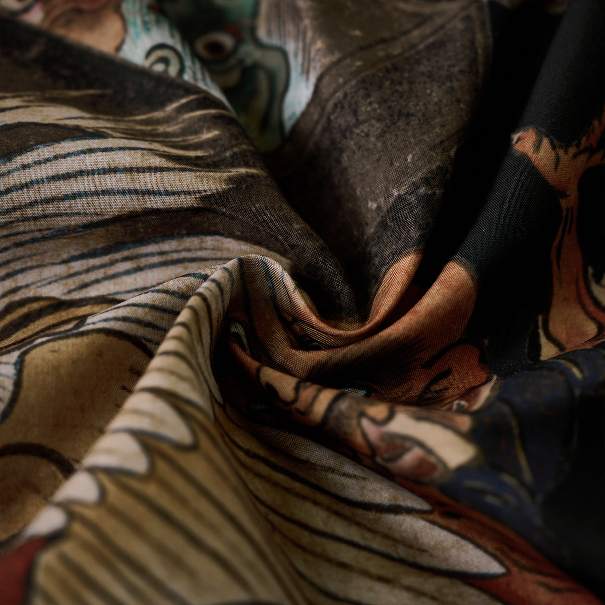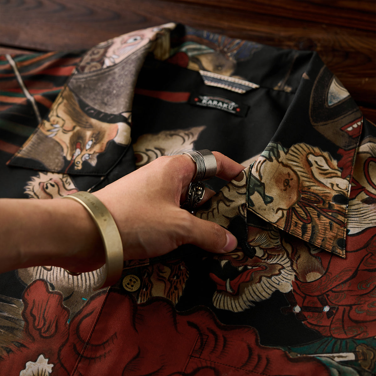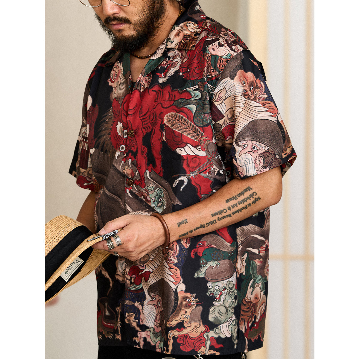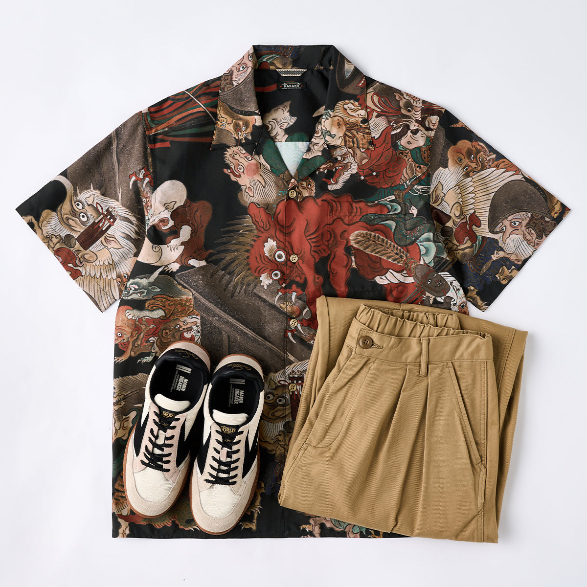 室町(무로마치)시대「요괴에마키」우키요에 무늬 오픈칼라 셔츠