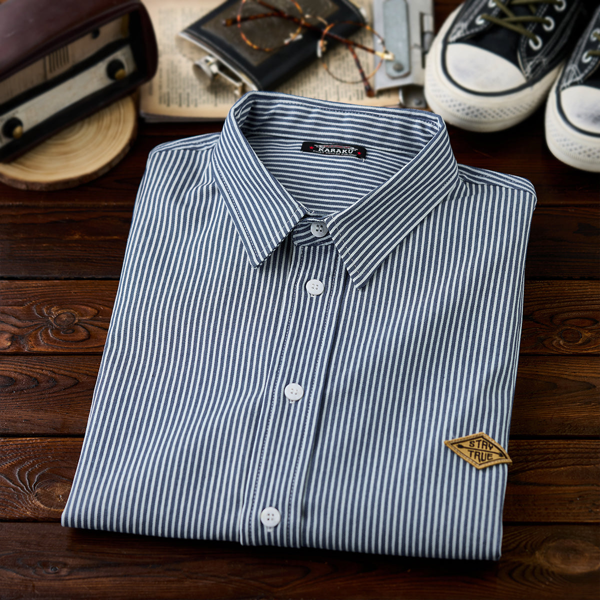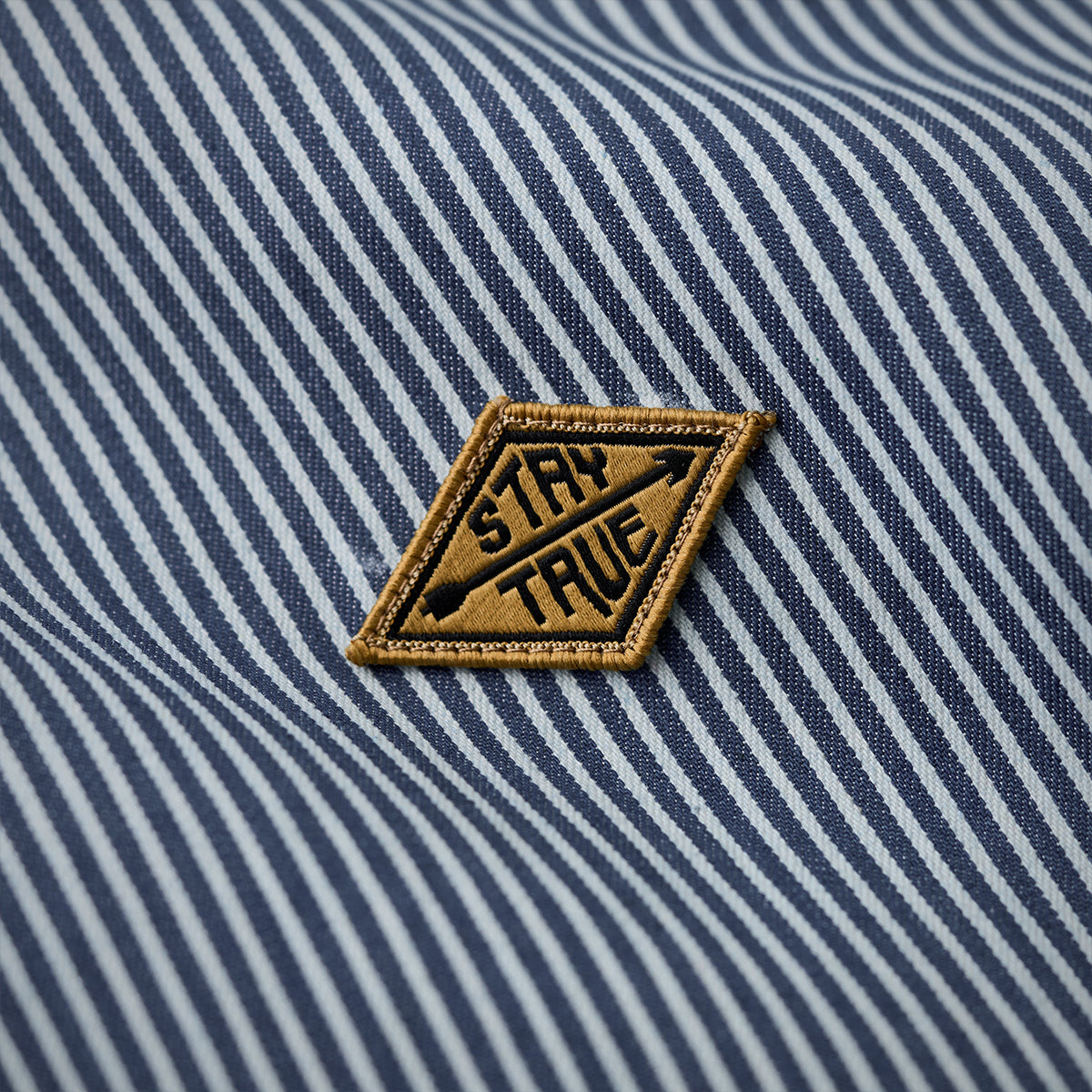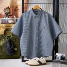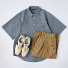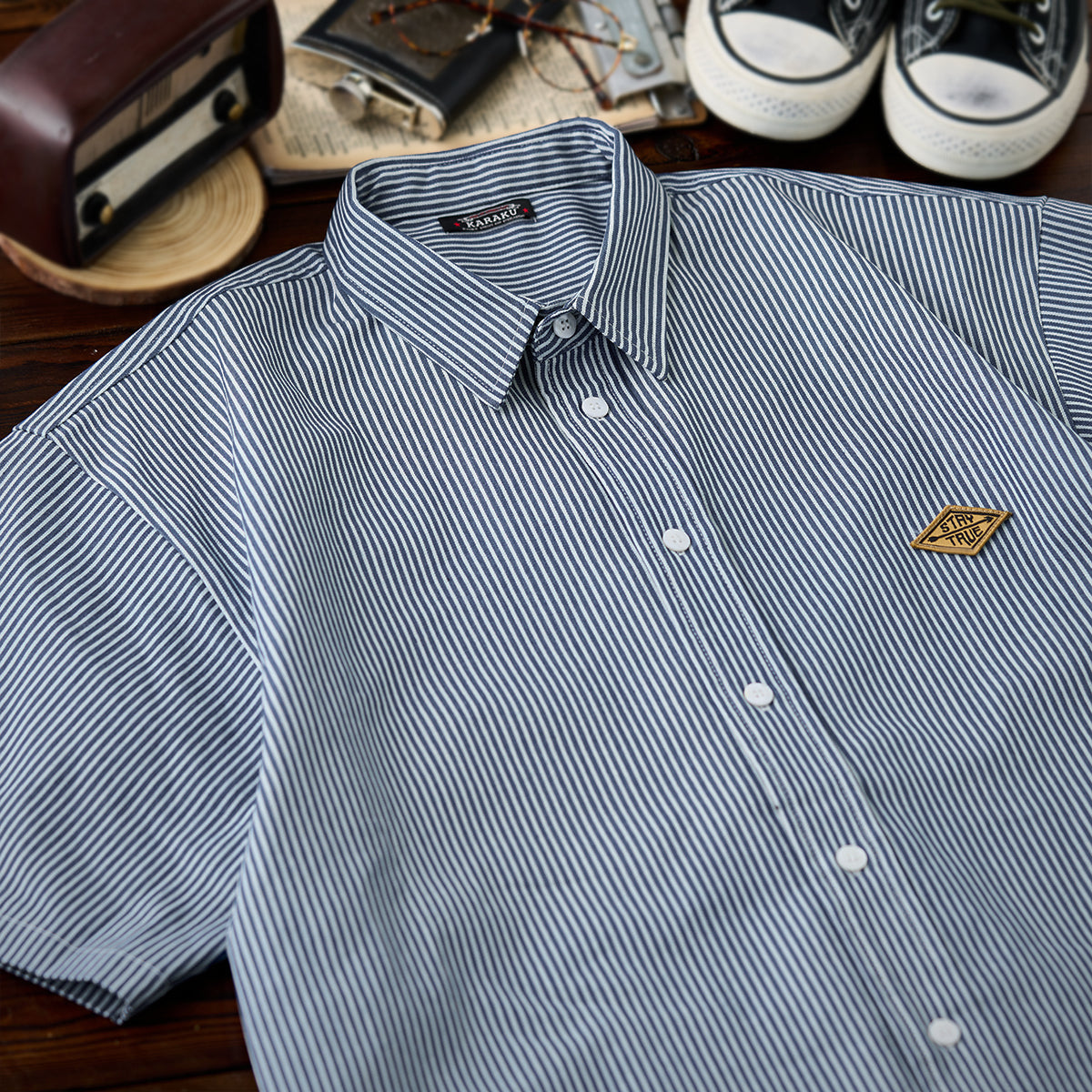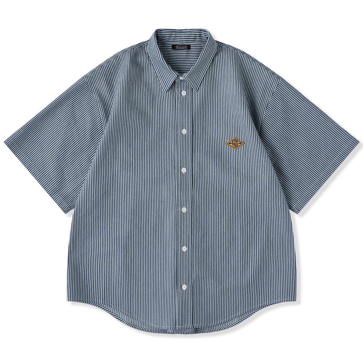 「stay true」자수 선염 스트라이프 반소매 셔츠