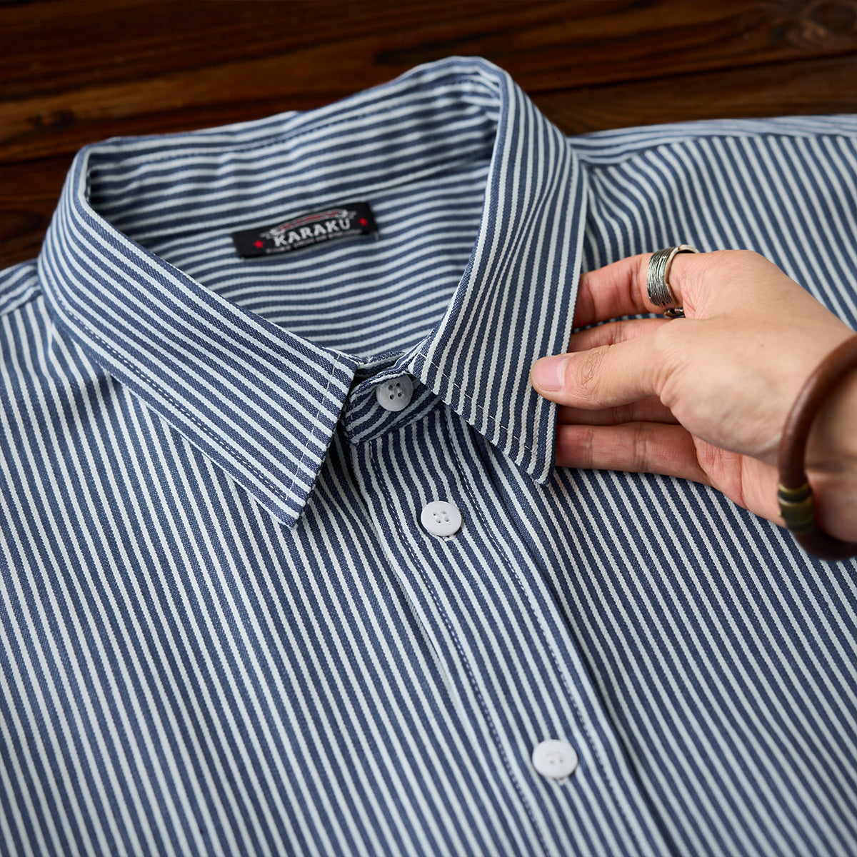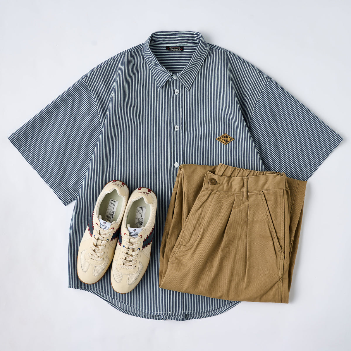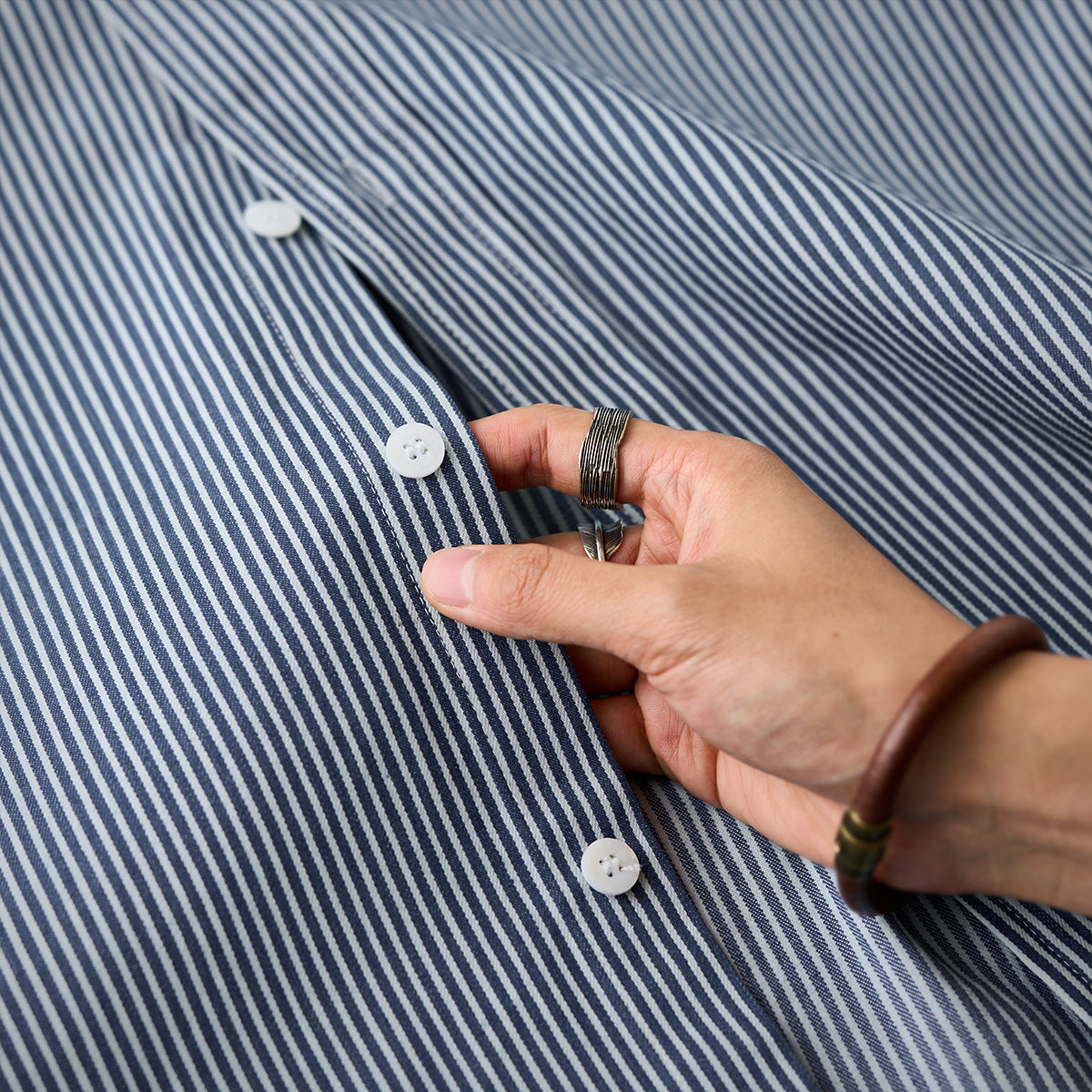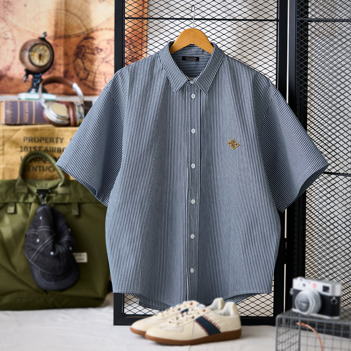 산뜻한 스트라이프와 넉넉한 핏으로, 캐주얼하면서도 세련된 분위기를 완성하는 여름 셔츠입니다.