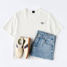 로고 프린트가 돋보이는 순면 티셔츠로, 가볍고 통기성이 좋아 쾌적하며, 데님 팬츠나 스니커즈와 잘 어울립니다.