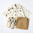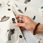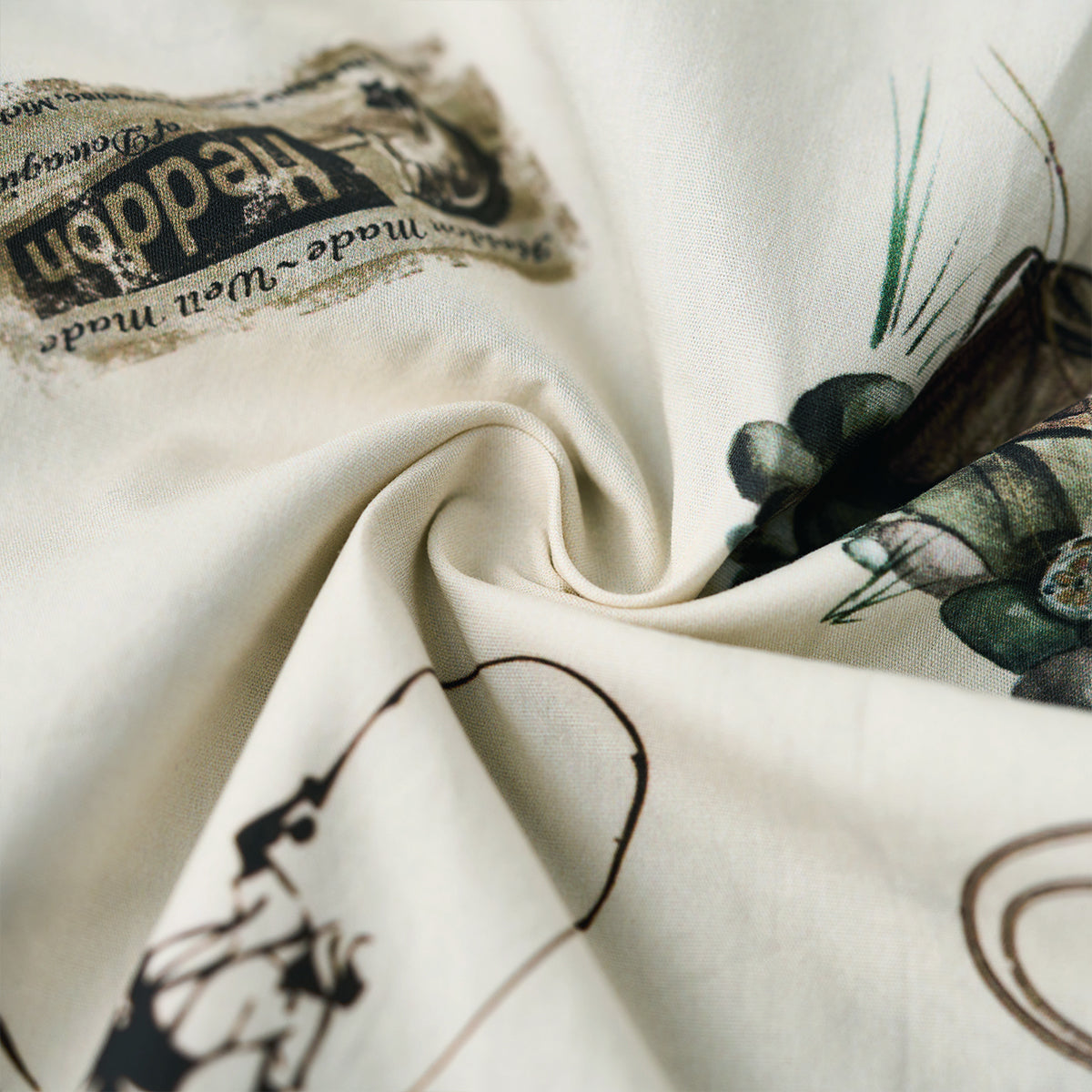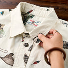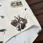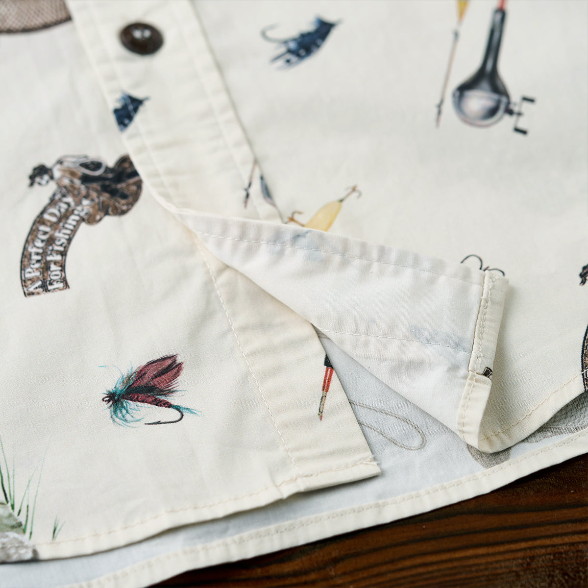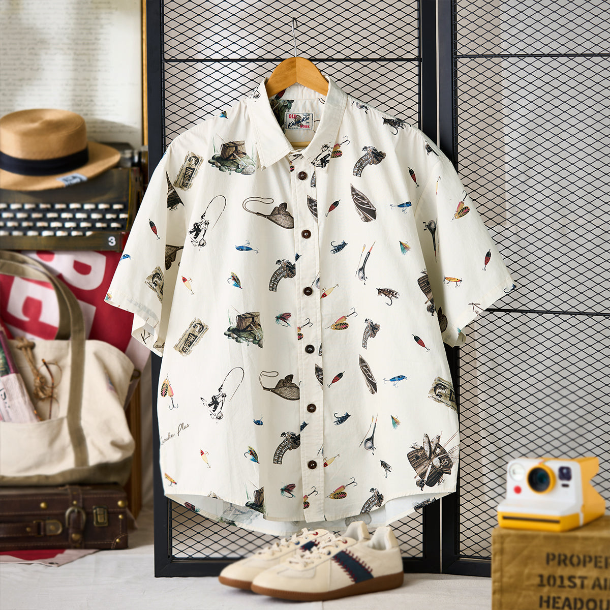 핸드드로잉 낚시도구 프린트 코튼 반팔 셔츠