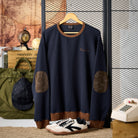 팔꿈치 스웨이드 패치 'KaraKu' 자수 후리스 와플 풀오버 스웨트셔츠