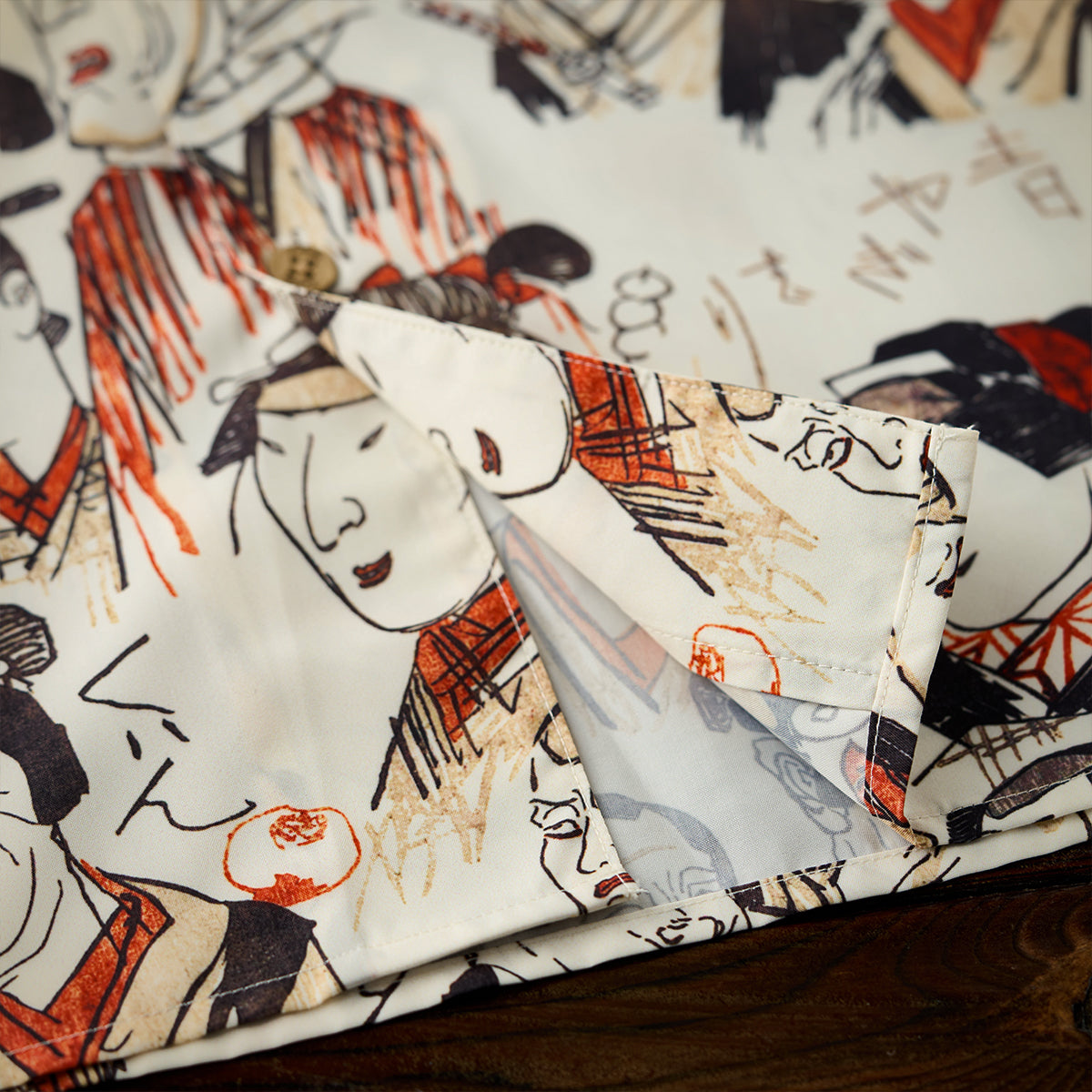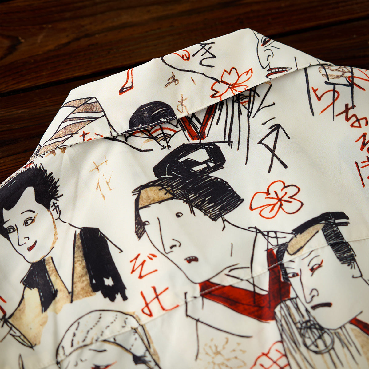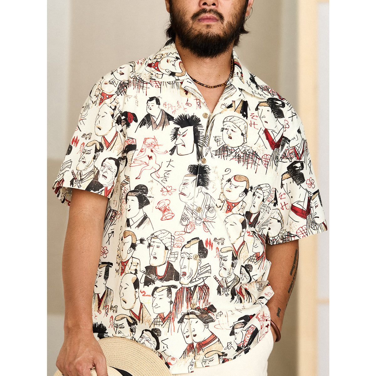 歌川国芳「보물창고 벽에 남긴 낙서」프린트 오픈칼라 셔츠