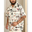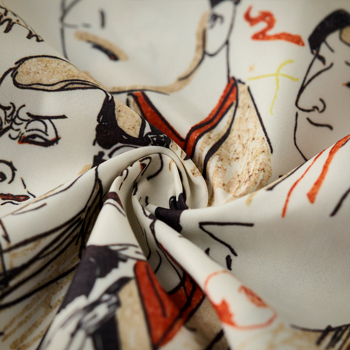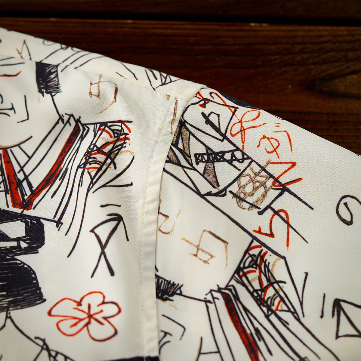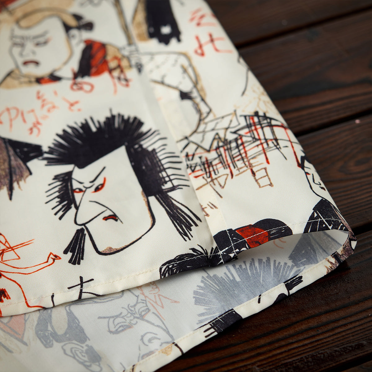 歌川国芳「보물창고 벽에 남긴 낙서」프린트 오픈칼라 셔츠