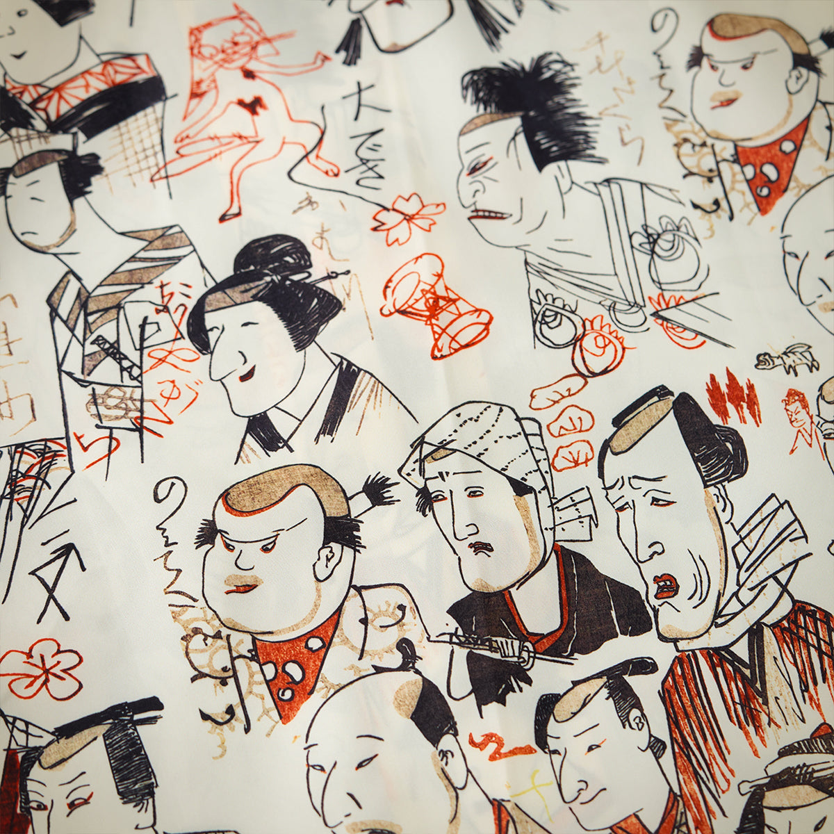 에도 시대의 예술가 歌川国芳(우타가와 쿠니요시)의 그림 「荷宝蔵壁のむだ書(보물창고 벽에 남긴 낙서)」에서 영감을 받아, 인물과 문자를 낙서처럼 현대적으로 재해석했습니다. 느슨하고 초현실적인 표정들이 유머를 자아내며, 볼 때마다 미소 짓게 만드는 위트 있는 디자인입니다.