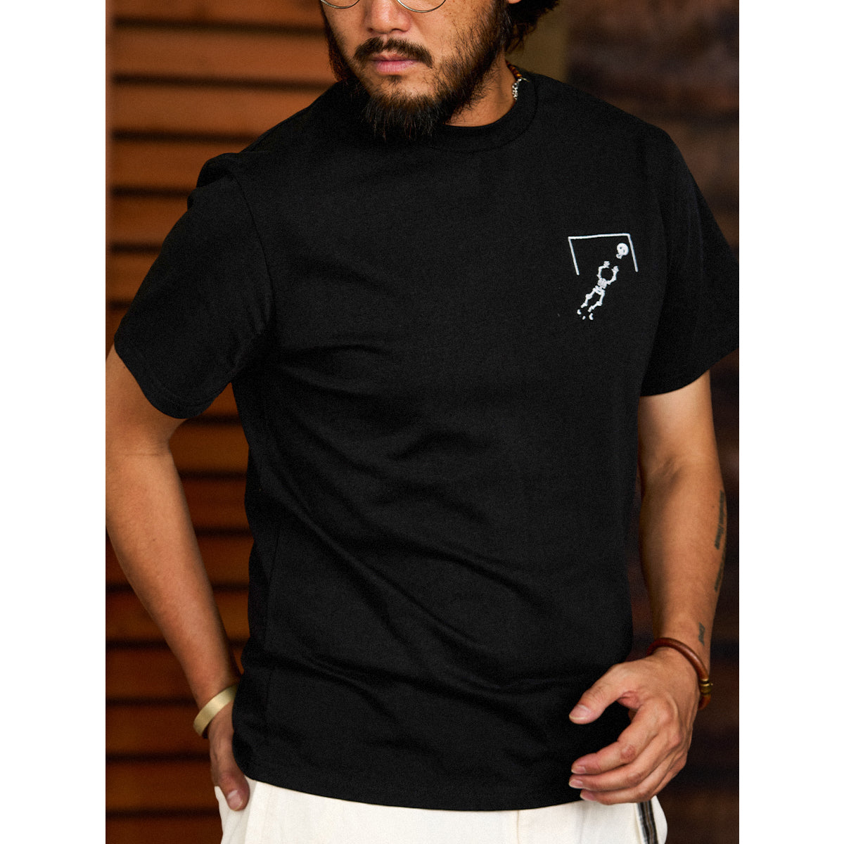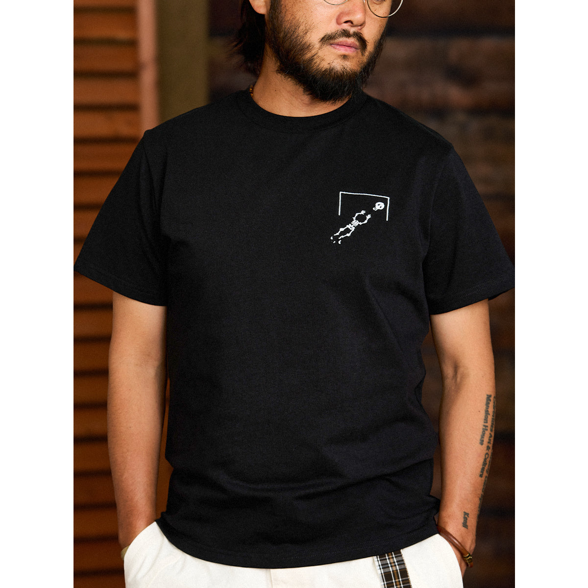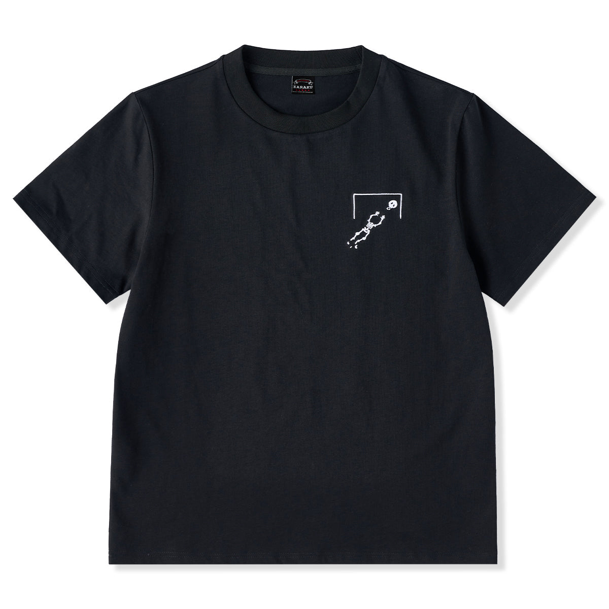 '죽음과의 대결'을 상징하는 골키퍼와 다크서클 축구공을 통해 인생의 투쟁을 표현하며, 코튼 소재로 편안하면서도 스타일리시한 코디를 완성하는 아이템입니다.
