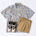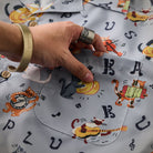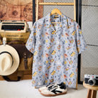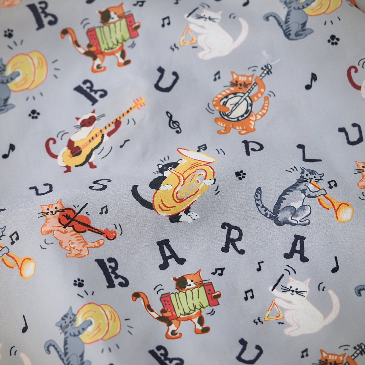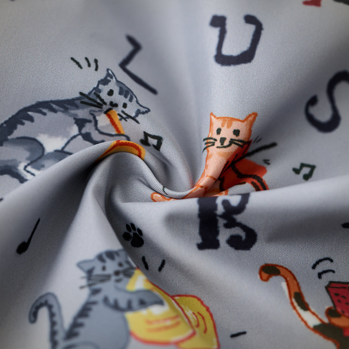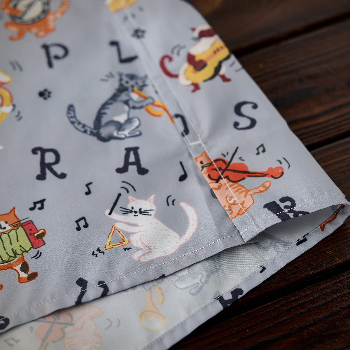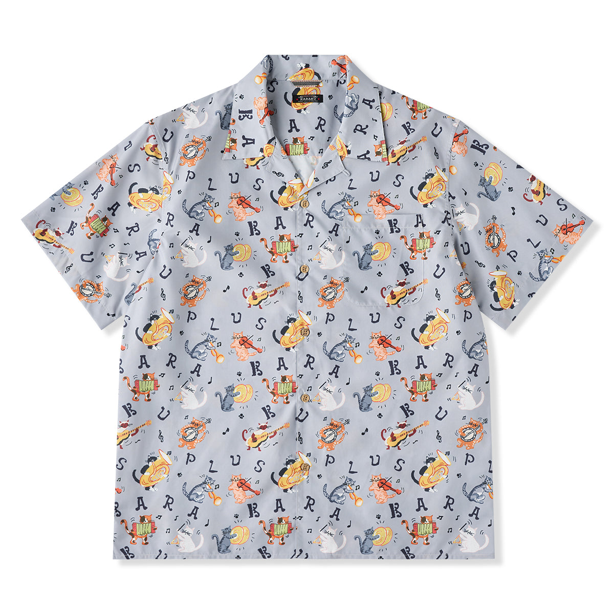 「고양이 음악가의 연주회」패턴 오픈칼라 셔츠